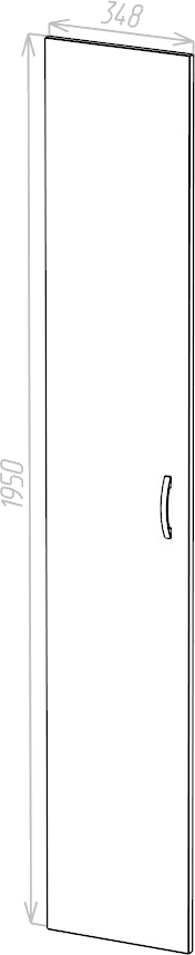 Дверь изготовлена из ЛДСП толщиной 16 мм. Кромка ПВХ толщиной 2 мм. Ручка "бабочка" хромированная, межосевое расстояние 96 мм. Направление открывания: левое. Габариты изделия (длина, ширина, высота): 348*16*1950 Цвет изделия: вишня оксфорд