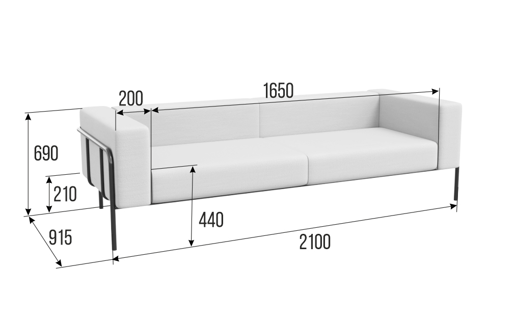 Флекс Диван трехместный FLX-3 Santorini 0401/Металл Черный 2100*915*690