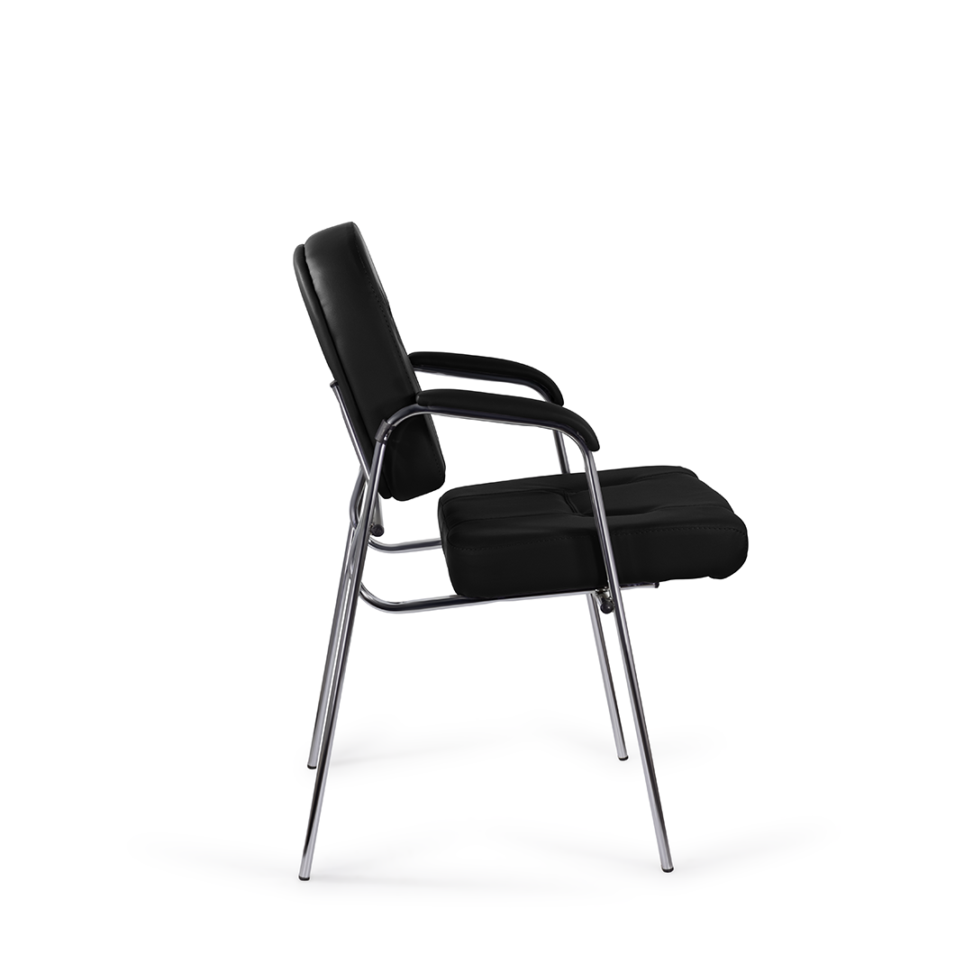 Дизайн стула выполнен в строгом стиле, с удобными подлокотниками, оснащенными мягкими накладками. Это комфортный и функциональный стул для офиса, который также отлично подойдет для размещения гостей в приемной или холле.