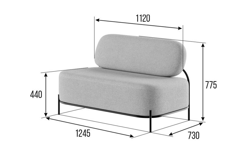 Джайв Диван двухместный JVE-2 Velvet lux 58/Velvet lux 100/Металл Черный 1250*720*770