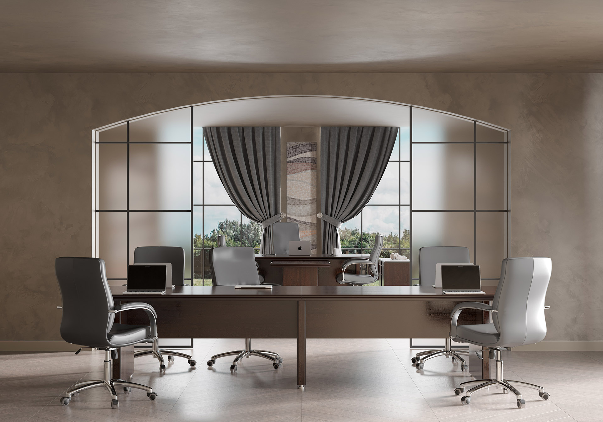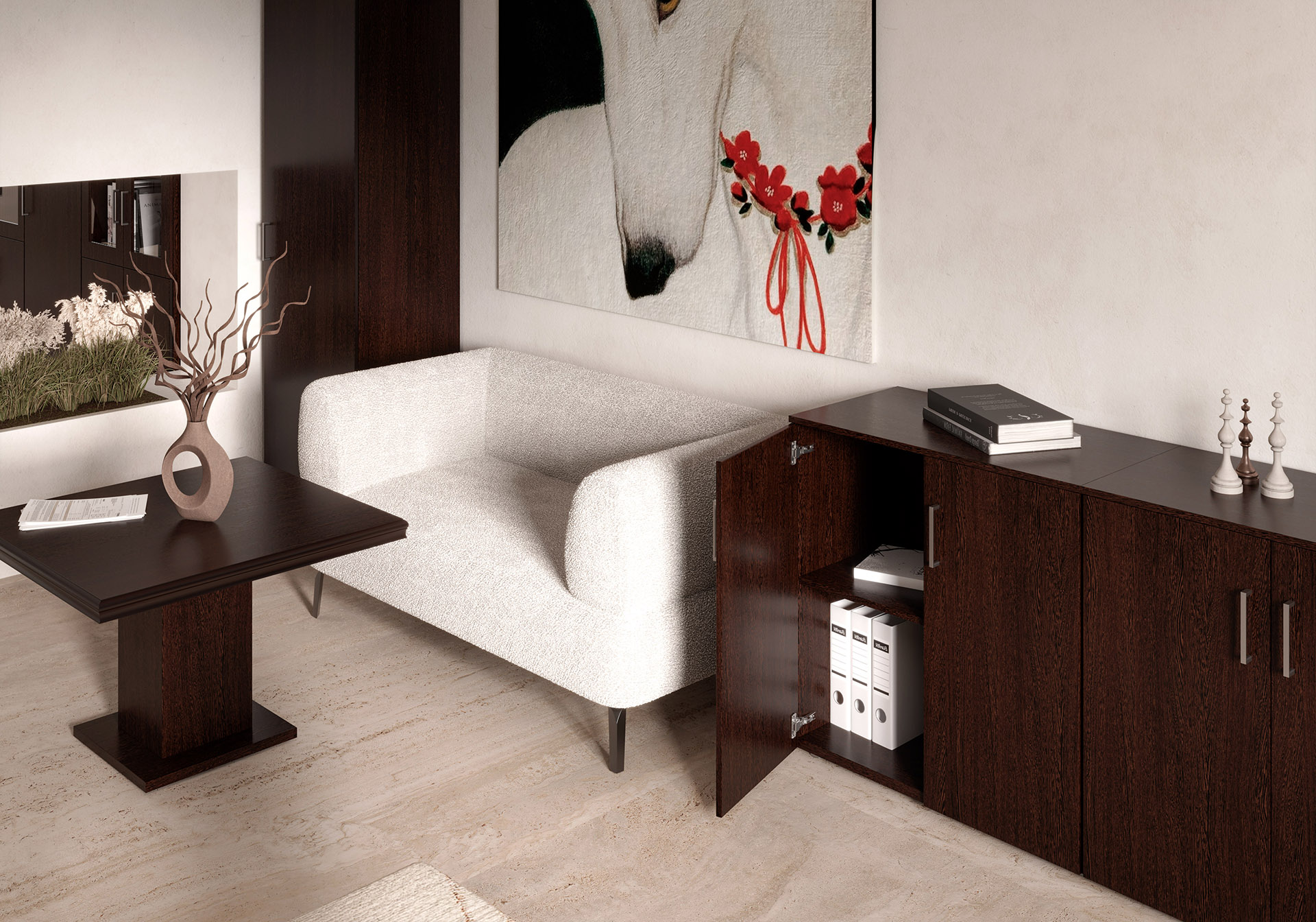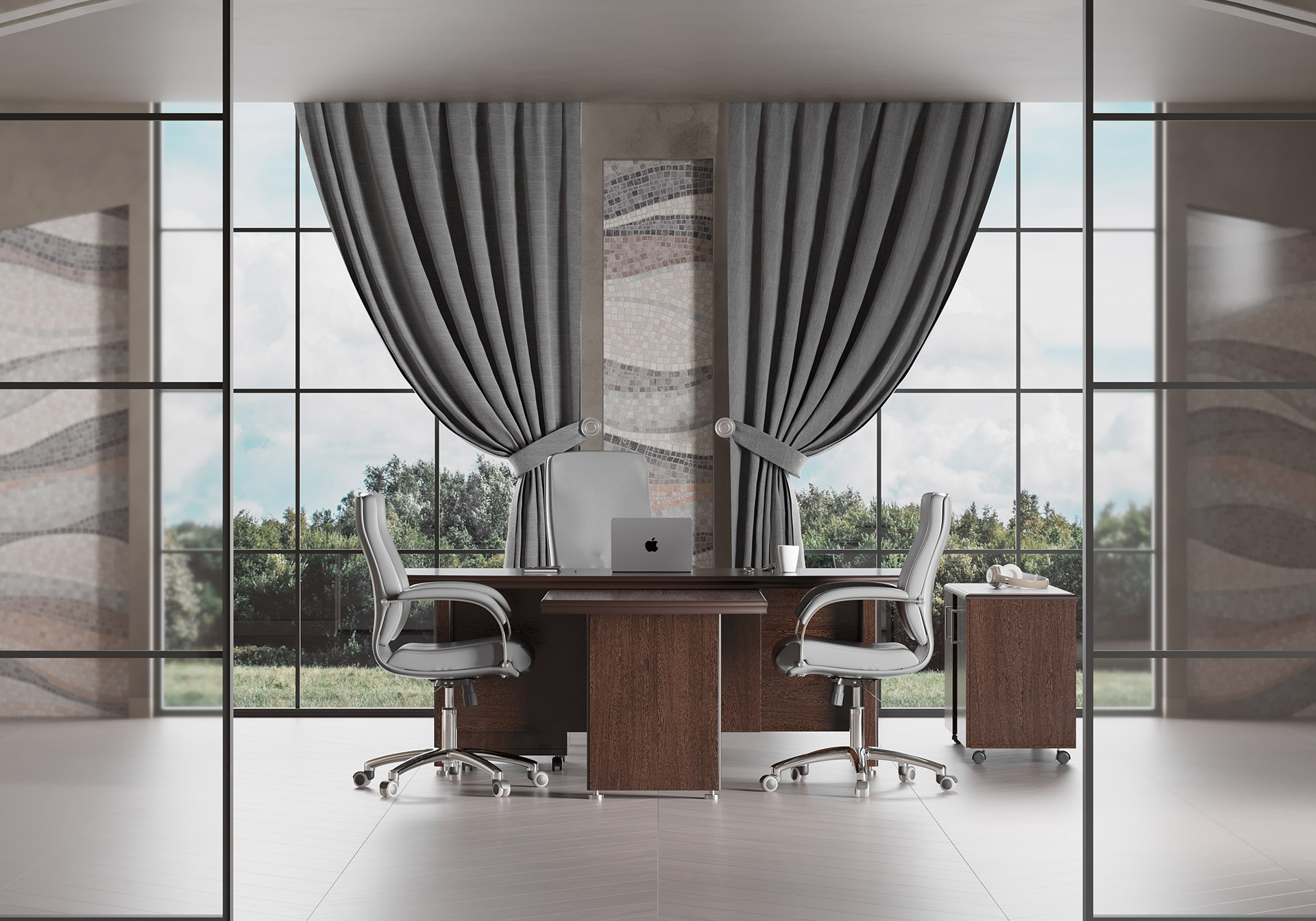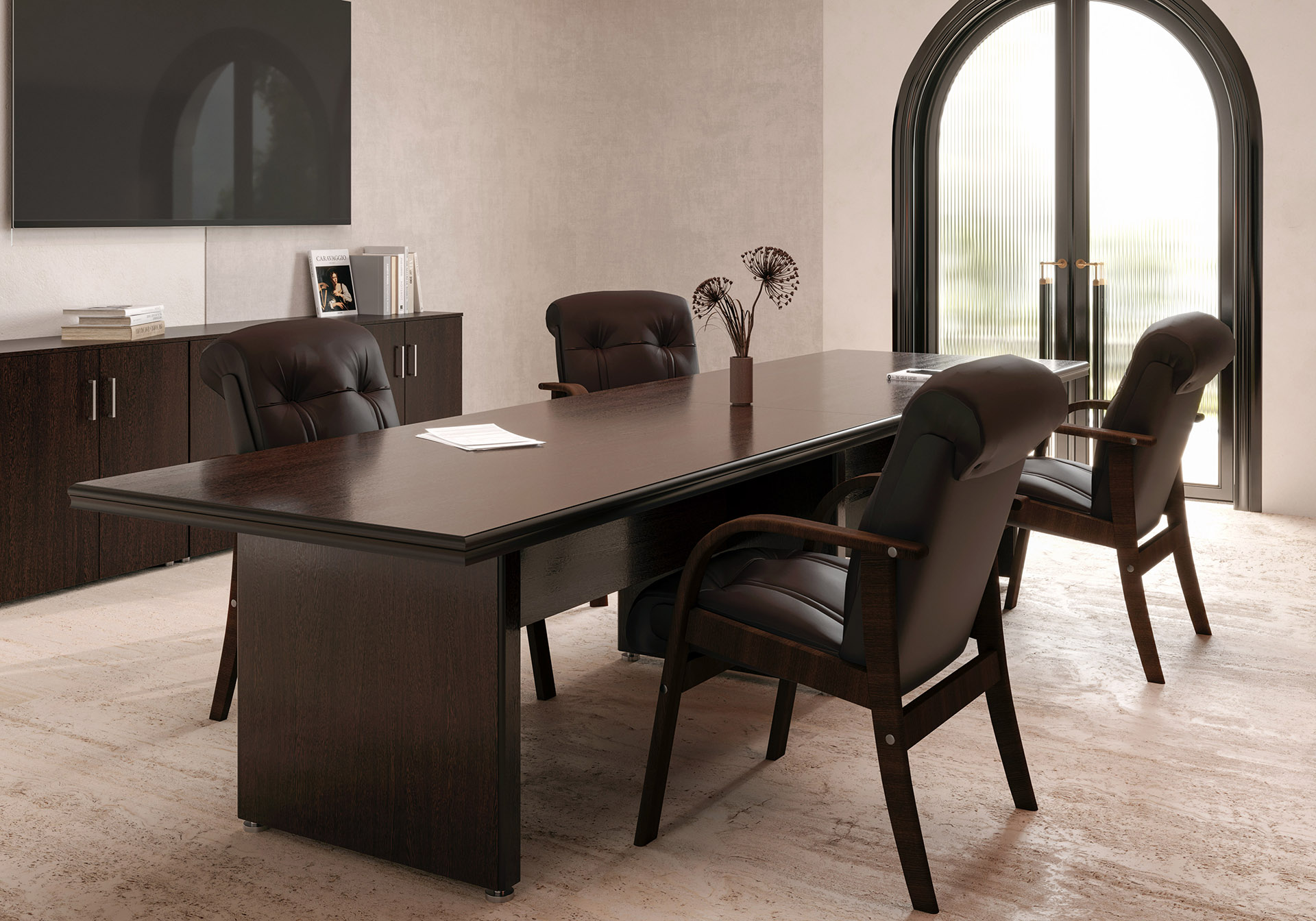 Особенности: прозрачное стекло в раме МДФ, регулируемые опоры, петли с доводчиками — делают использование максимально удобным. Идеальный выбор для тех, кто стремится создать престижное и уютное рабочее пространство.