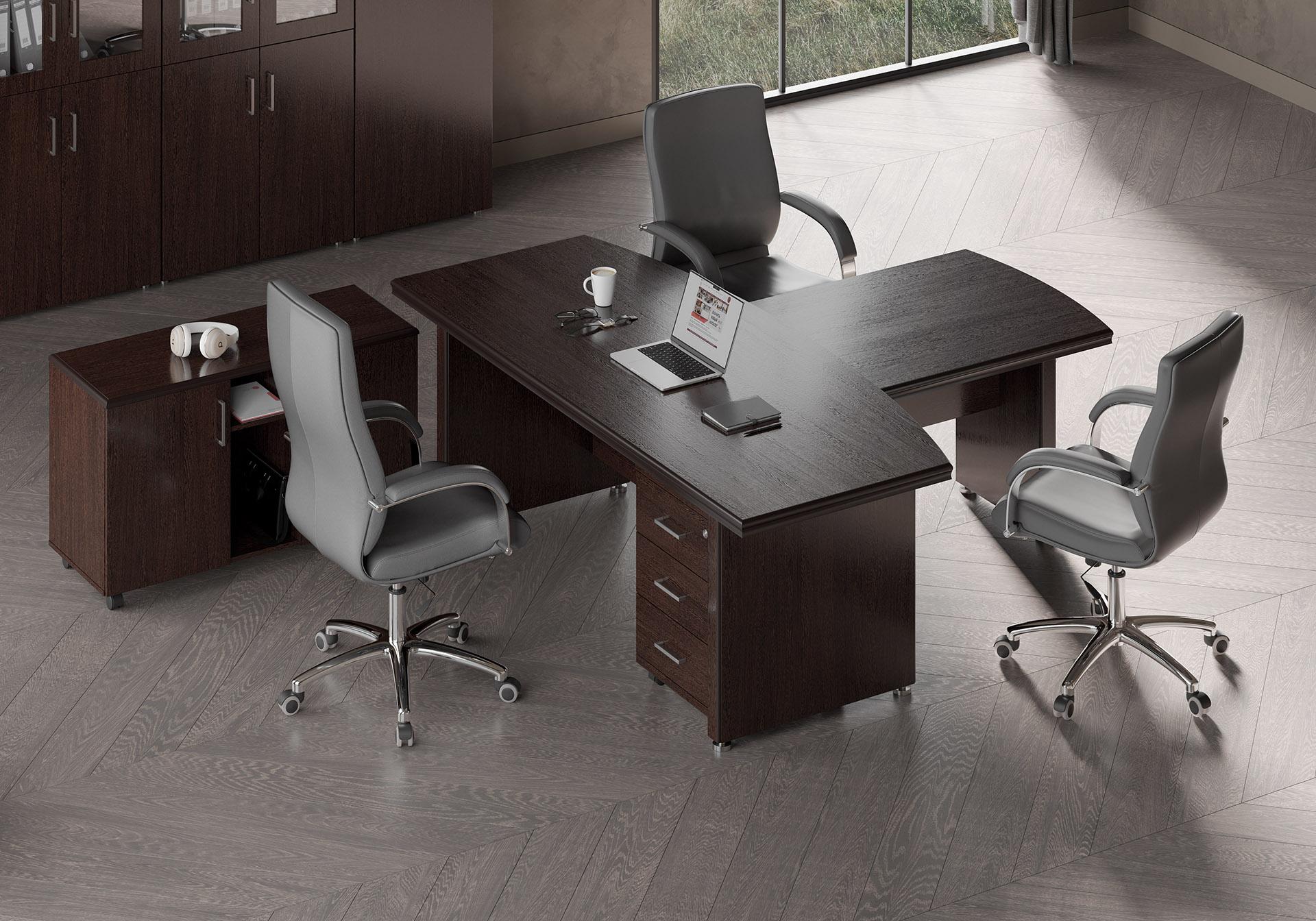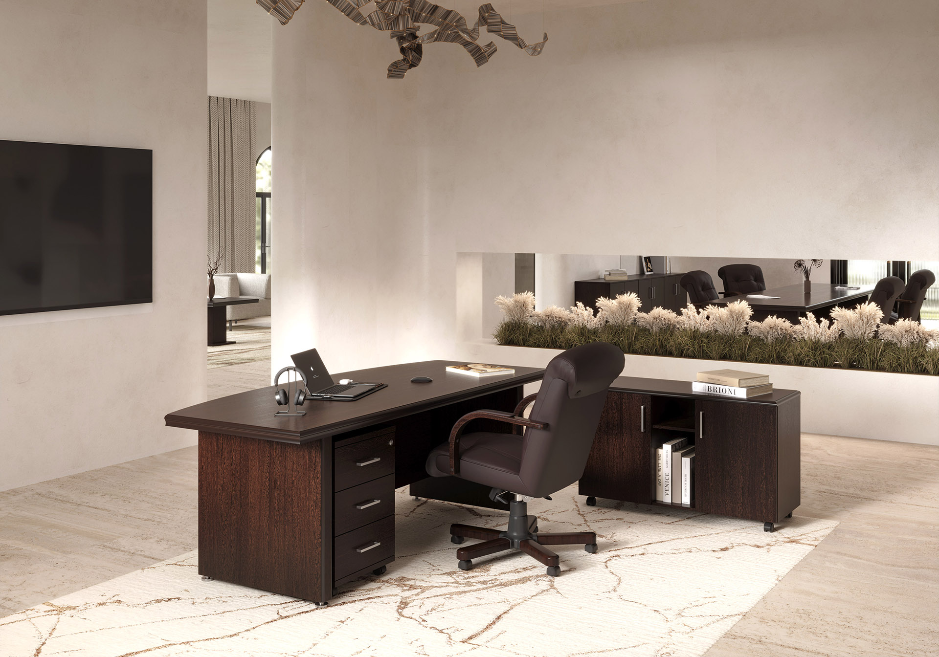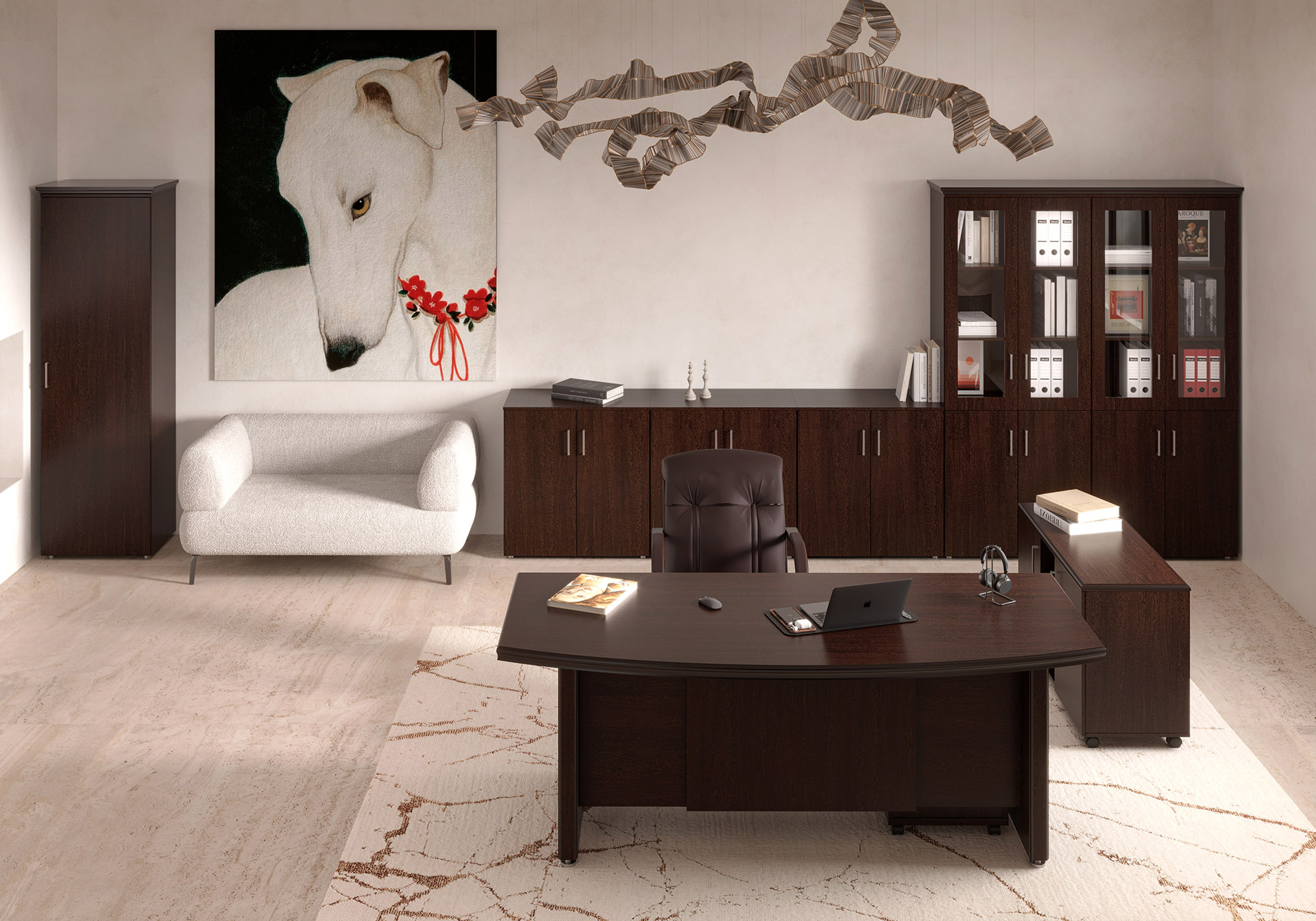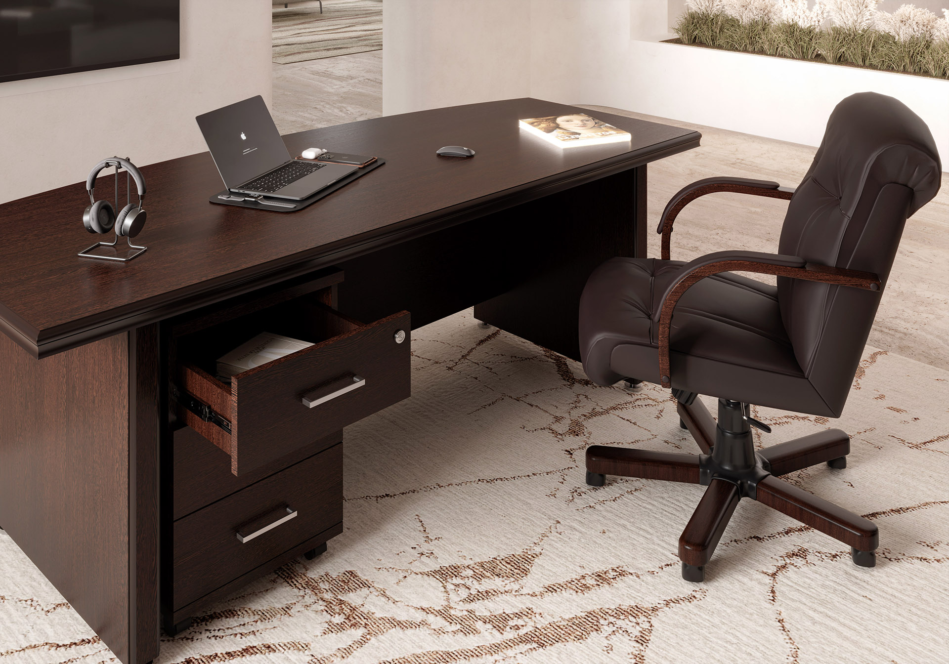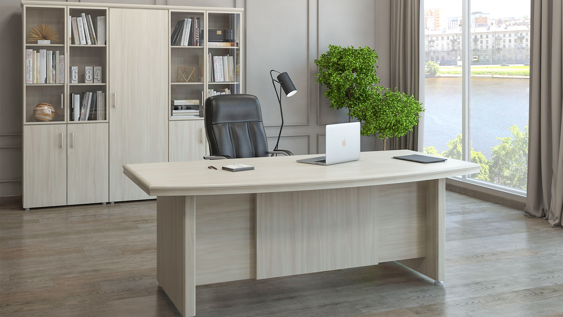 Кабинет Бостон / Boston — это истинное воплощение классики и элегантности. Он создан для руководителей, ценящих стиль и функциональность. Материалы высокого качества (МДФ и ЛДСП) обеспечивают долговечность, а патина с лаком добавляют интерьеру изысканности.