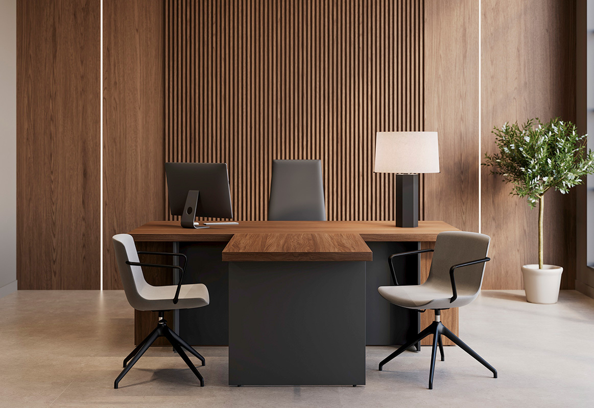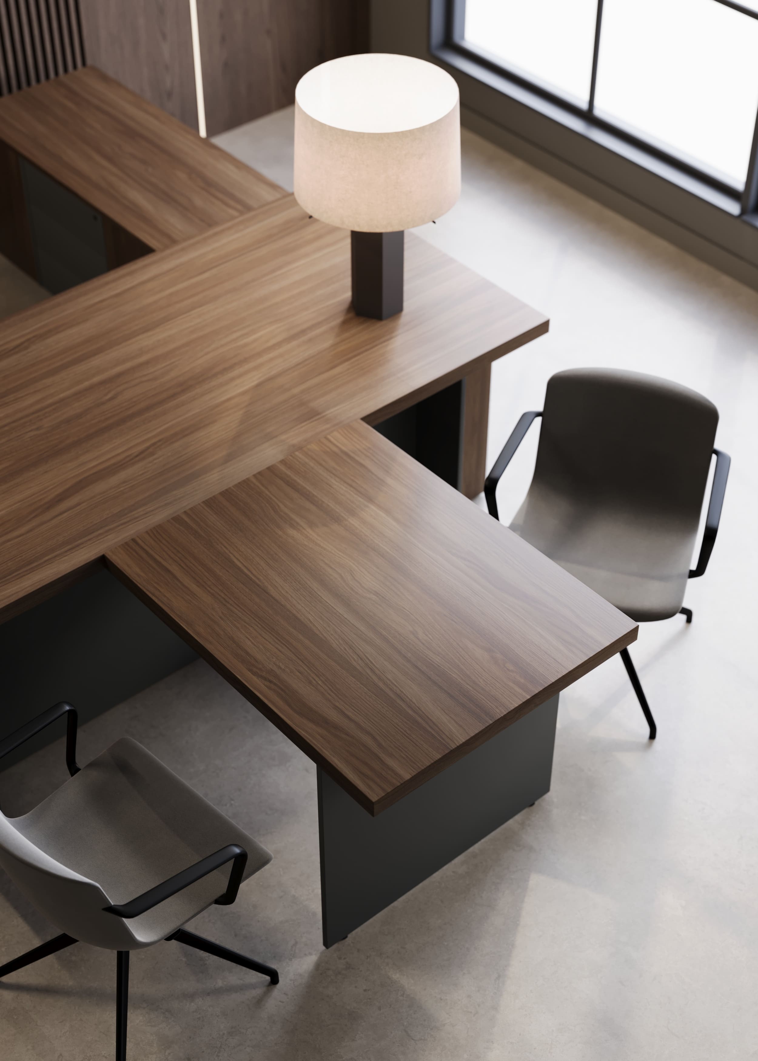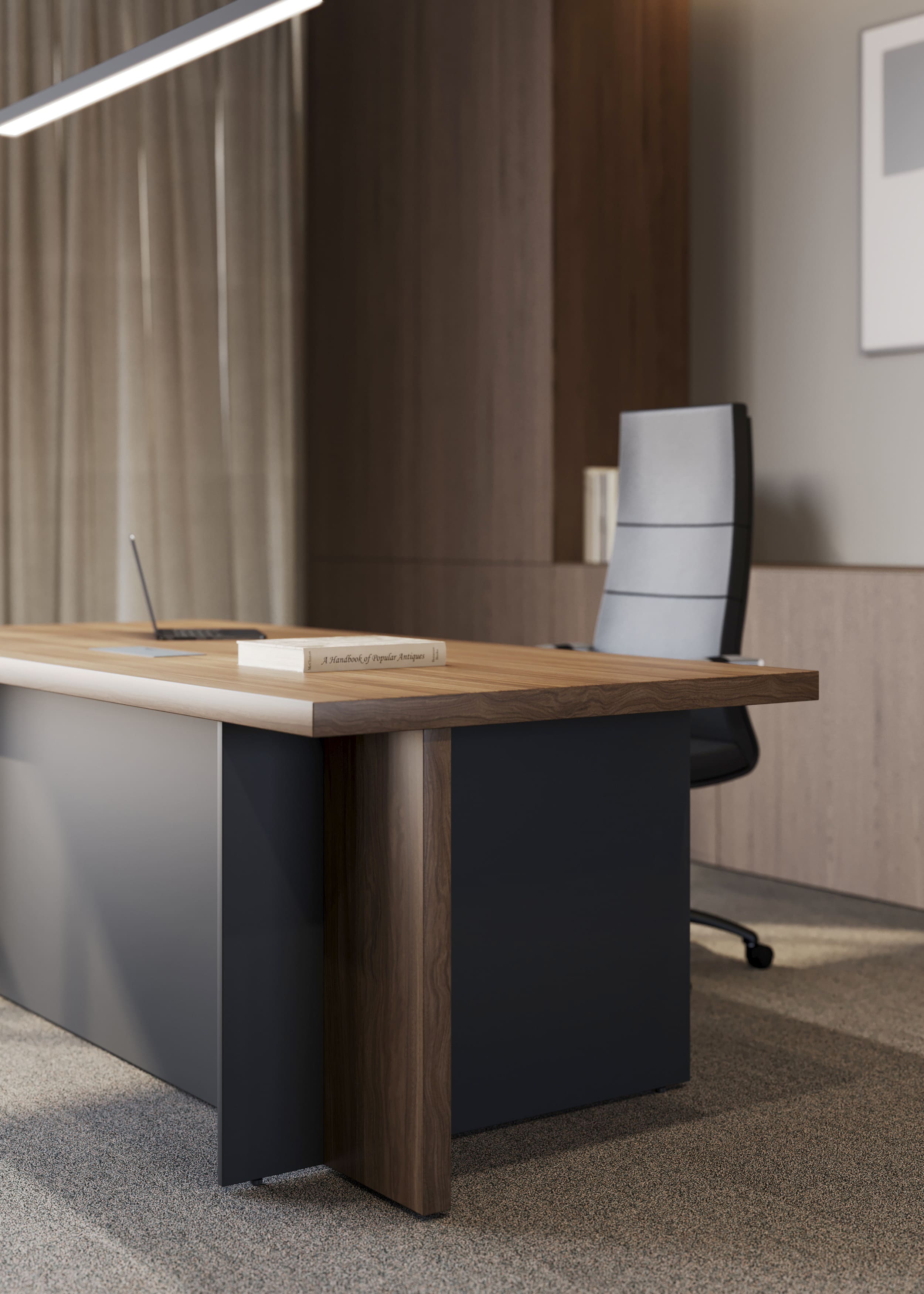 Новое видение классического кабинета руководителя сочетает массивную столешницу и изящные декоративные панели. Благородные цвета и элегантные формы подчеркивают статус, а индивидуальные переговорные и журнальные столы Faber идеально дополняют рабочее пространство.
