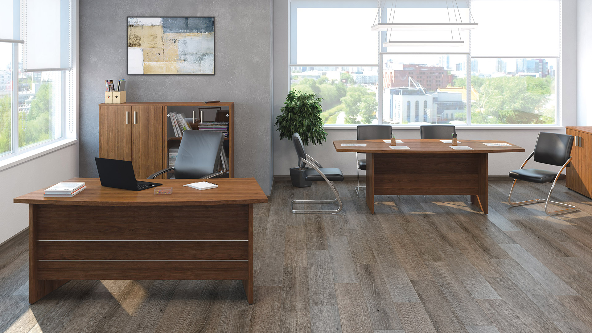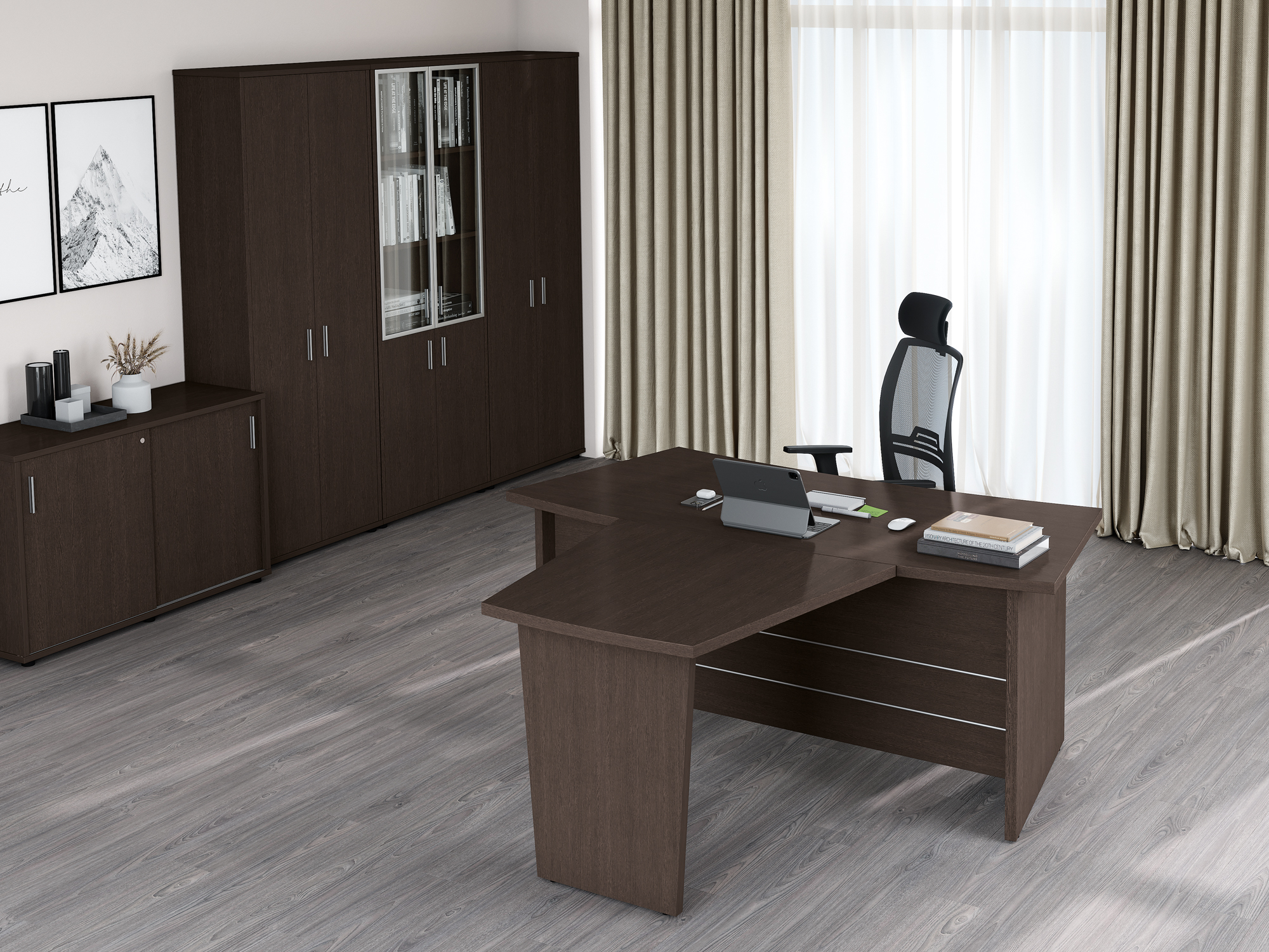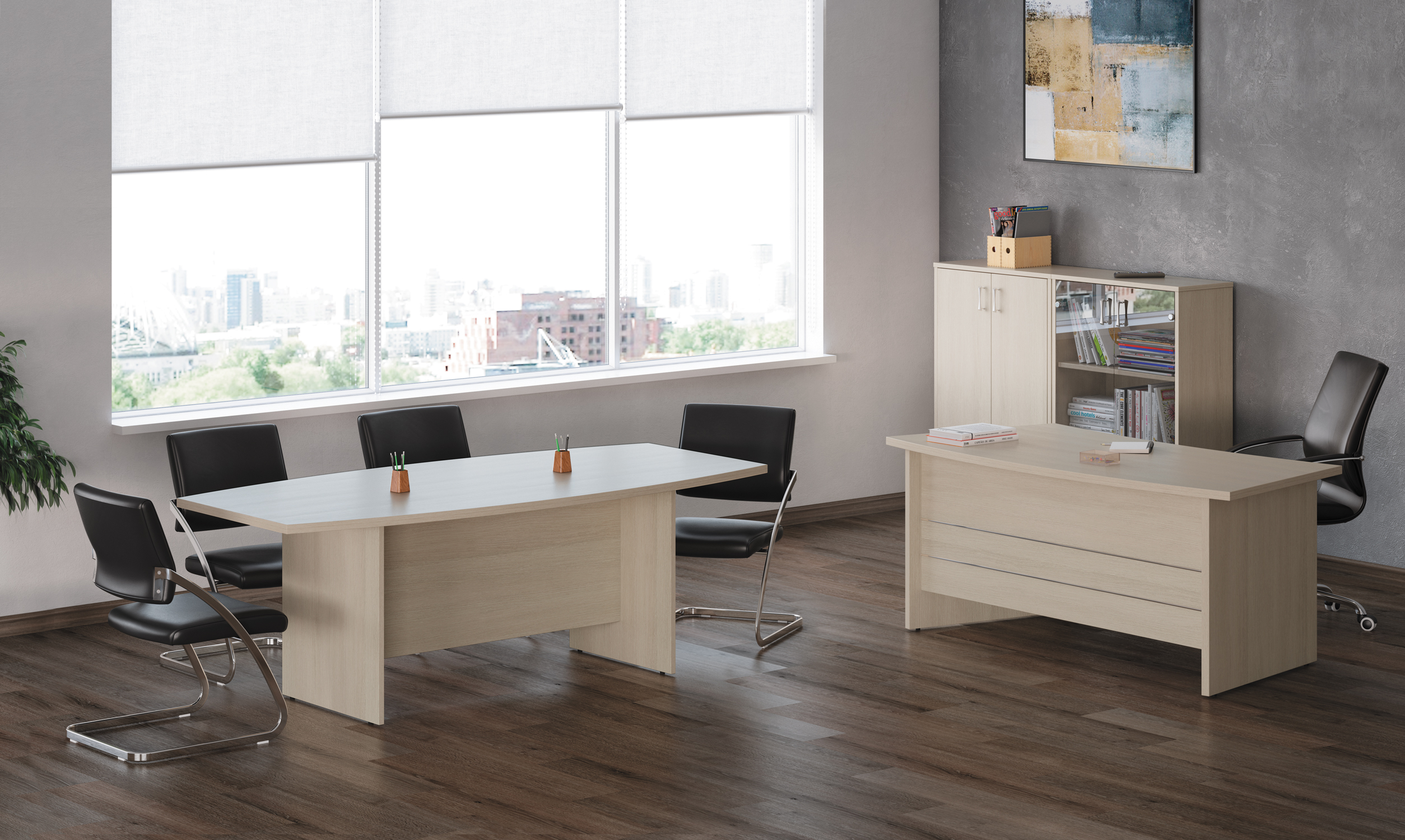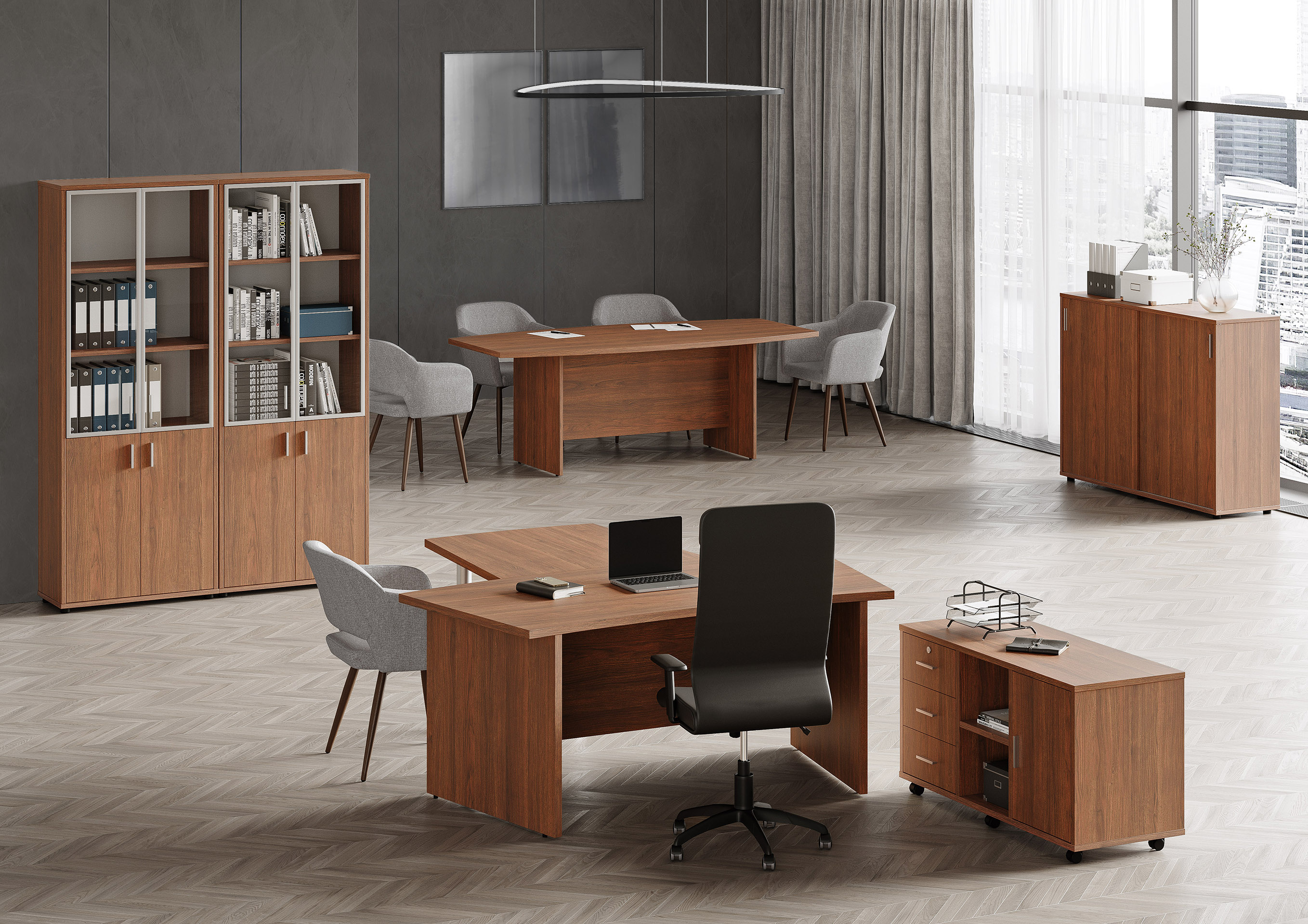 Серия офисной мебели Grand отличается лаконичным дизайном, идеально подходящим для деловых интерьеров. Простые формы и отсутствие лишних деталей делают эту мебель отличным выбором для тех, кто предпочитает минимализм и функциональность. Высокое качество материалов, экономичность и строгий стиль делают Grand Pointex идеальным решением для современных руководителей, желающих создать эффективный и профессиональный рабочий интерьер, не перегружая бюджет компании.