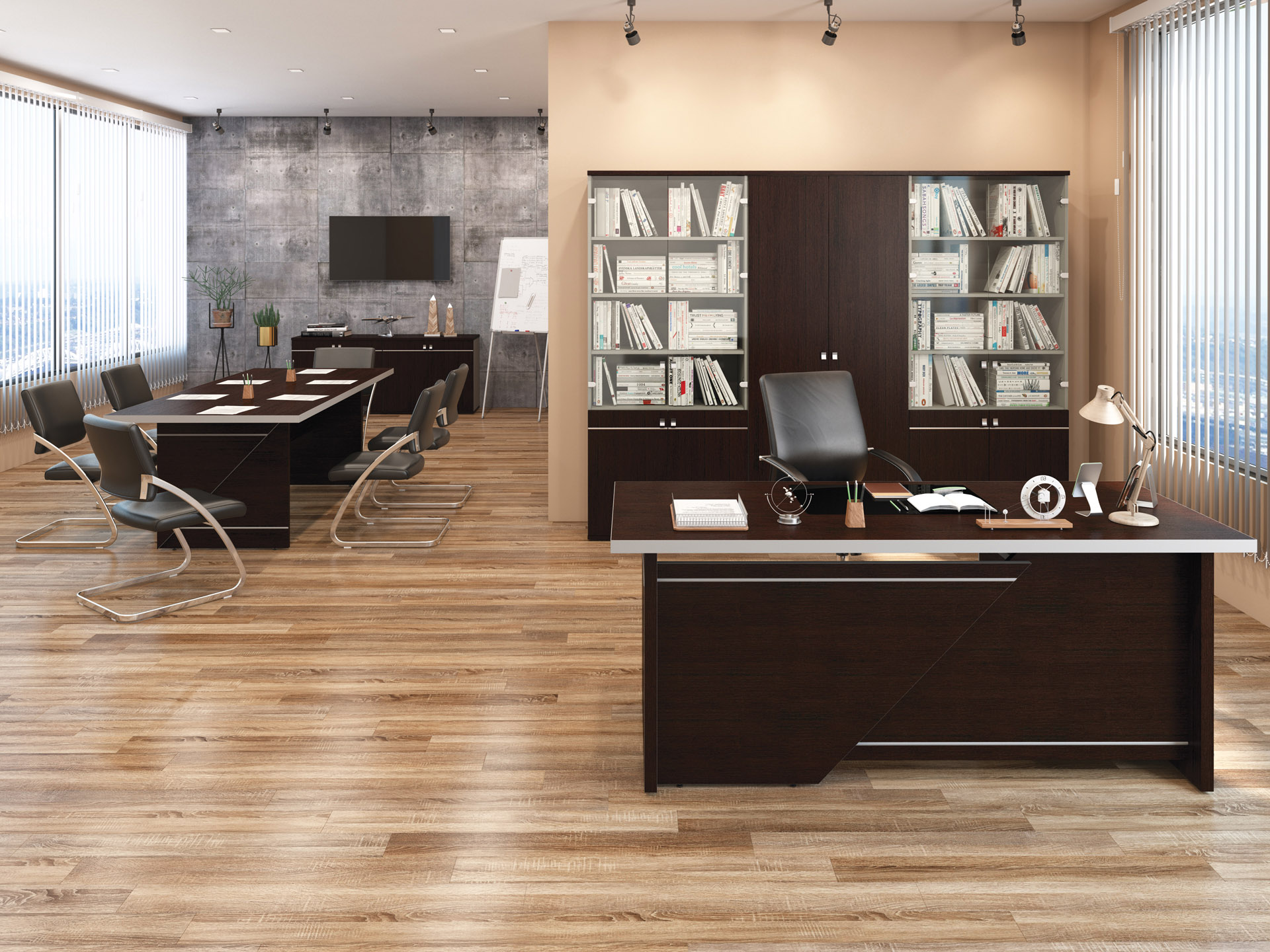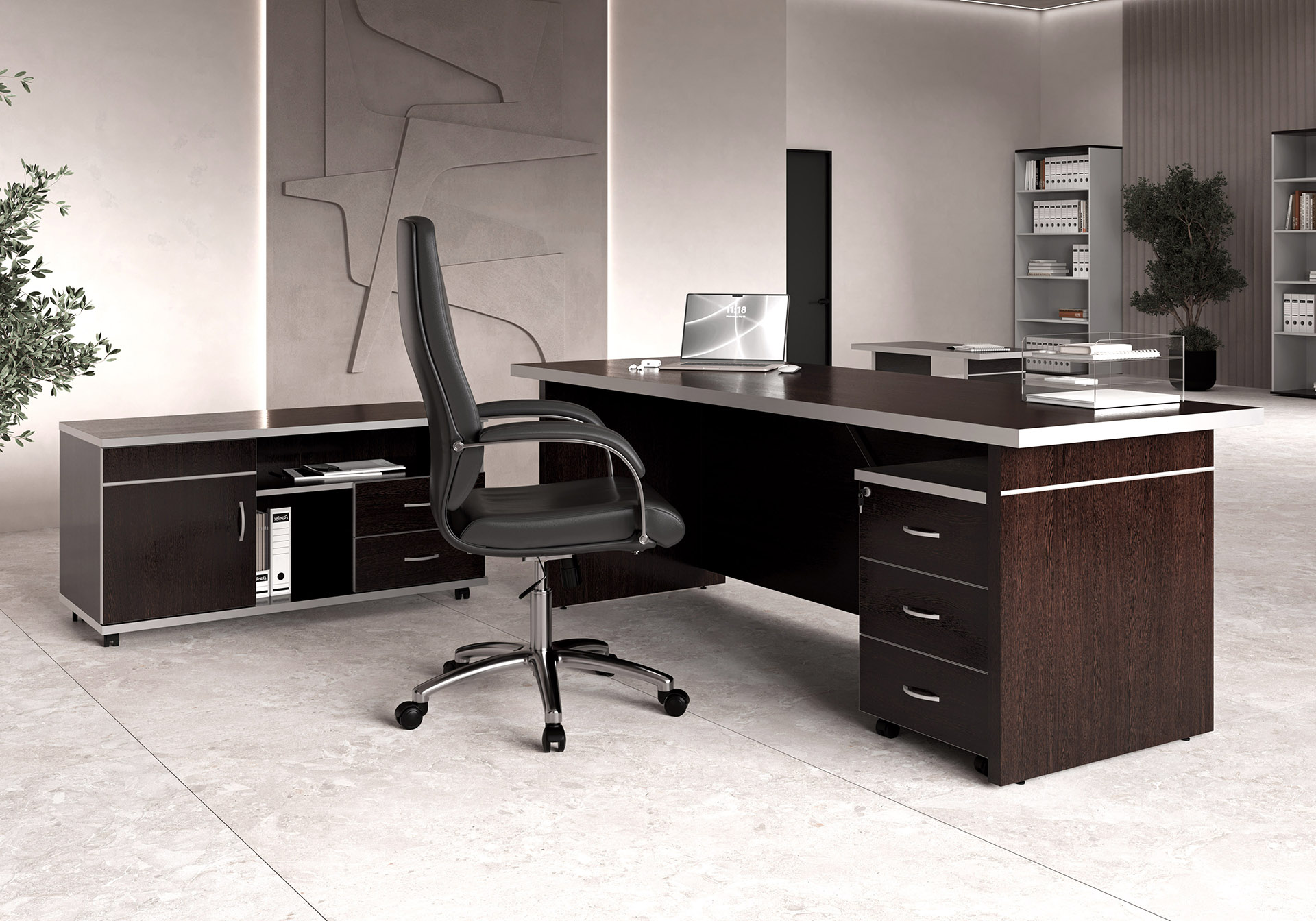 Коллекция Зум / Zoom выполнена в стиле hi-tech с современными дизайнерскими решениями. Резкие черты и актуальные цветовые решения отличают данную серию от многих аналогов. Она станет украшением любого кабинета руководителя, подчёркивая динамику, точность и технологический подход к работе.