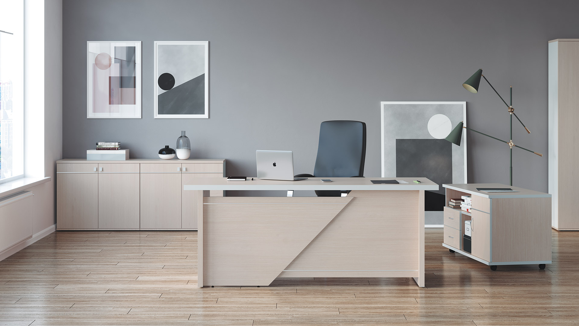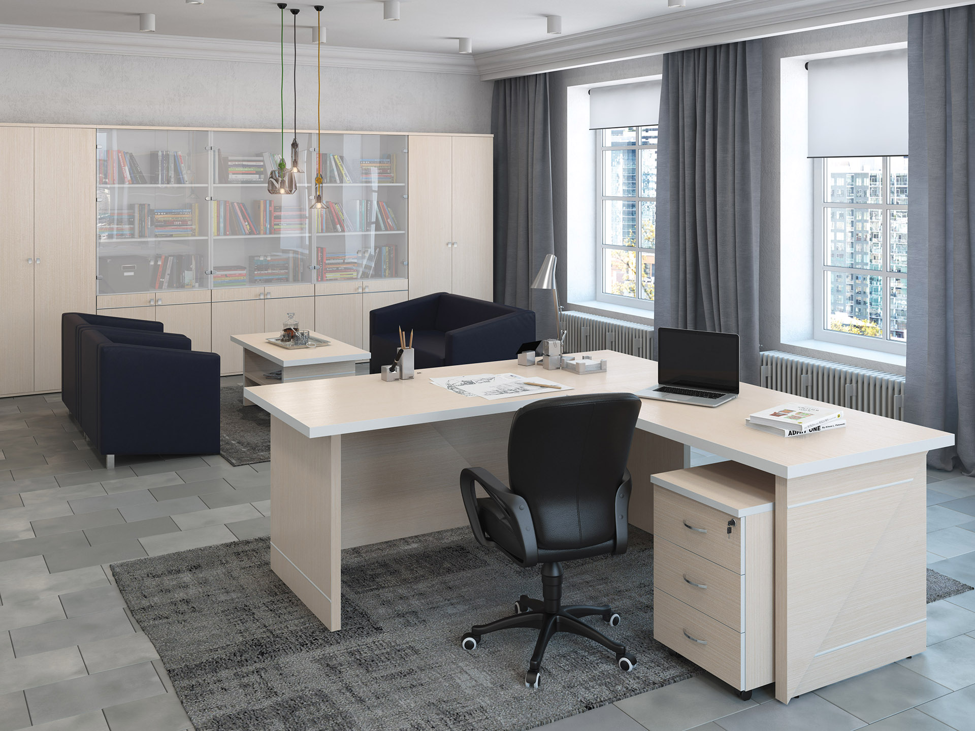 Особенность коллекции — совместимость с элементами серии офисной мебели Свифт / Swift. Вы можете комбинировать модули, создавая индивидуальное пространство без потери стиля.