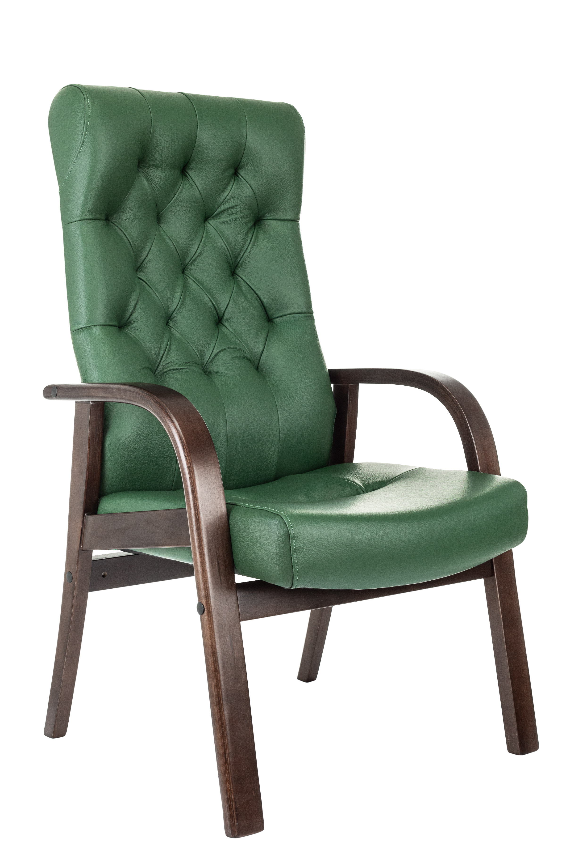 Кресло Бюрократ T-9928WALNUT-CF зеленый кожа на ножках дерево