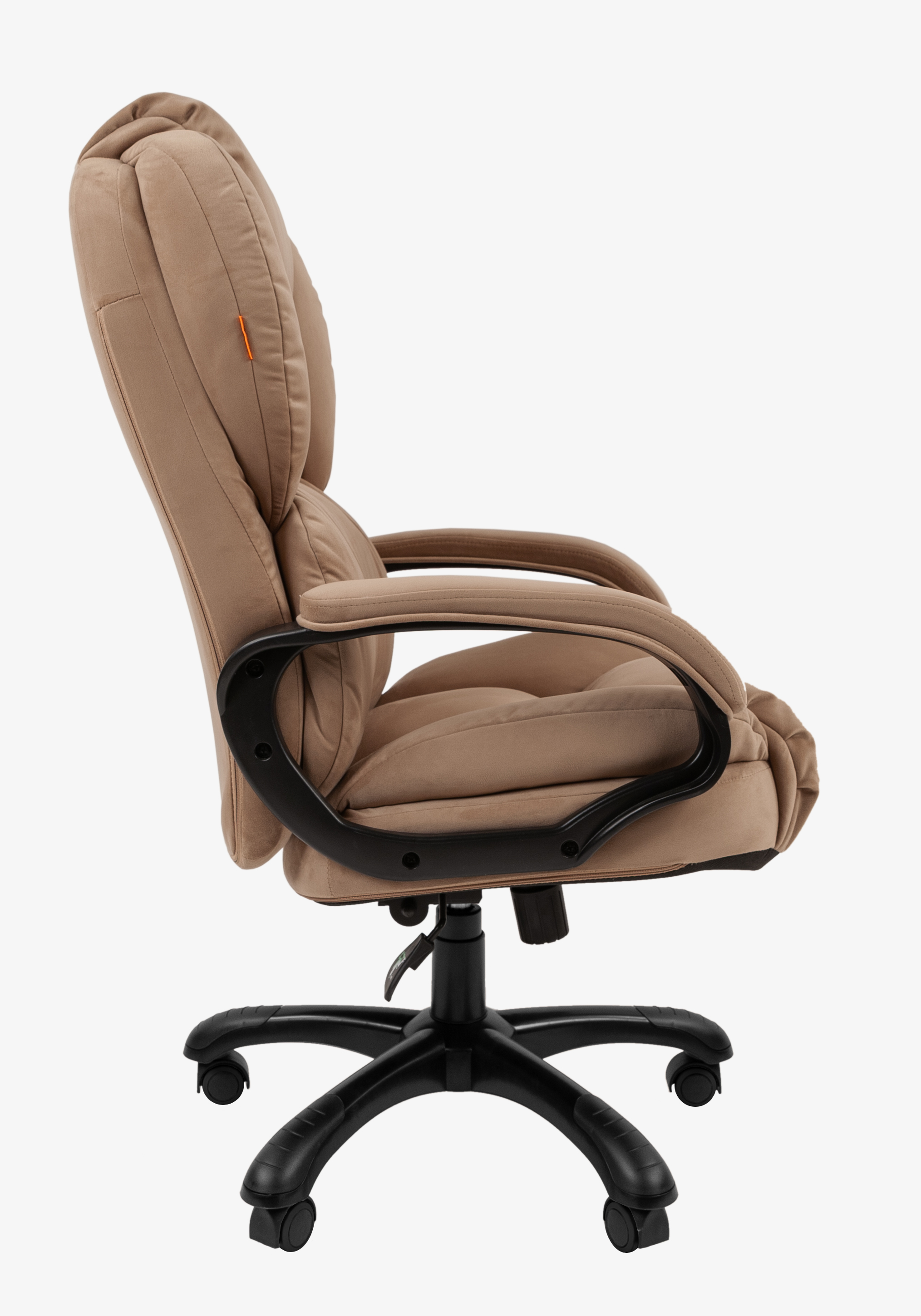 Одно из самых "пышных" кресел руководителя - солидное, комфортное и невероятно уютное. Оно, как дорогой диван, буквально манит в свои объятия, обещая отличный комфорт. И не обманывает. Округлые формы и обивка из велюра придают креслу статусный и эффектный внешний вид, а дополнительные подушки с мягким наполнителем обеспечивают удобную посадку.