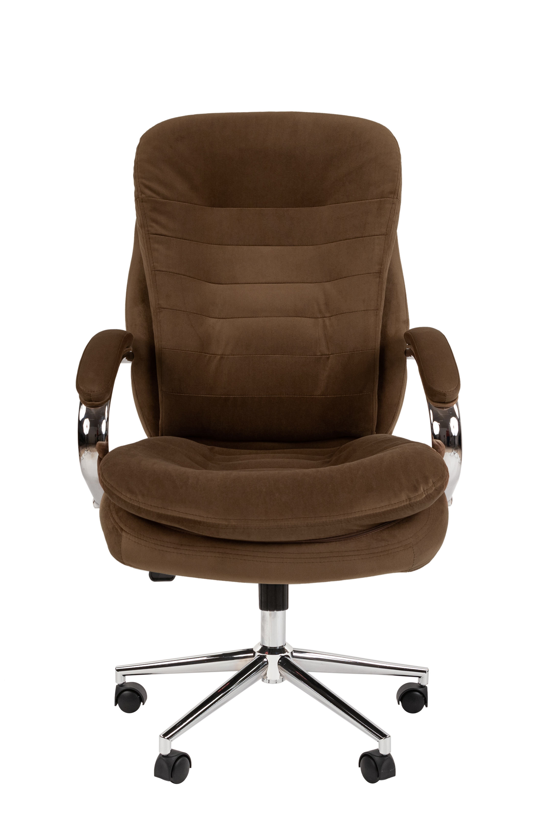 Элегантное кресло подойдет для домашнего кабинета или кабинета руководителя. Универсальный дизайн подходит для большинства интерьеров. Округлые формы, эффектный хромированный металл и мягкая обивка из велюра придают креслу статусный и эффектный внешний вид. Эргономичная форма и дополнительные подушки сиденья и спинки обеспечивают удобную посадку. Кресло оснащено механизмом качания с возможностью фиксации в любом положении, что позволяет настроить кресло в нужный режим для работы или отдыха.