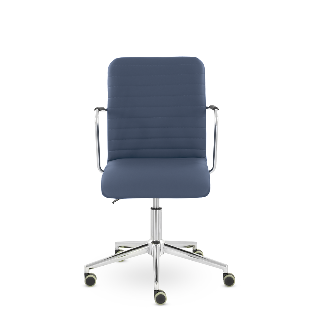 Уникальный каркас из металла и узкие хромированные подлокотники с небольшими пластиковыми накладками придают конструкции легкость и прочность. Горизонтальные строчки на спинке подчеркивают элегантный и современный вид.