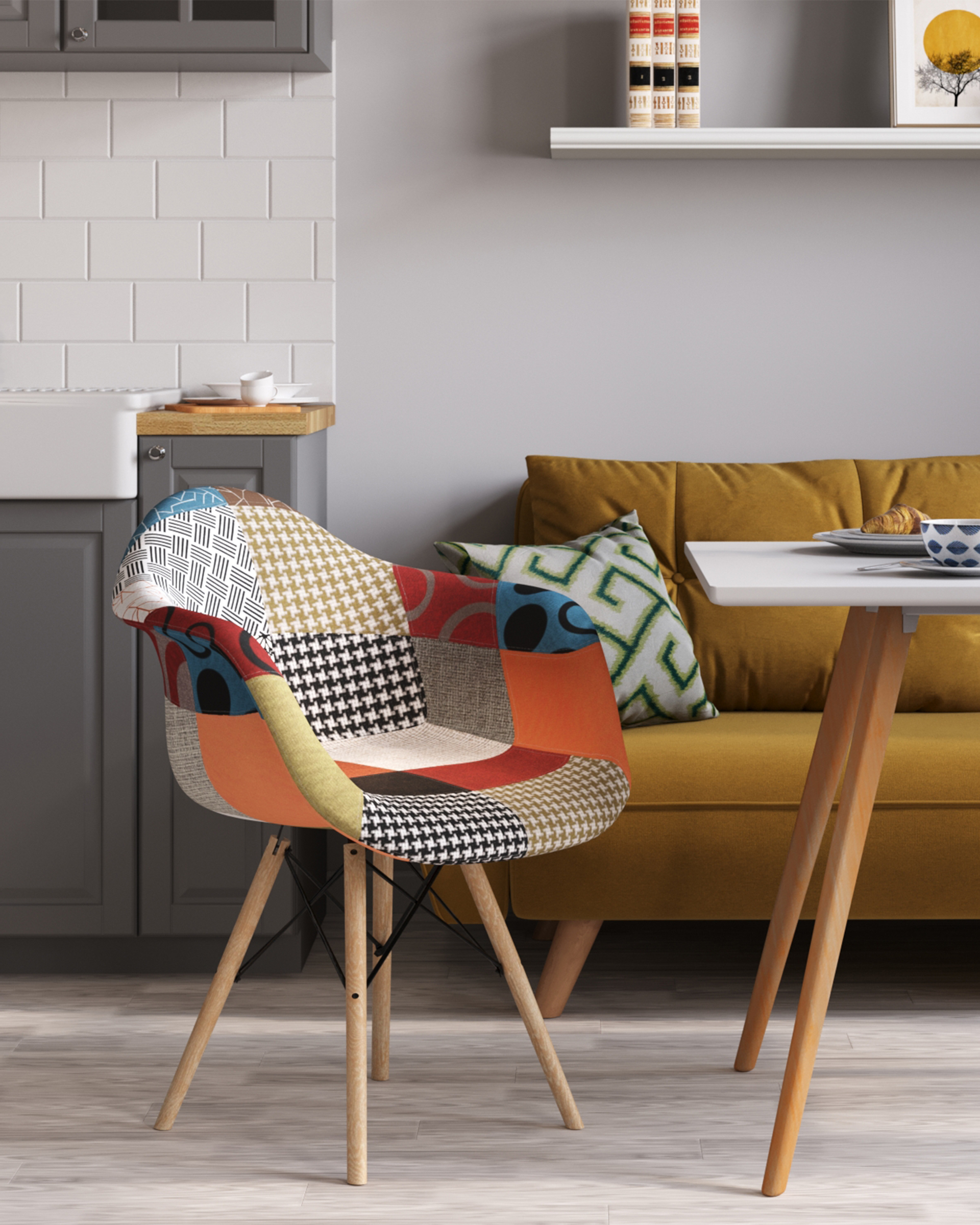 Кресло Eames DSW обивка тканевая в стиле пэчворк, ножки из массива бука
