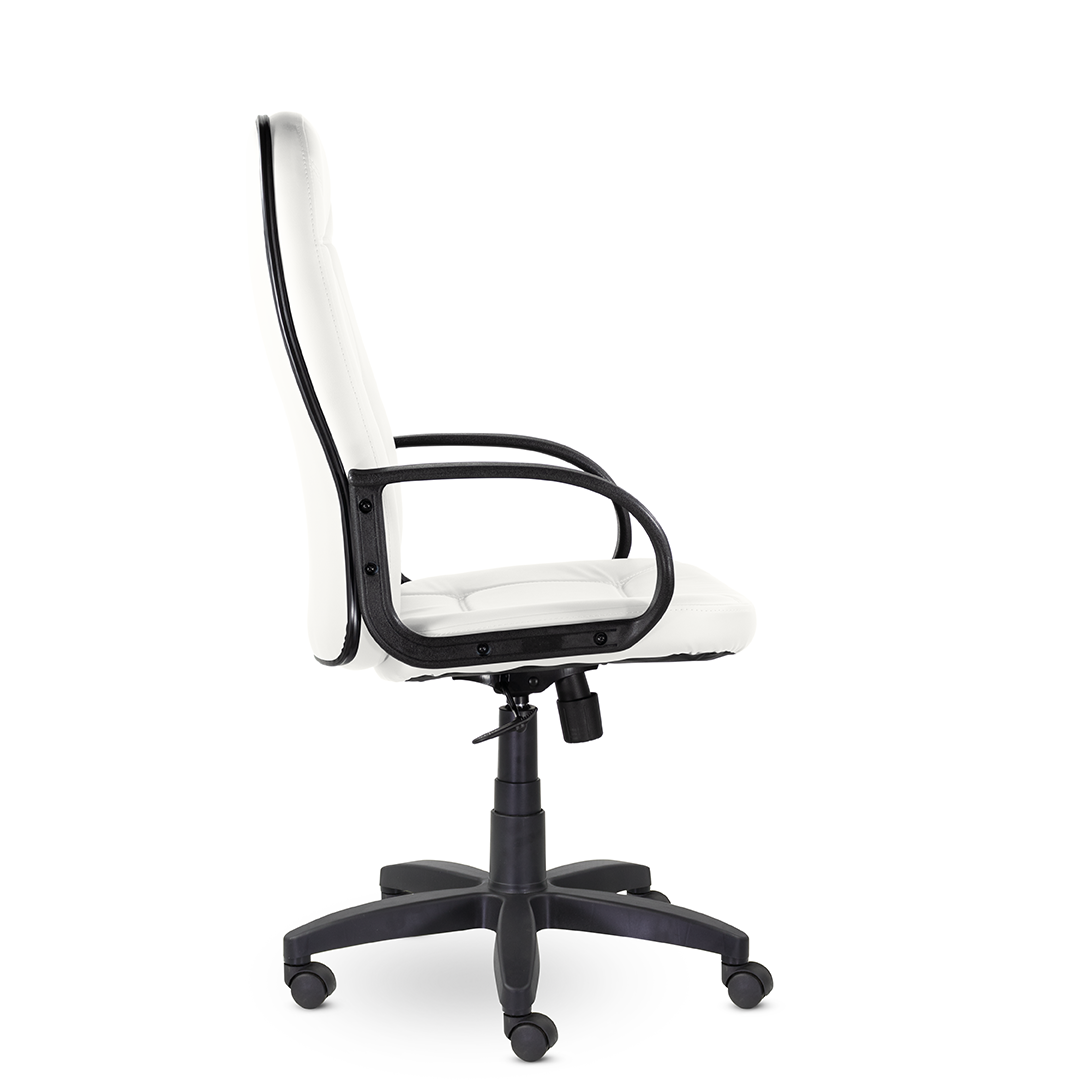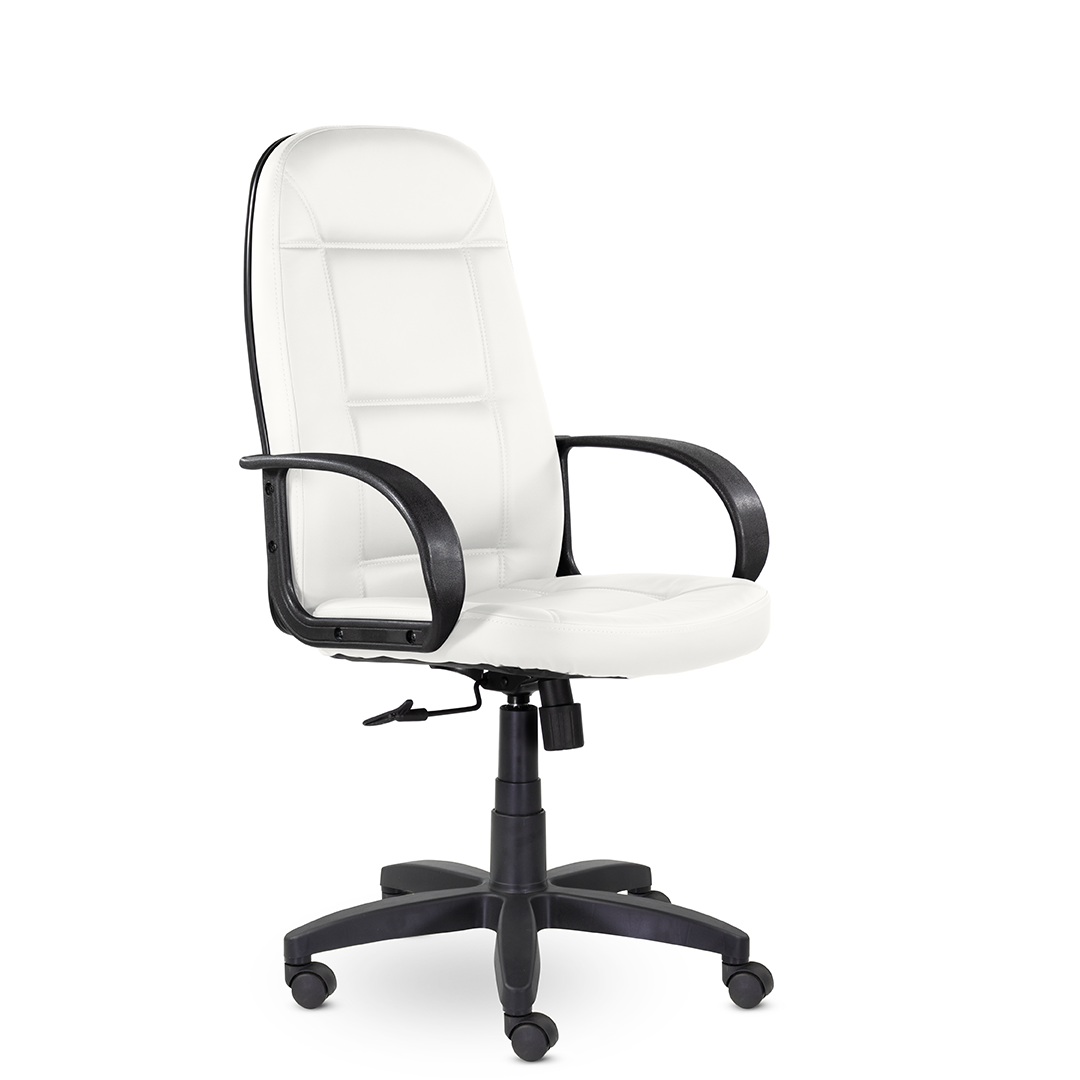 Высокая спинка с горизонтальными прострочками, облокотившись на которую ваша шея сможет отдохнуть, глубокое сидение и широкие подлокотники - все, что нужно для комфортного рабочего дня. Подойдет как для руководителей, так и для персонала. Пластиковая крестовина выдерживает вес до 150 кг.