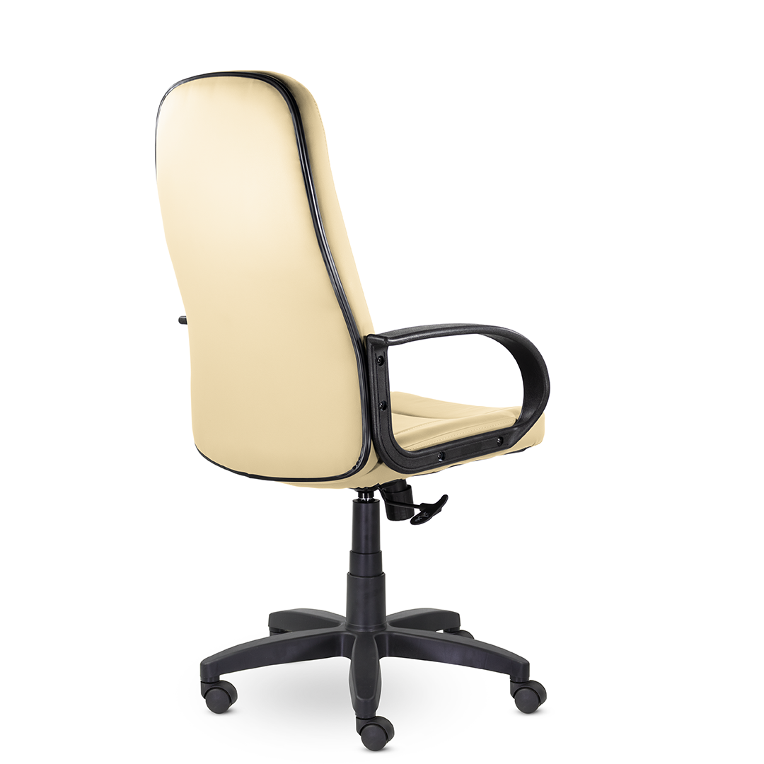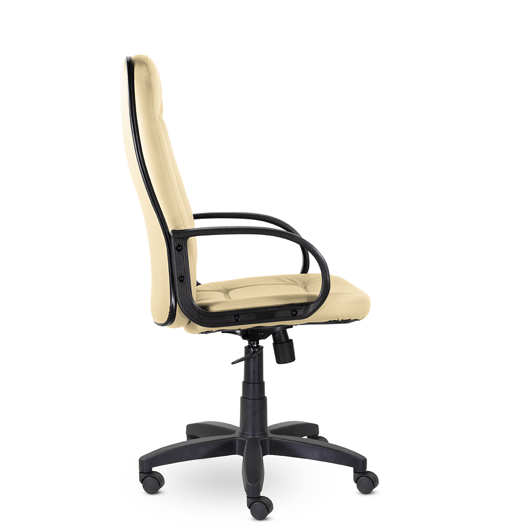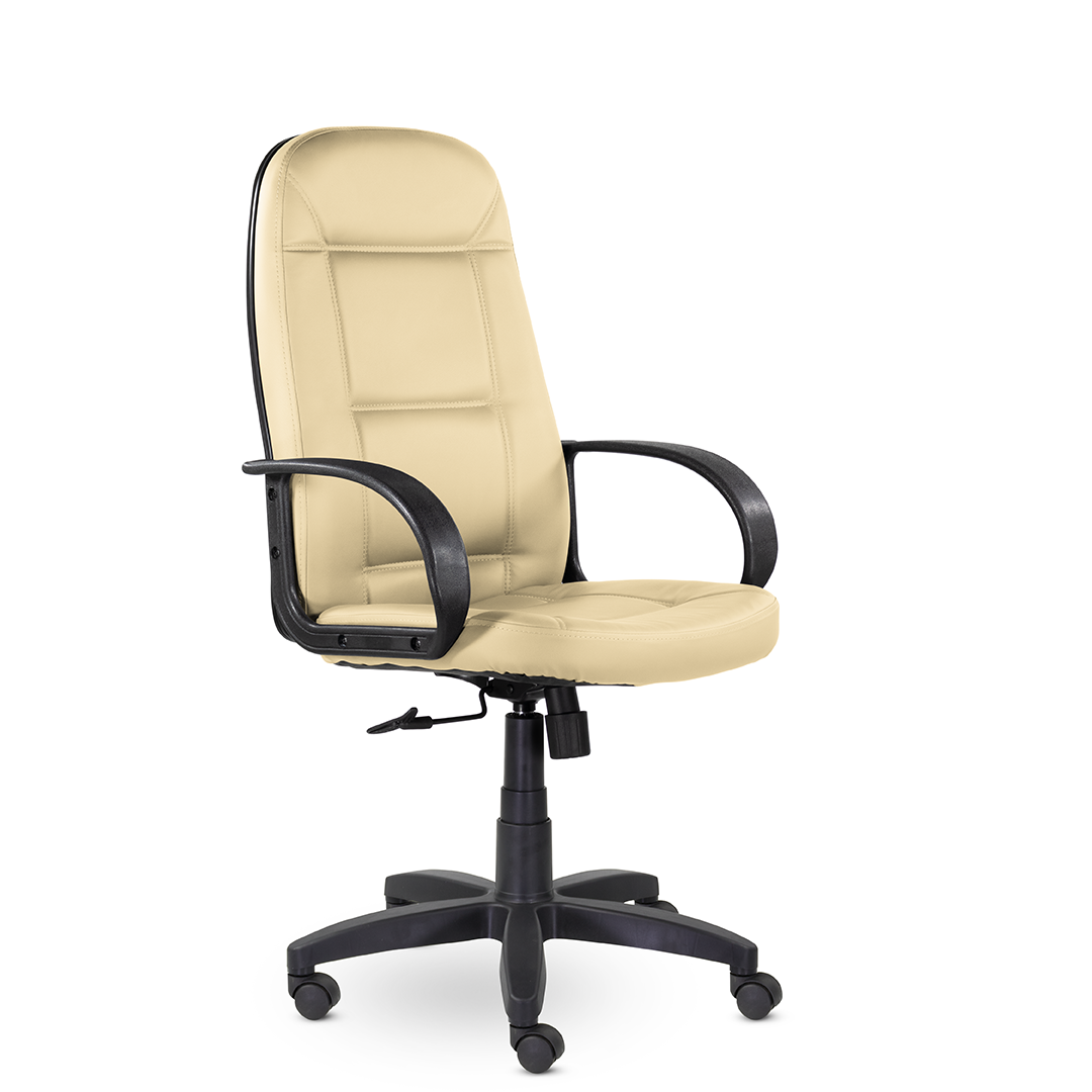 Высокая спинка с горизонтальными прострочками, облокотившись на которую ваша шея сможет отдохнуть, глубокое сидение и широкие подлокотники - все, что нужно для комфортного рабочего дня. Подойдет как для руководителей, так и для персонала. Пластиковая крестовина выдерживает вес до 150 кг.
