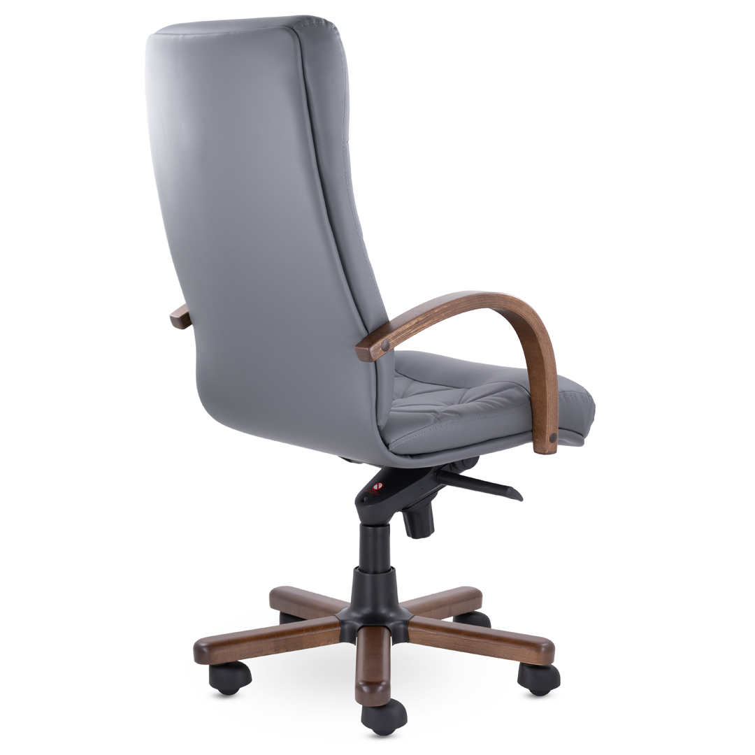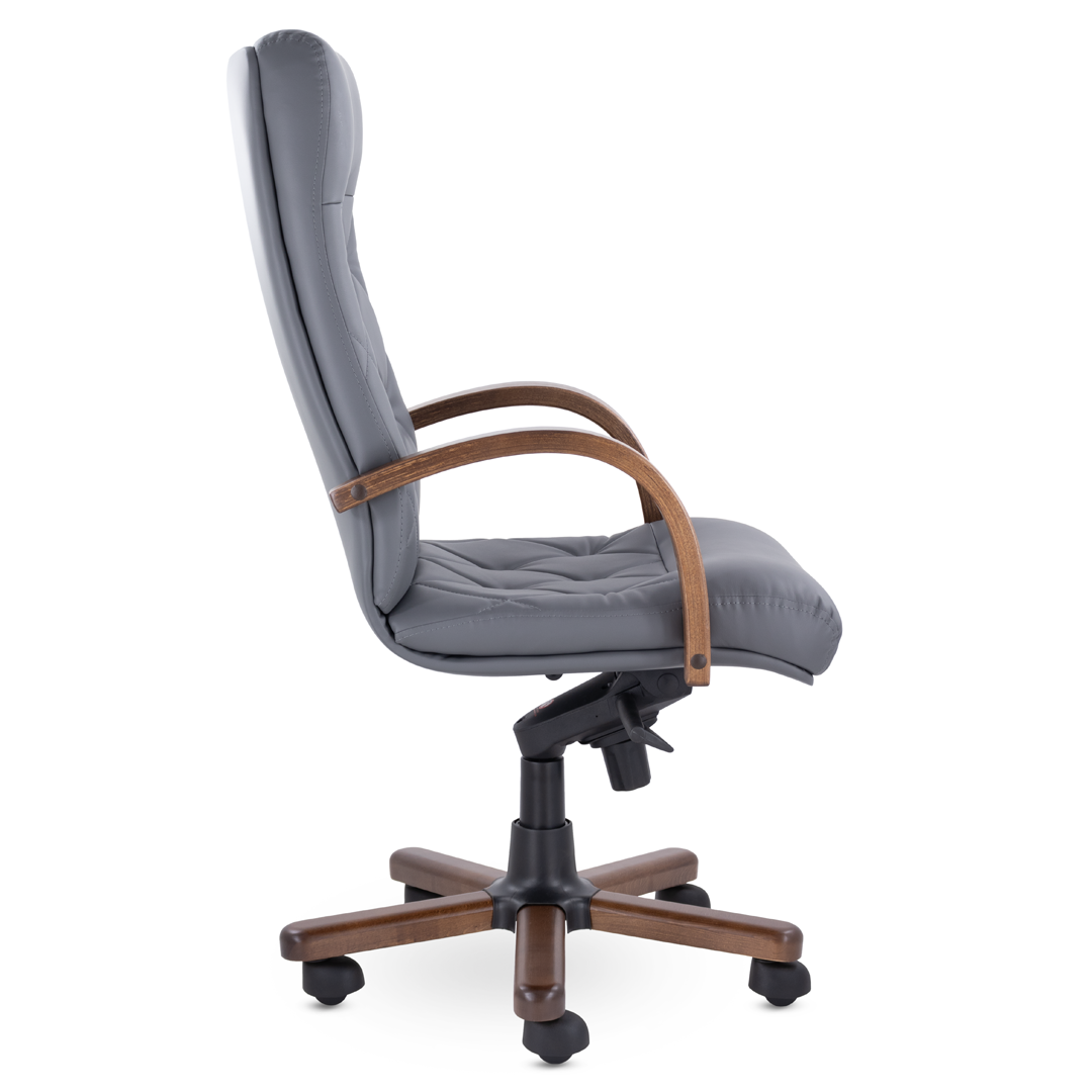 Это кресло восхищает своим изяществом и одновременно строгостью. Кресло имеет креативную прострочку, которая делит каркас на небольшие квадраты, а также широкий подголовник. Подлокотники и крестовина - натуральное дерево. Механизм качания мультиблок с регулировкой под вес пользователя фиксирует спинку вертикально и позволяет отклонять её назад в 5 положениях. Кресло выдерживает нагрузку до 180 кг.