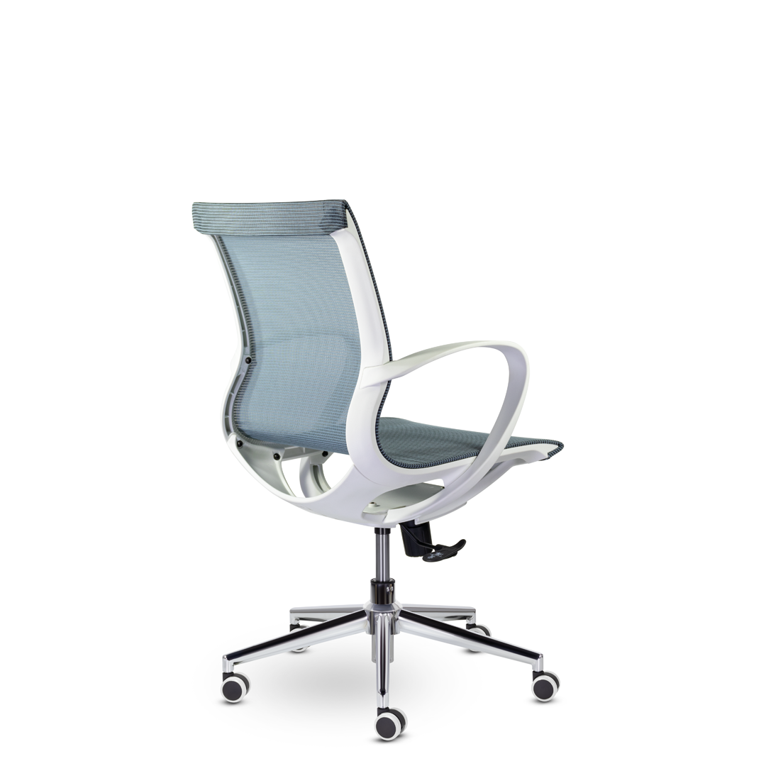 Уникальность состоит в капсульной конструкции кресла. По всему каркасу натянута прочная сетка цвета “мокрого асфальта”, которая придает изящный вид. Кресло оператора отлично подойдет для “открытого” офиса.