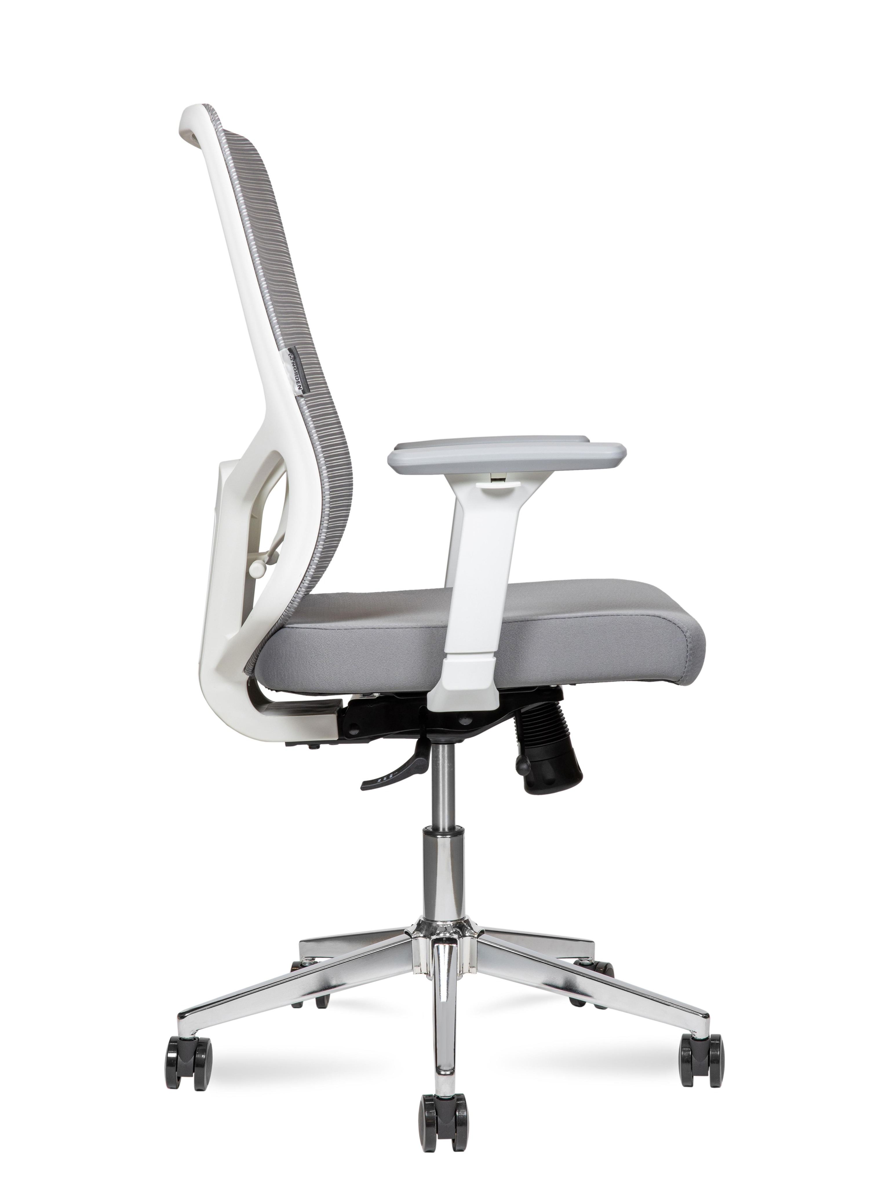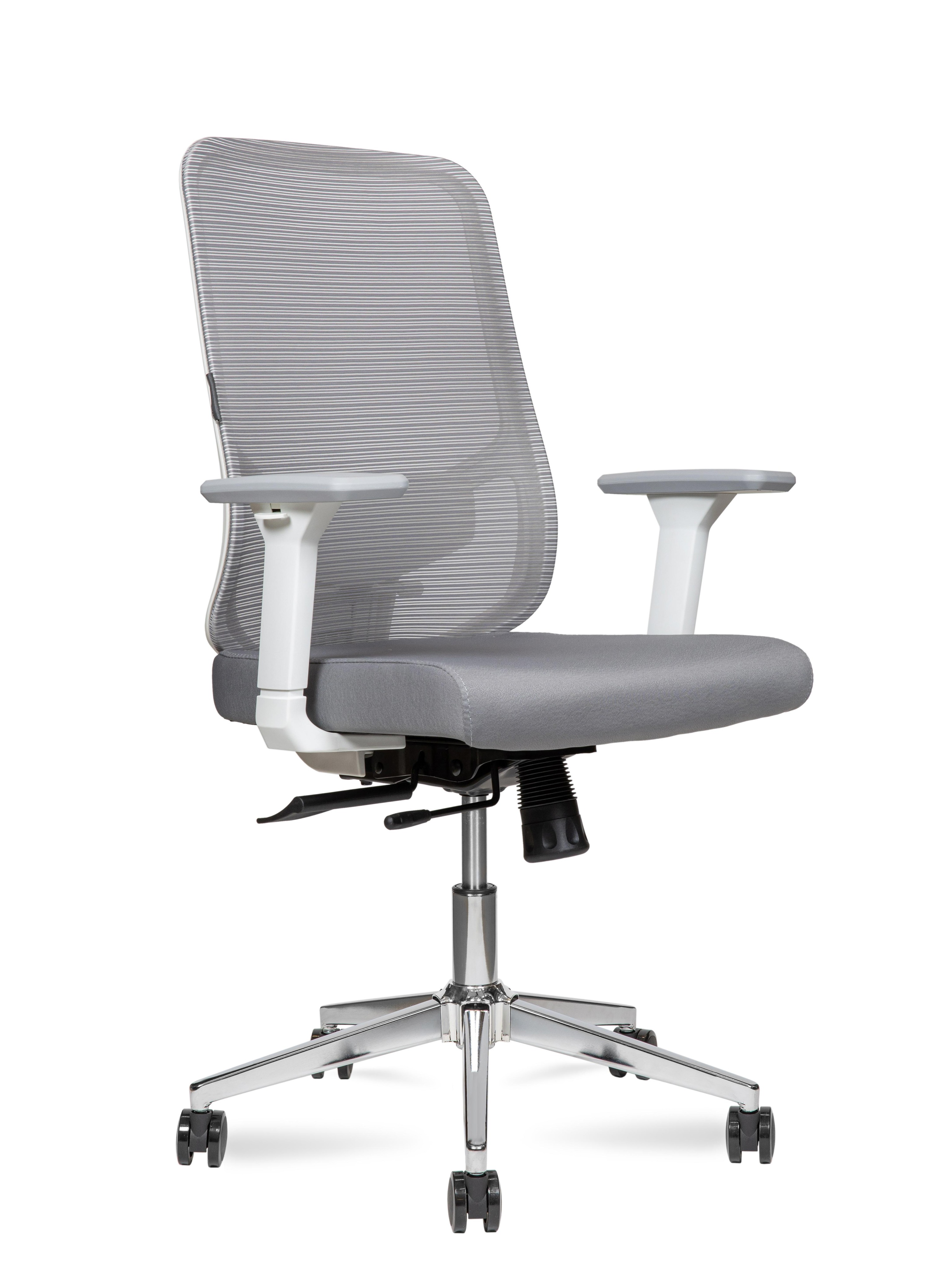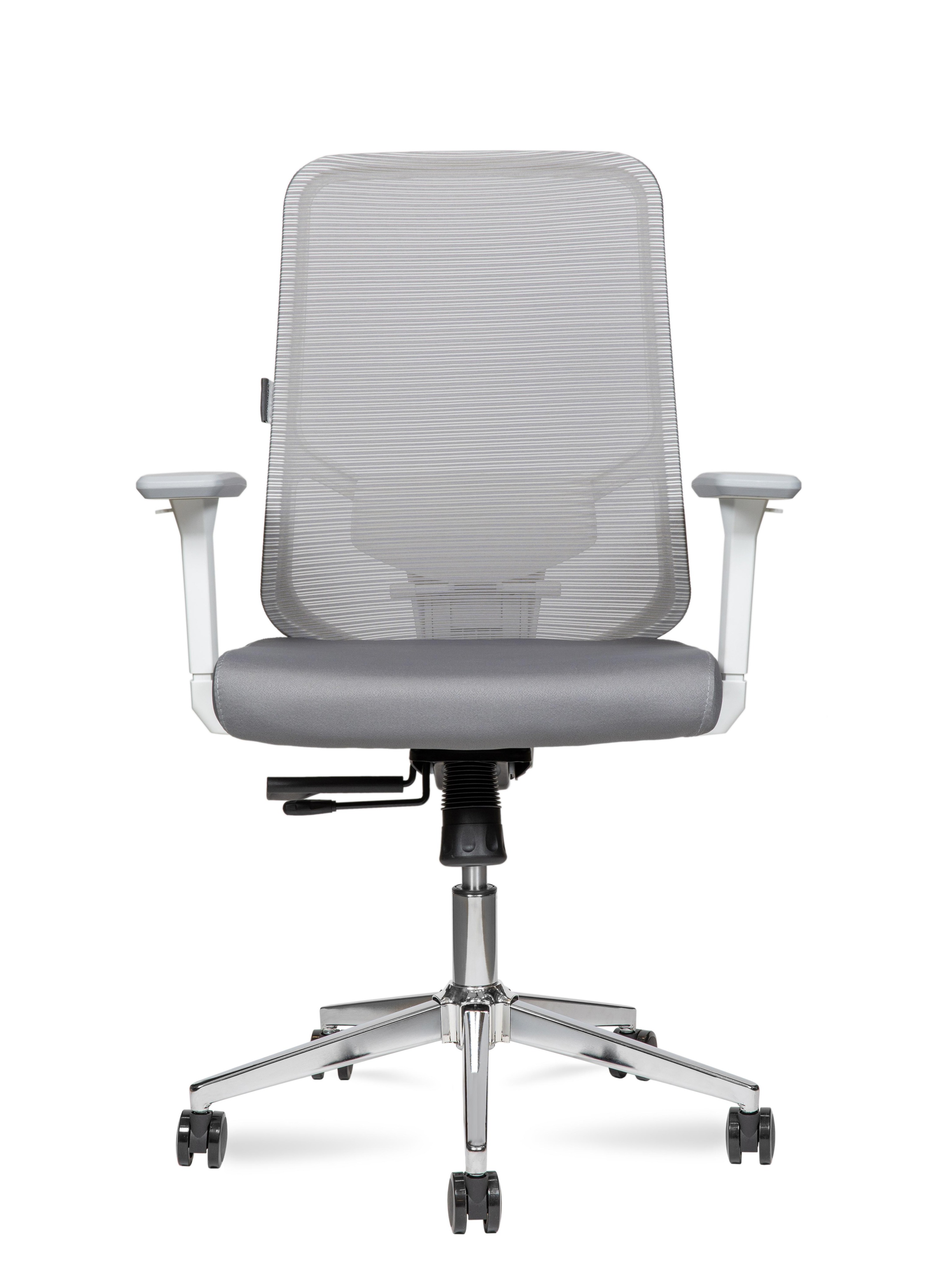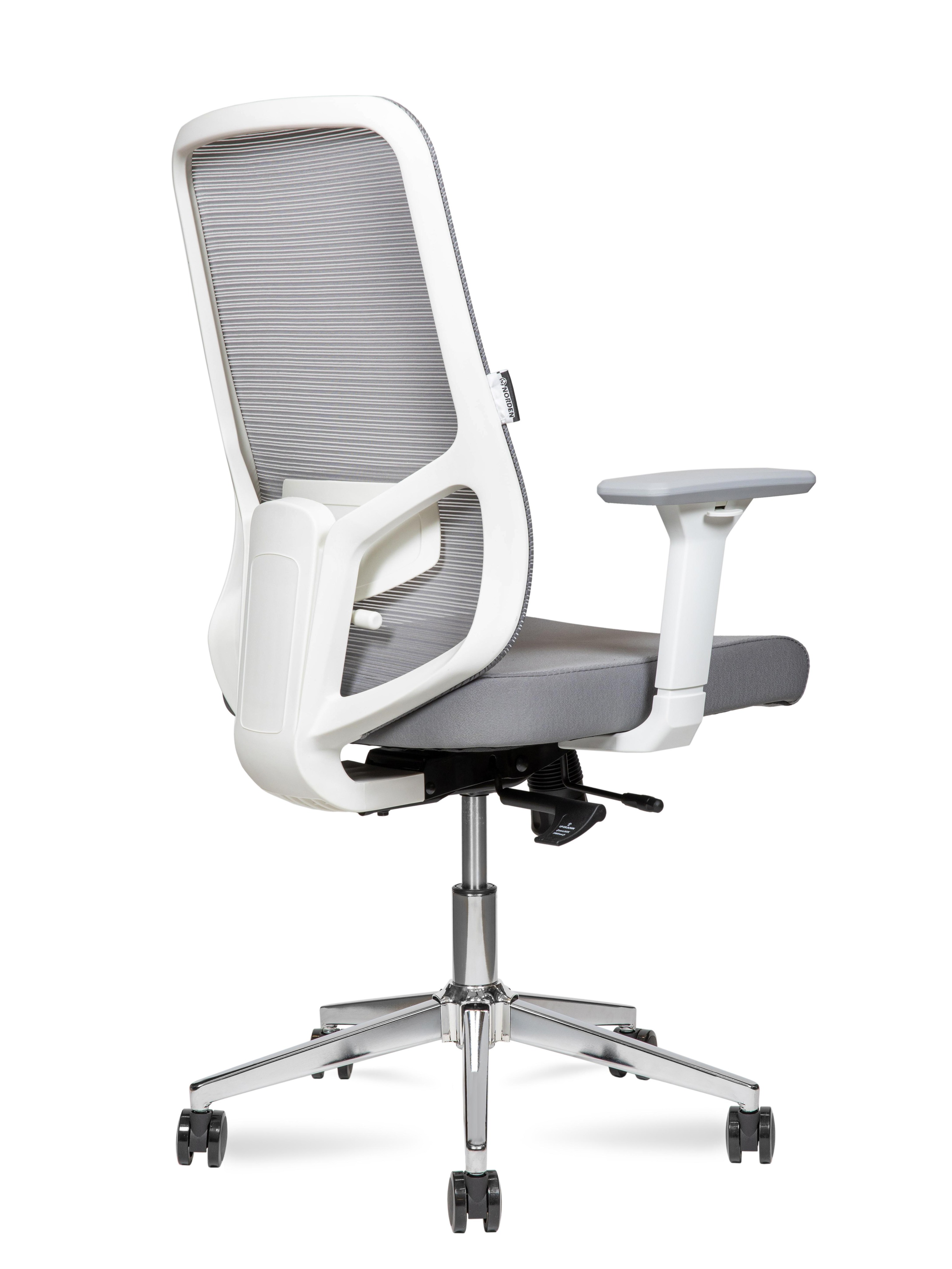Кресло офисное Норден / Бэст LB вайт / Best LB white / белый пластик / серая сетка / серая ткань /база хром