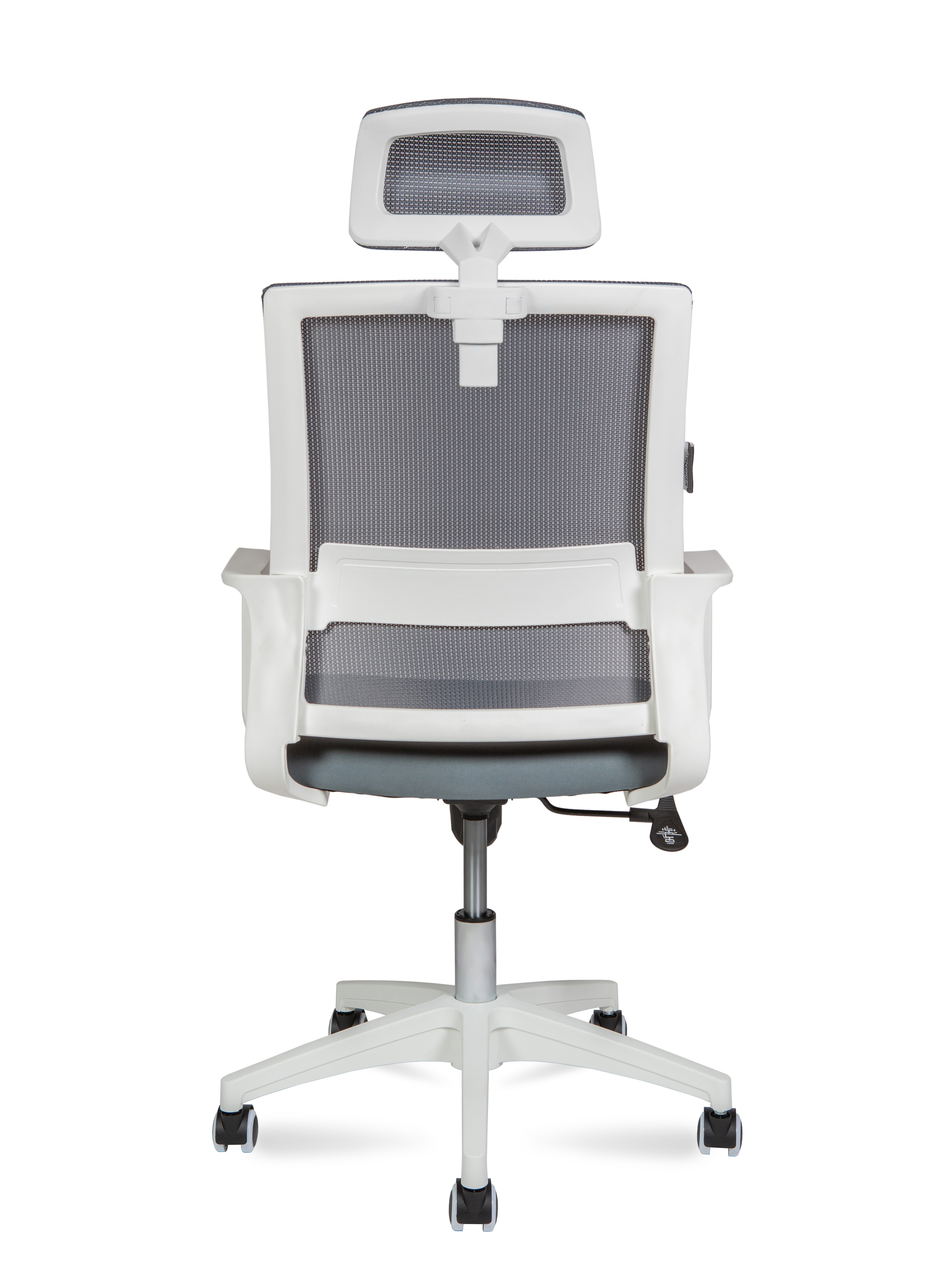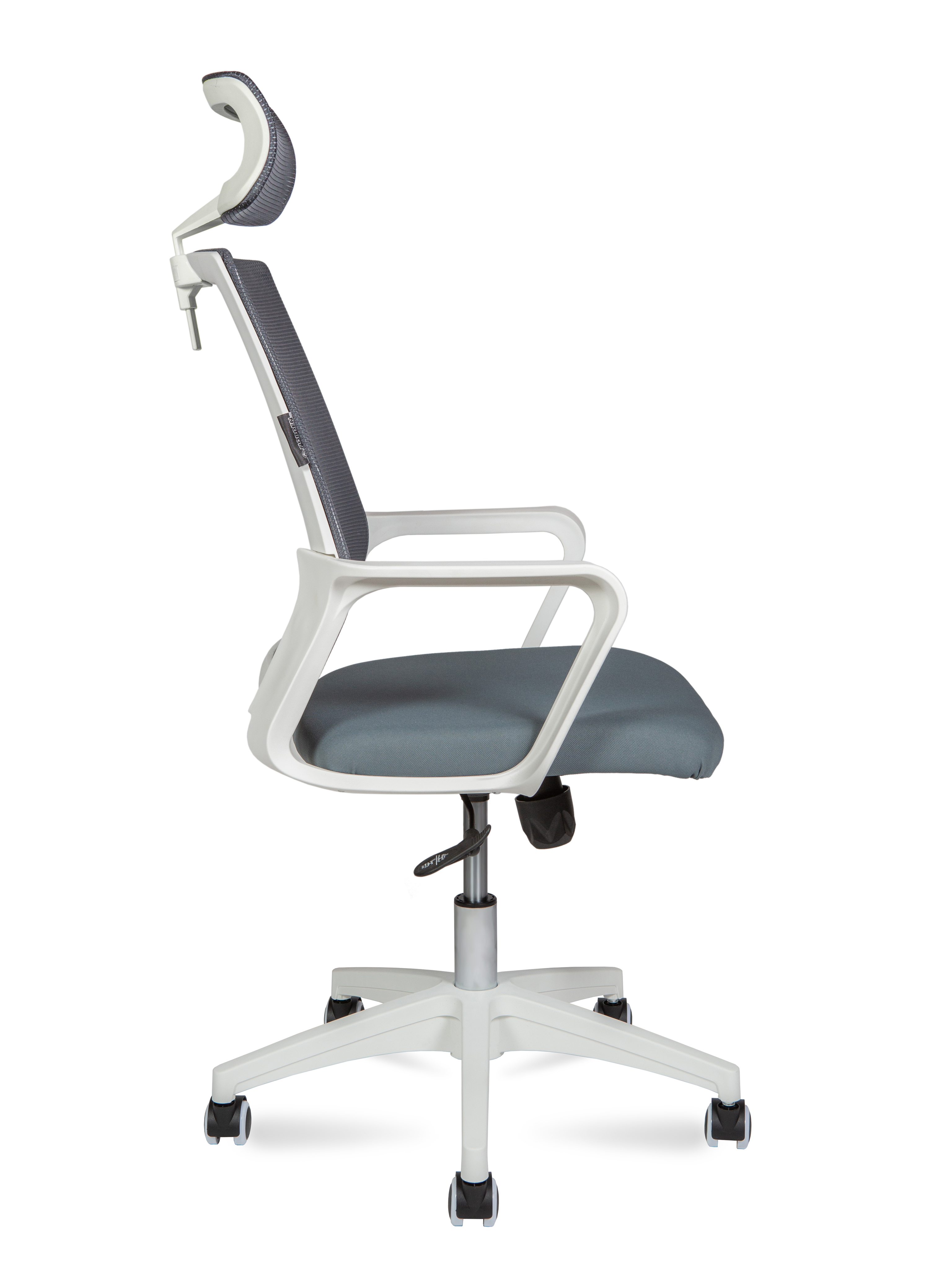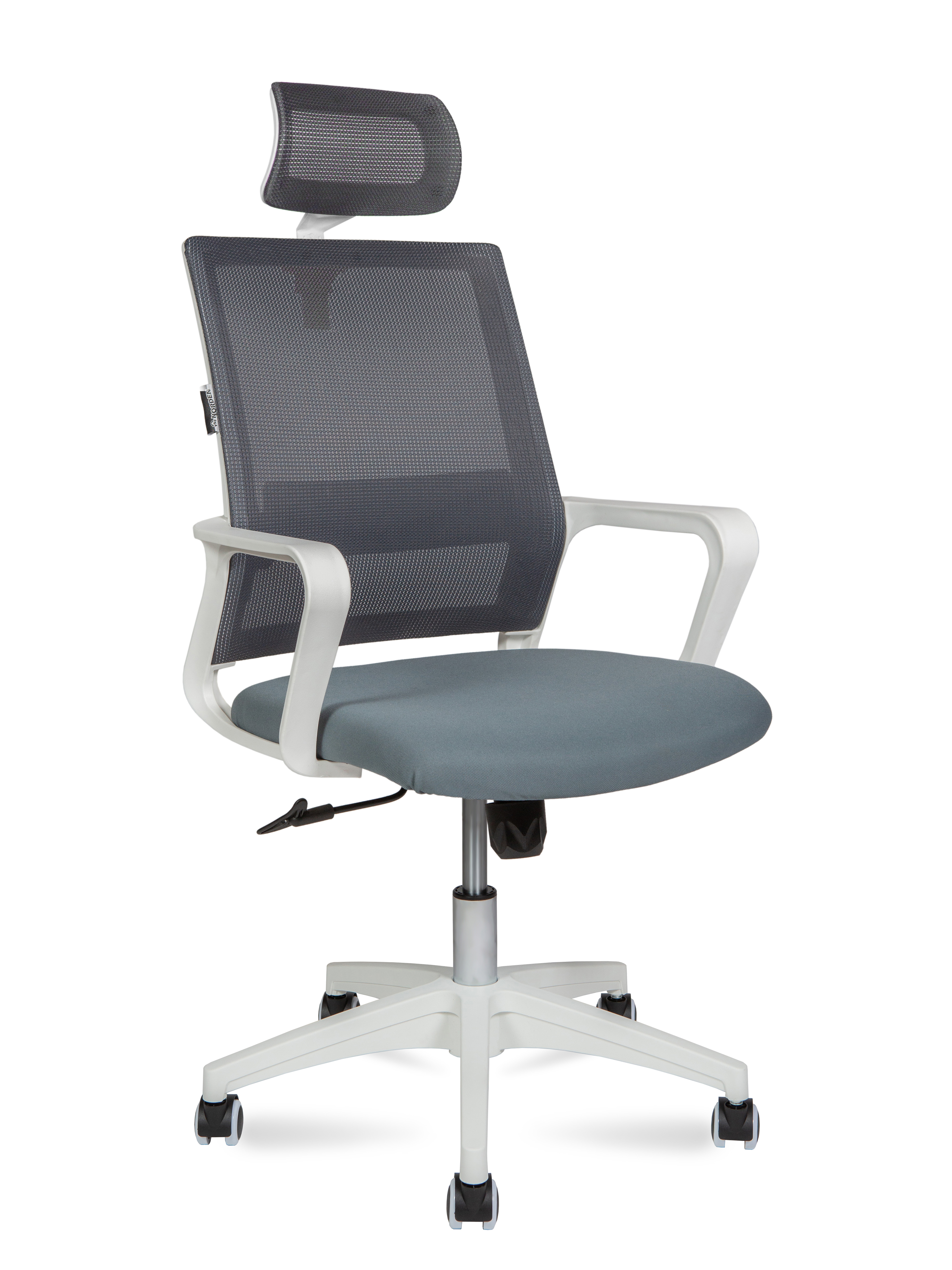 Кресло офисное Норден / Бит / белый пластик / серая сетка / темно серая ткань