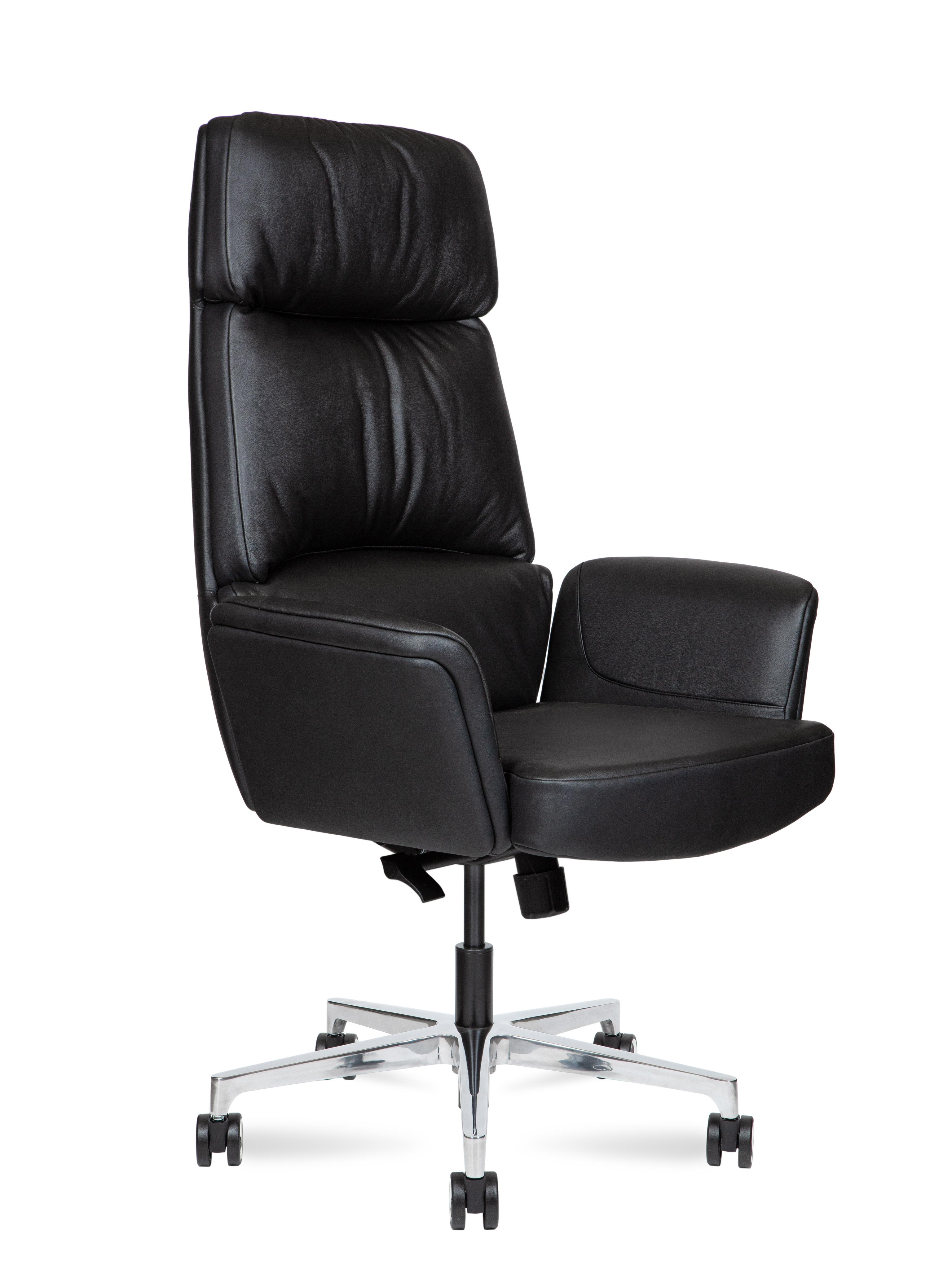 Кресло офисное Норден / Бонно / Bonno / черная кожа / алюминиевая база