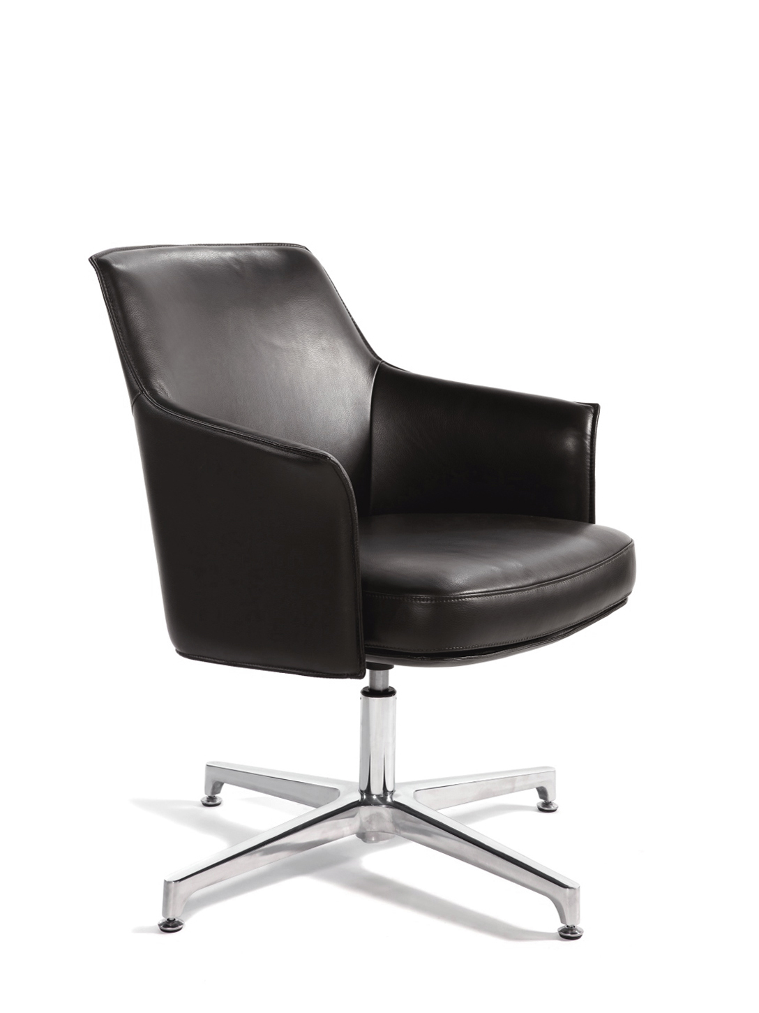 Кресло офисное Норден / Бордо CF / темно-коричневая экокожа / алюминиевая крестовина