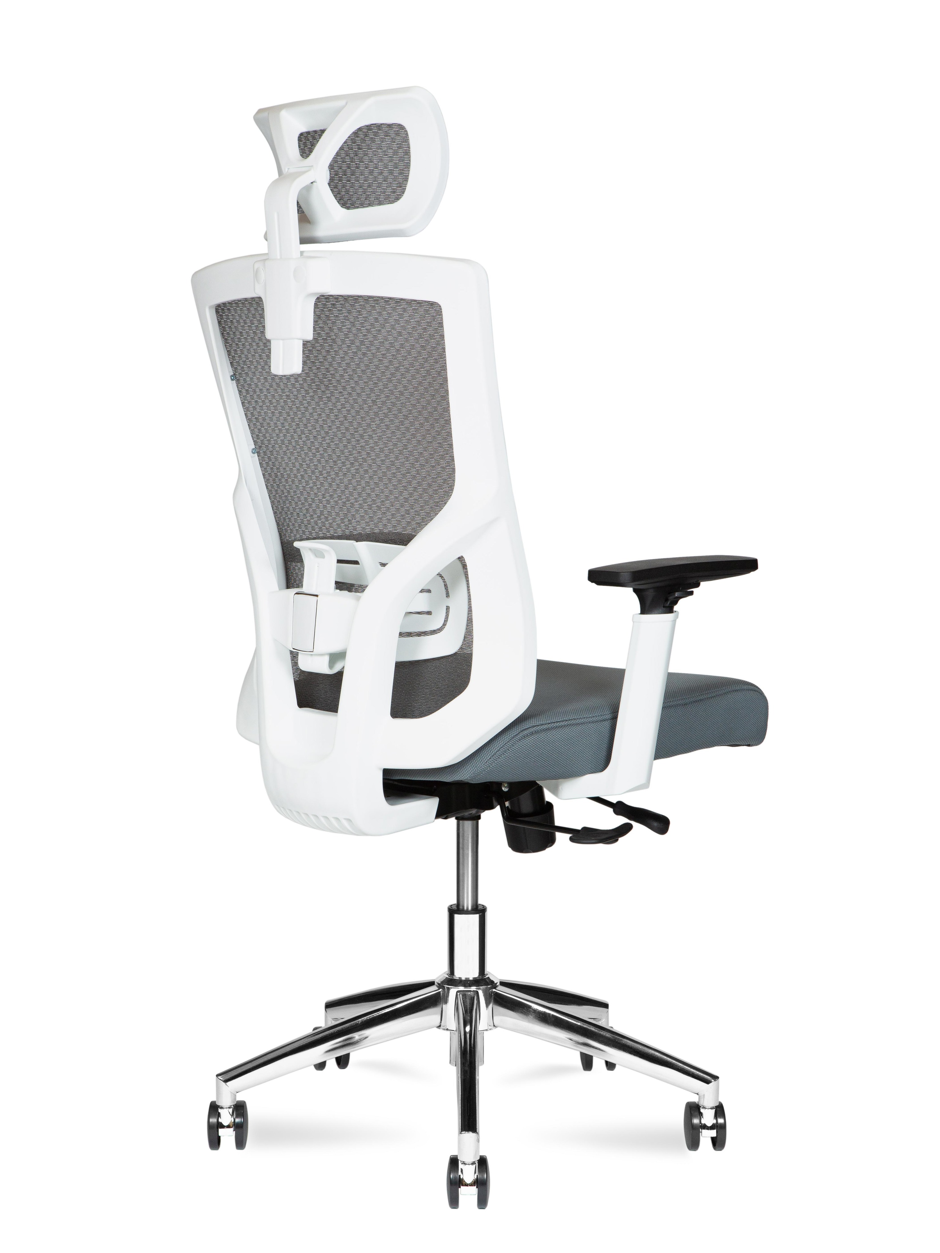 Кресло офисное Норден / Гарда SL / белый пластик / серая сетка / серое сиденье / база хром