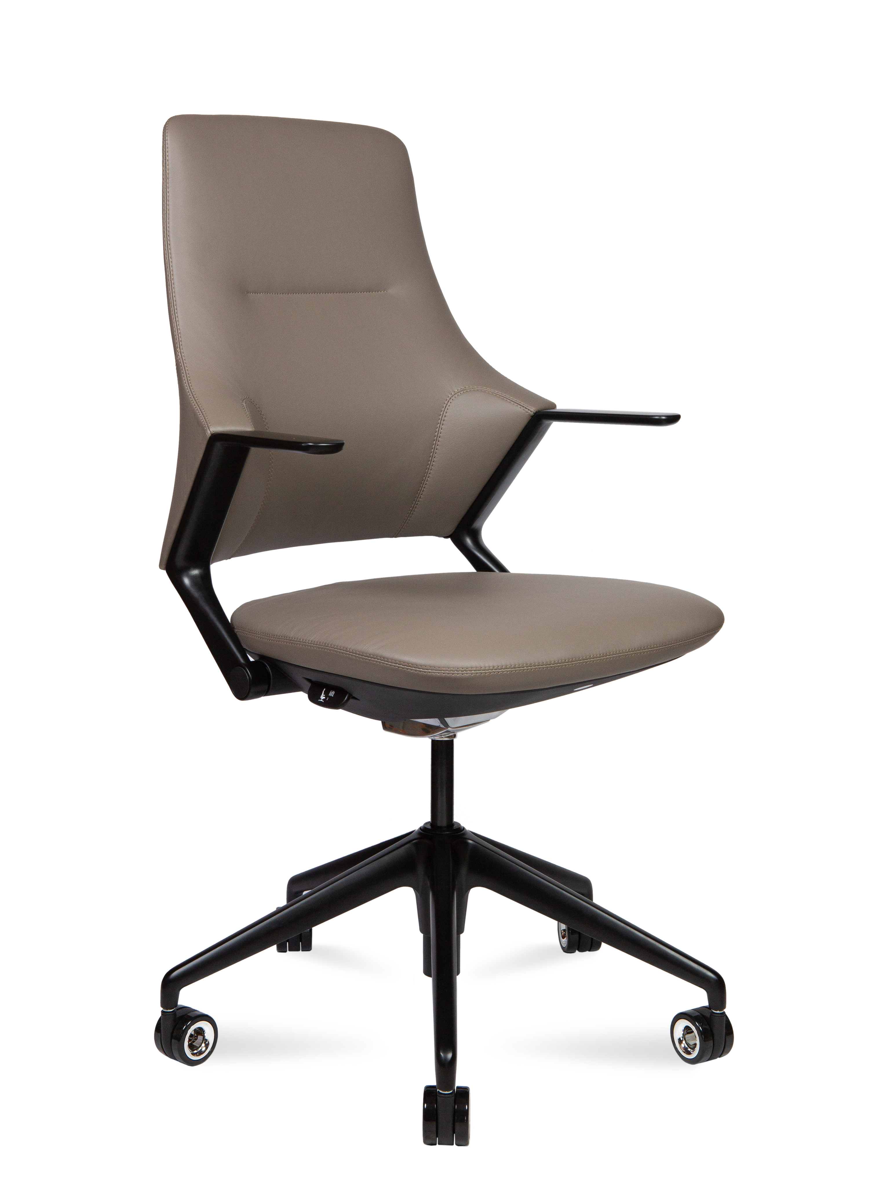 Кресло офисное Норден / Хан LB / Han LB / серая кожа / черная алюминиевая база
