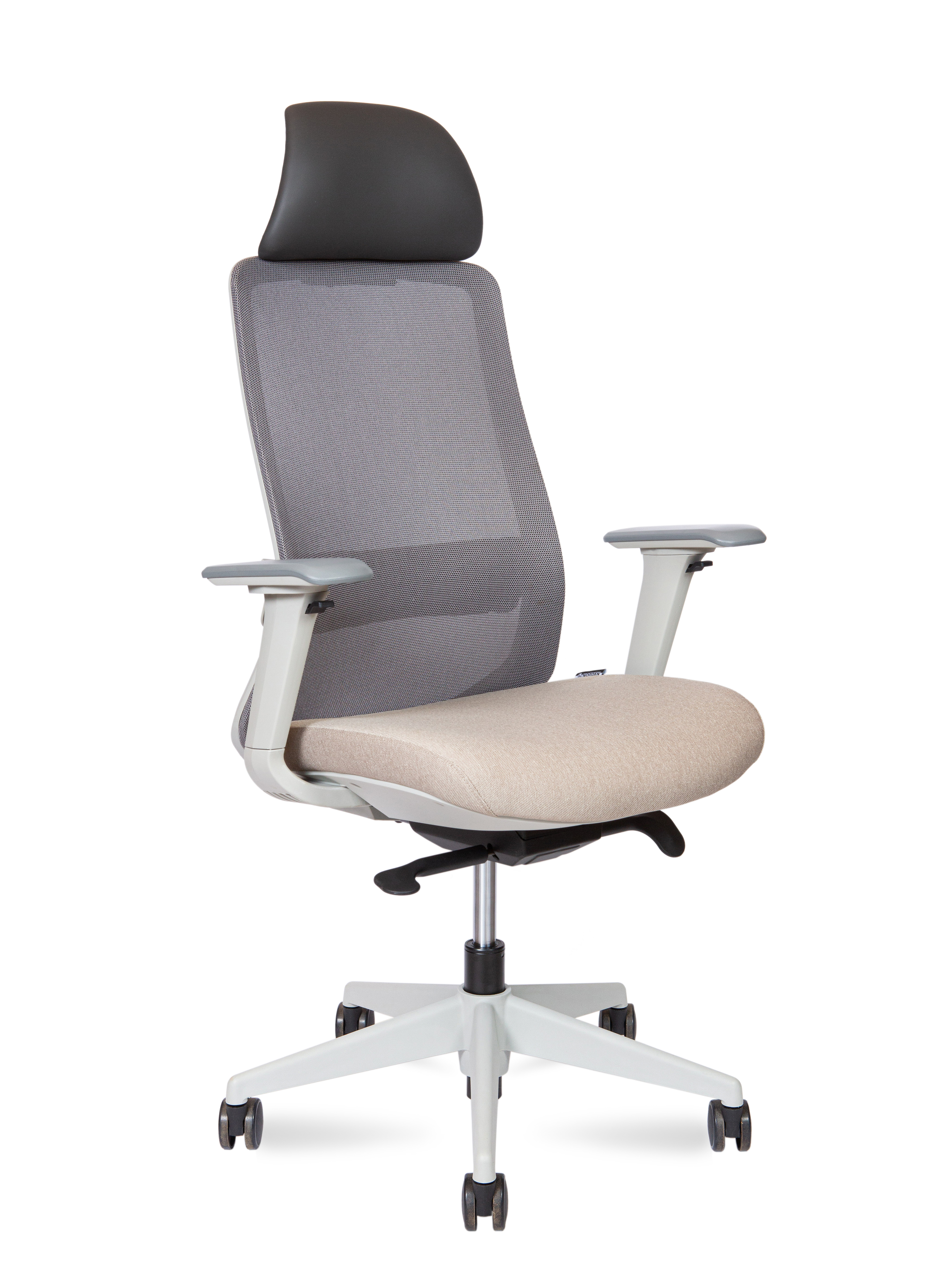 Кресло офисное Норден / Комо грэй беж / Como grey beige / серый пластик / бежевая ткань / серая сетка