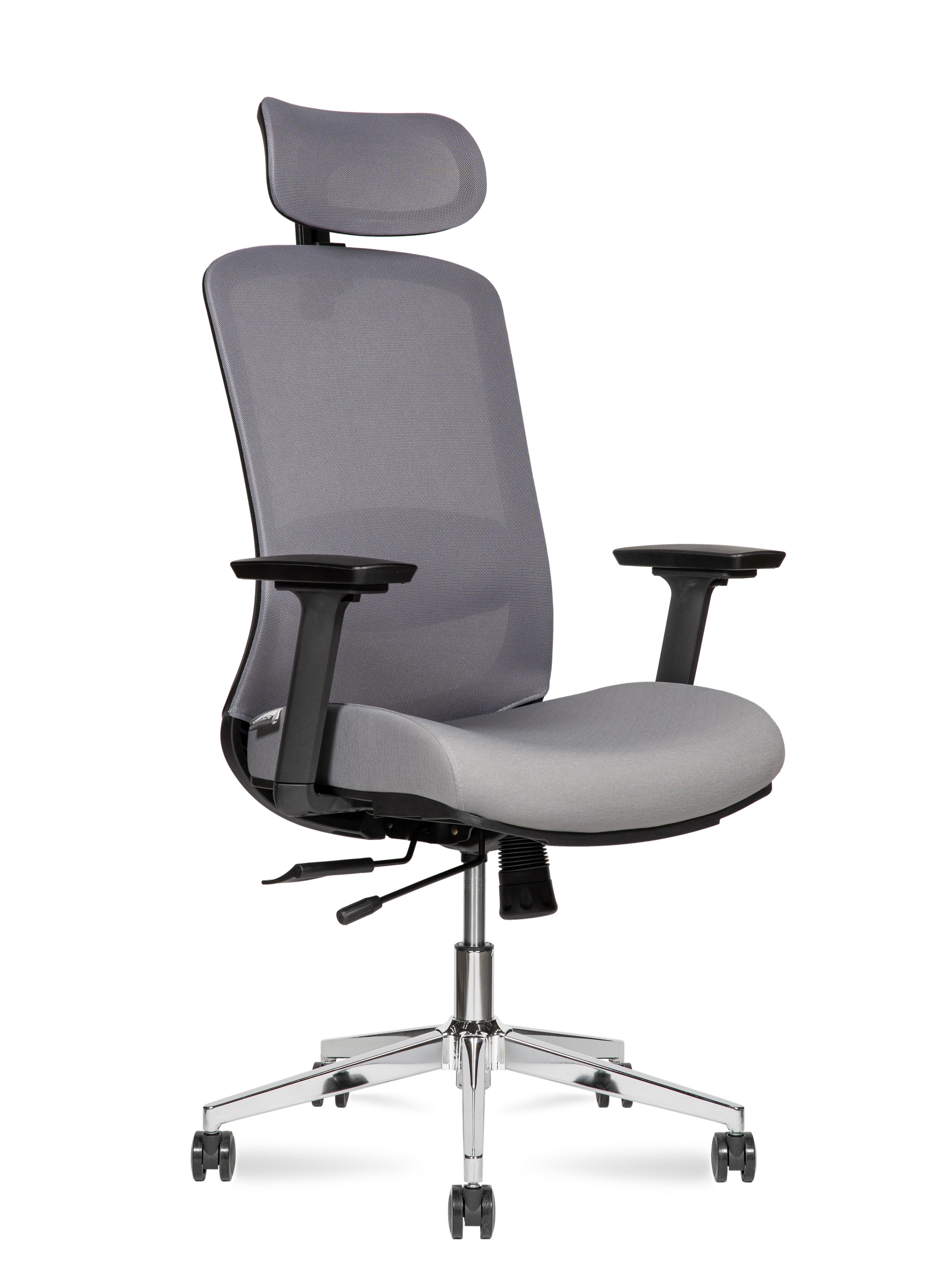 Кресло офисное Норден / Космо блэк / Cosmo black / база хром / черный пластик / серая сетка / серая ткань