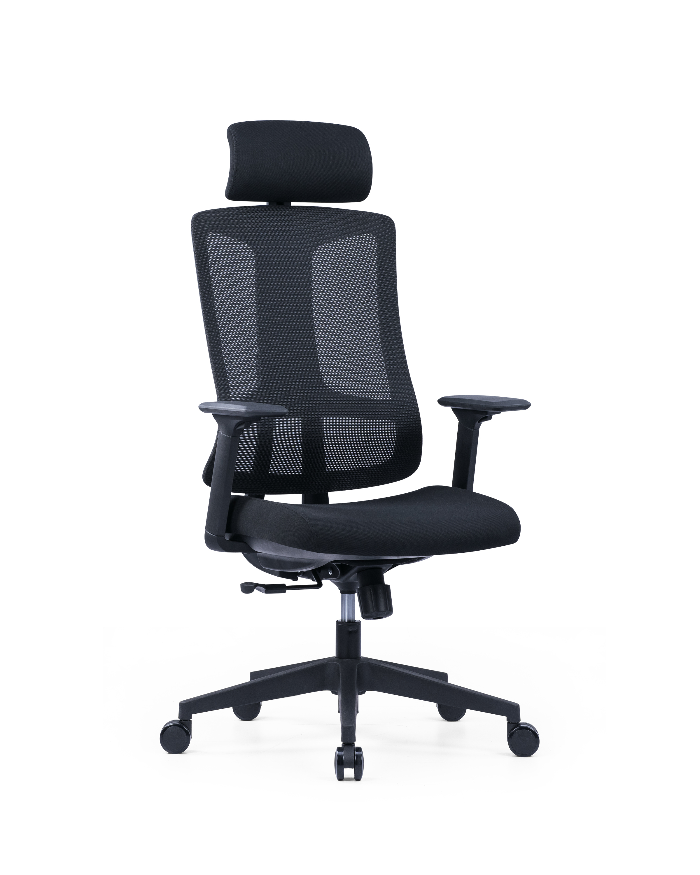 Кресло офисное Норден / Линц / Linz / черный пластик / черная сетка / черная ткань