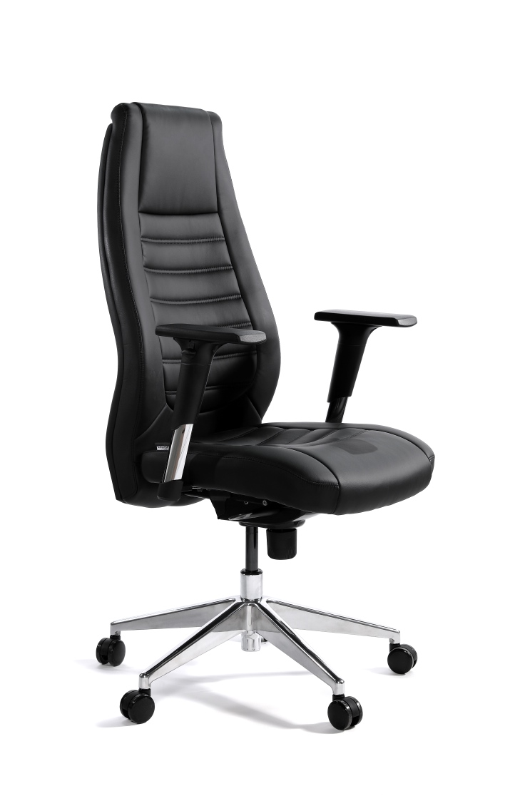 Кресло офисное Норден / Лорд / черная экокожа / алюминий крестовина