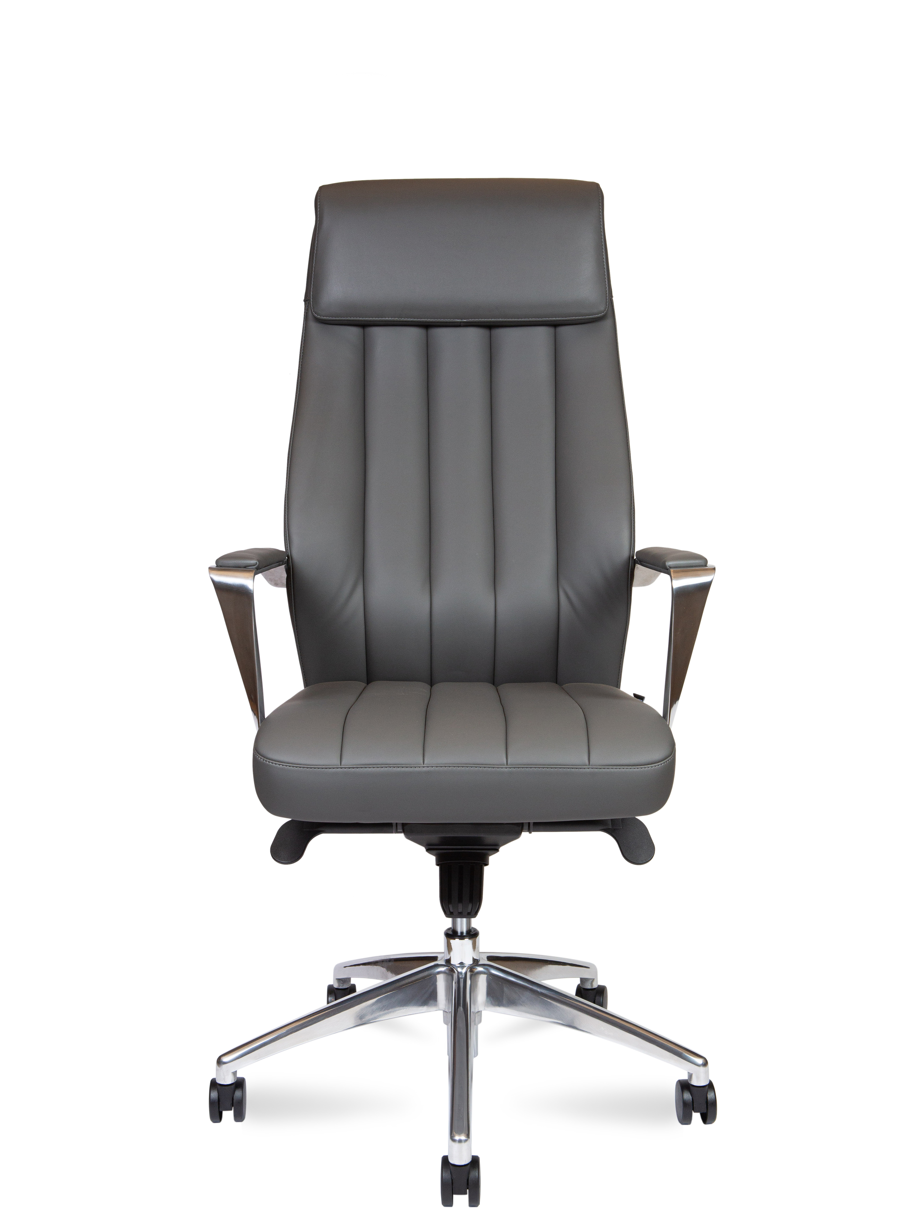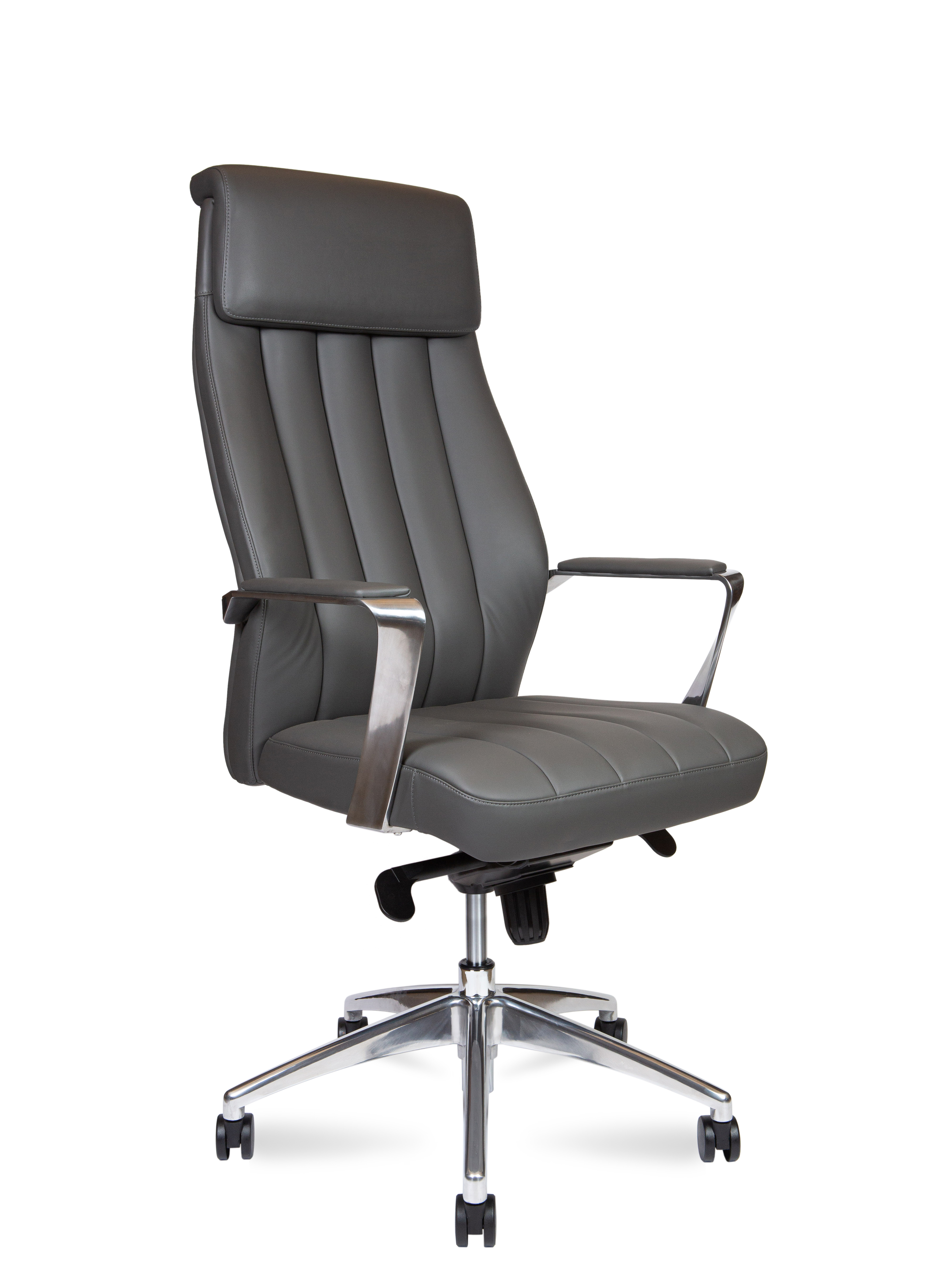 Кресло офисное Норден / Мадрид / Madrid / алюминиевая база / серая экокожа