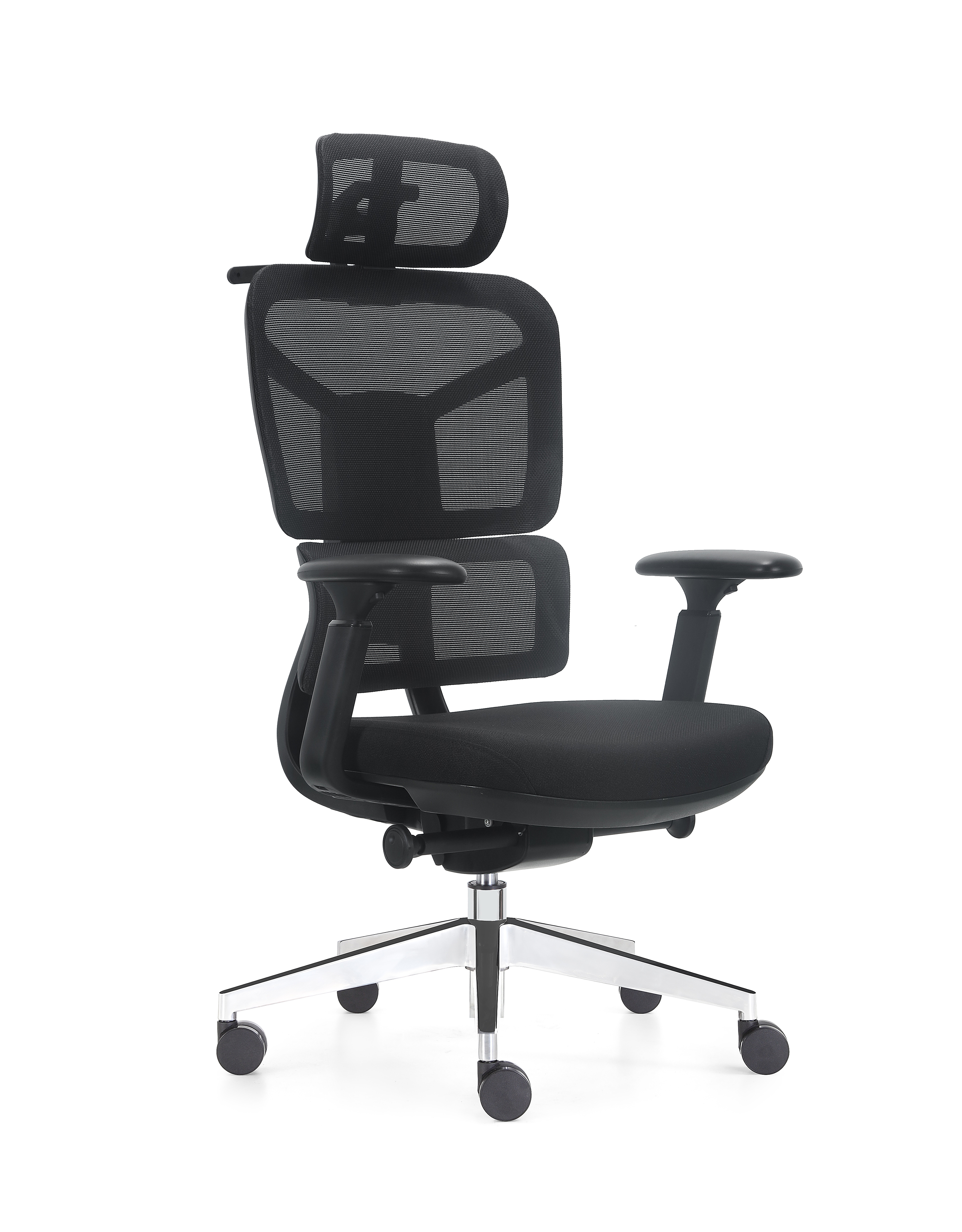 Кресло офисное Норден / Мишлен блэк / Michelin black / черная сетка / черная ткань / алюминиевая база