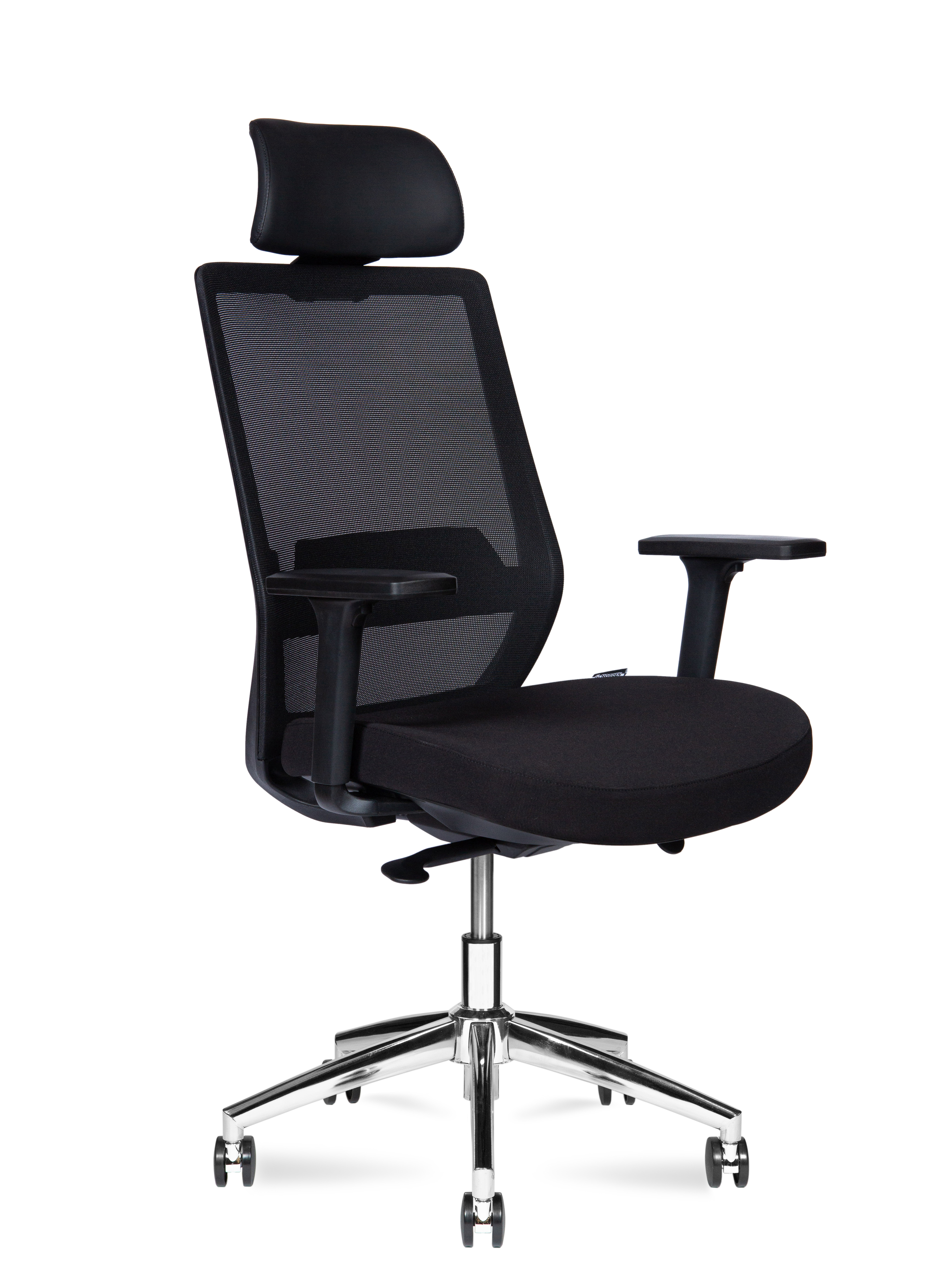 Кресло офисное Норден / Моно блэк хром / Mono black chrom / черный пластик / черная ткань / черная сетка / база хром