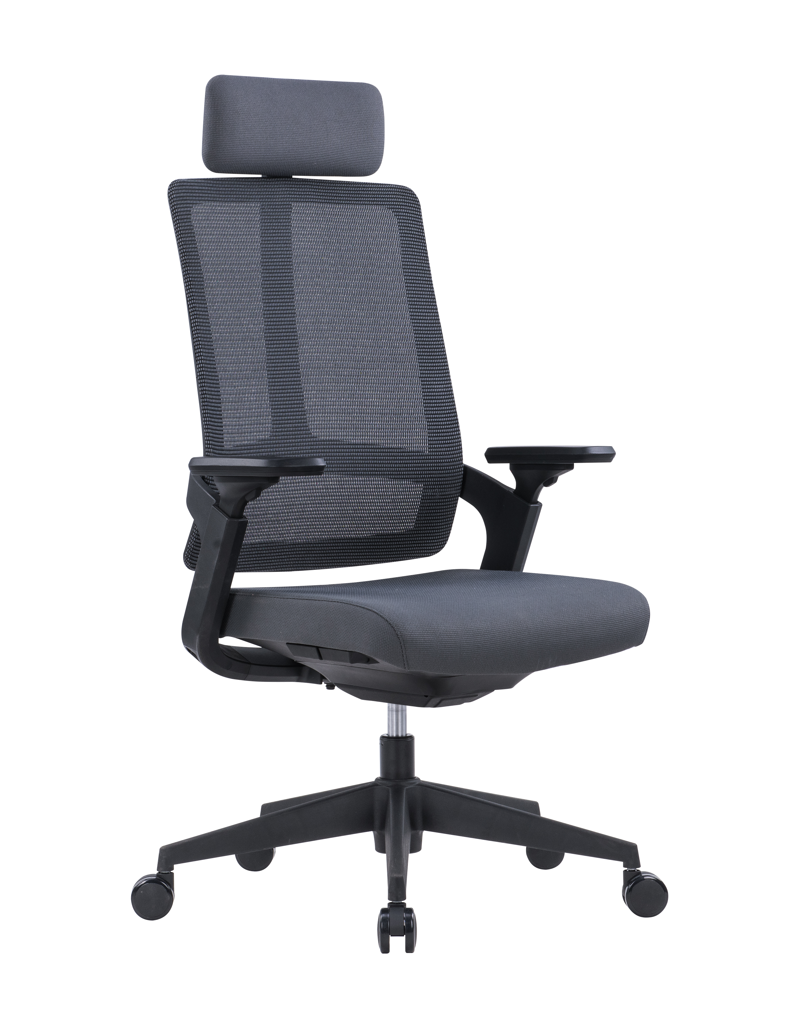 Кресло офисное Норден / Напа / Napa / черный пластик / серая сетка / серая ткань/ нейлон база