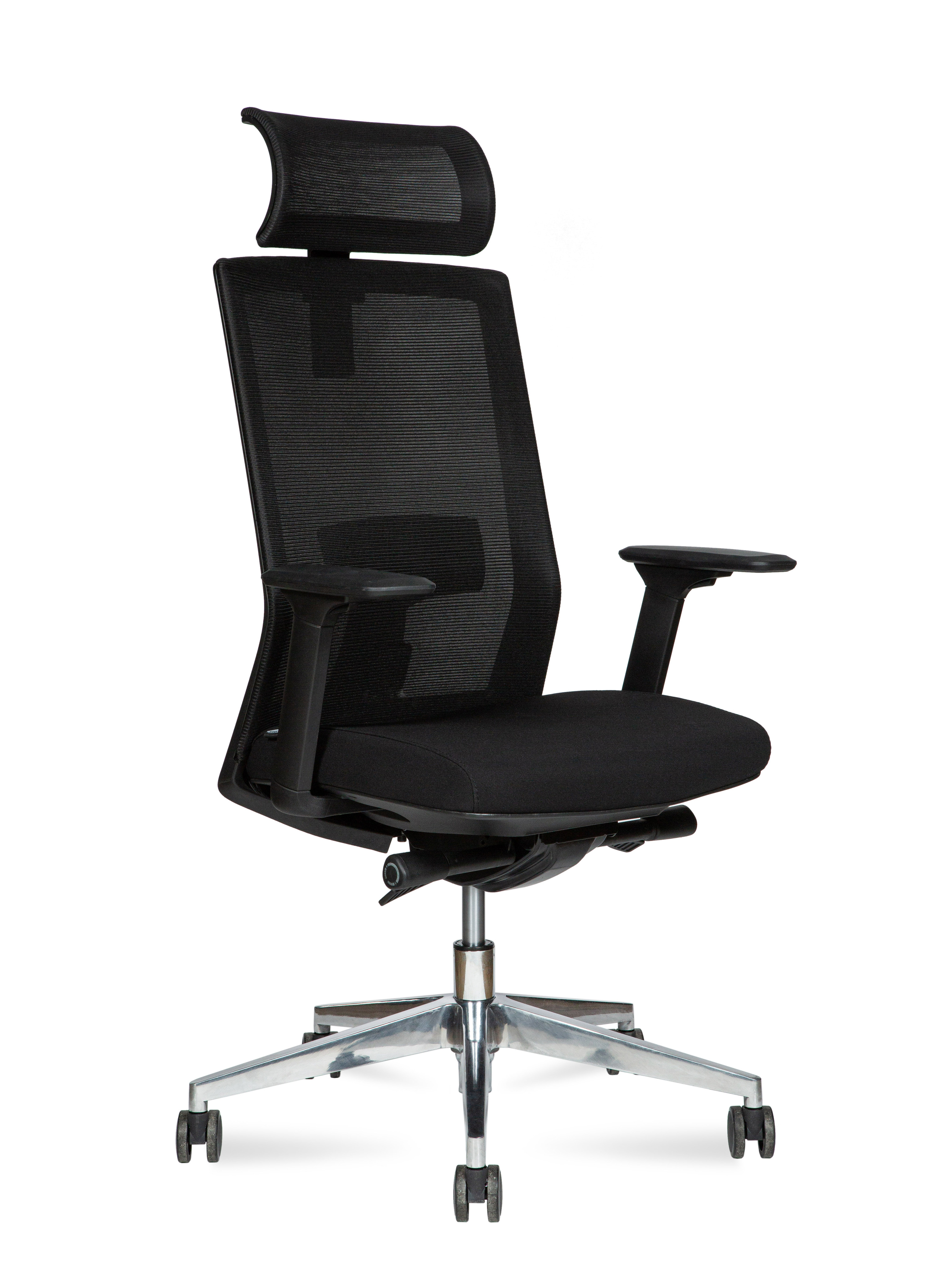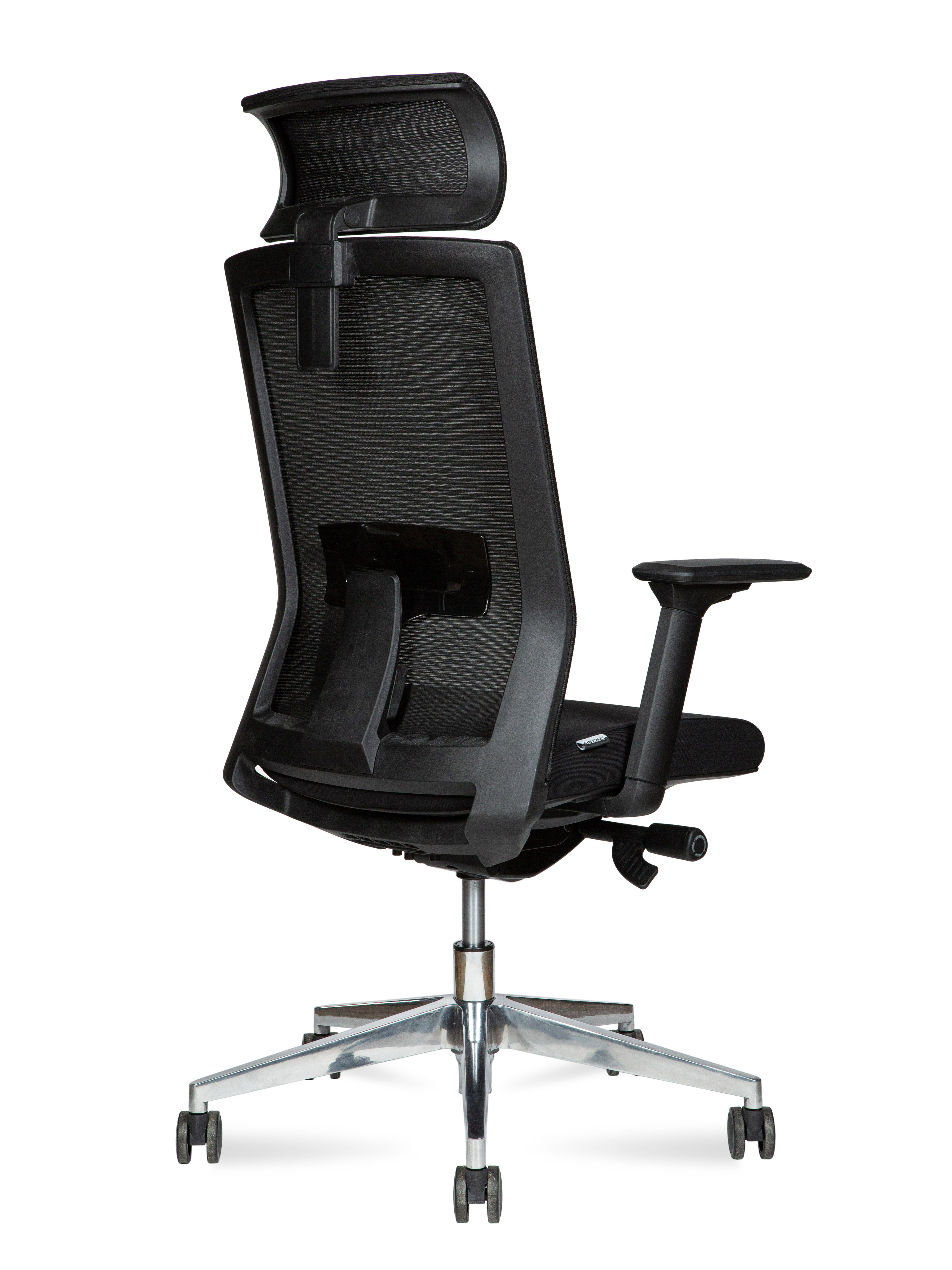 Кресло офисное Норден / Партнер алюминюм / черный пластик / черная сетка / черная ткань / алюминевая база