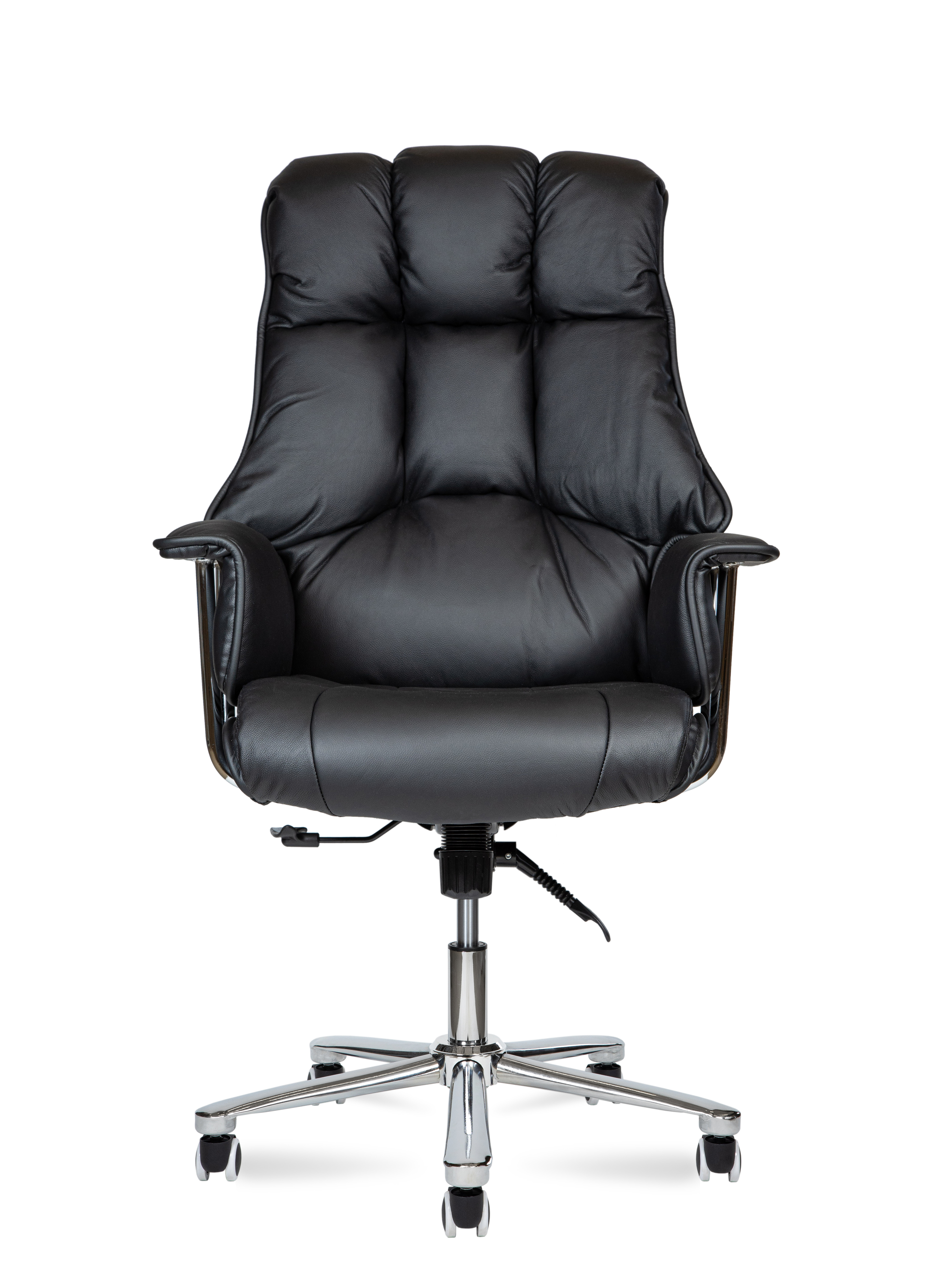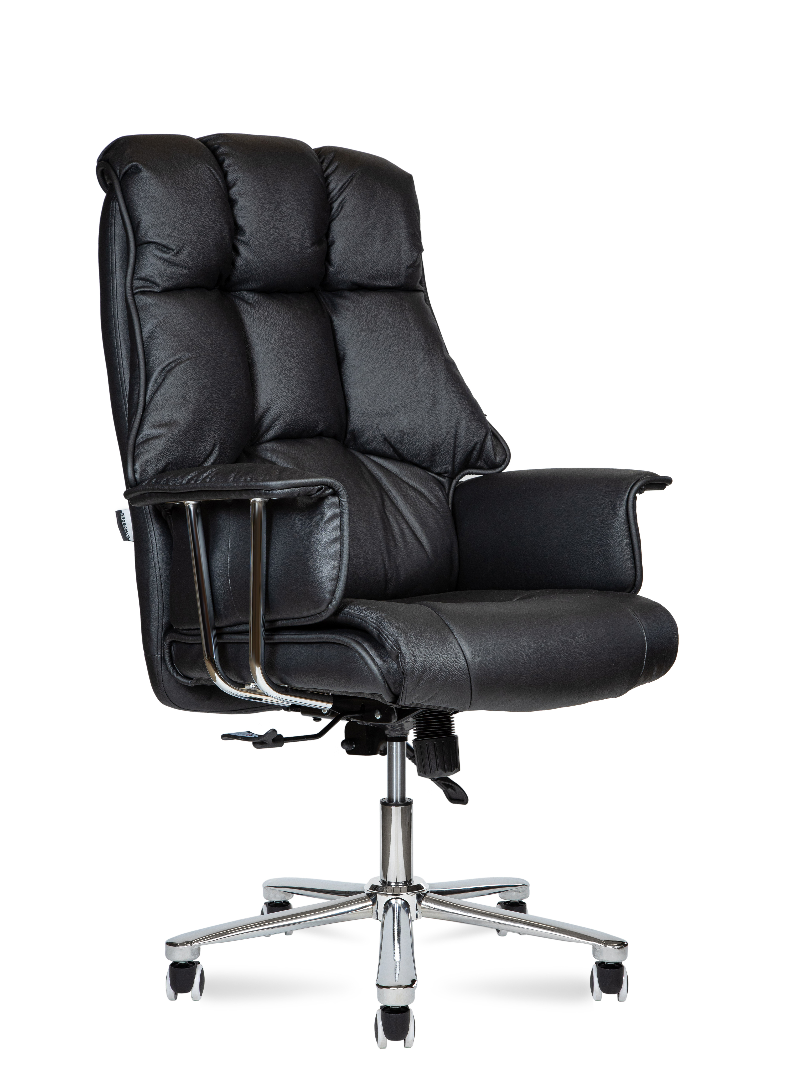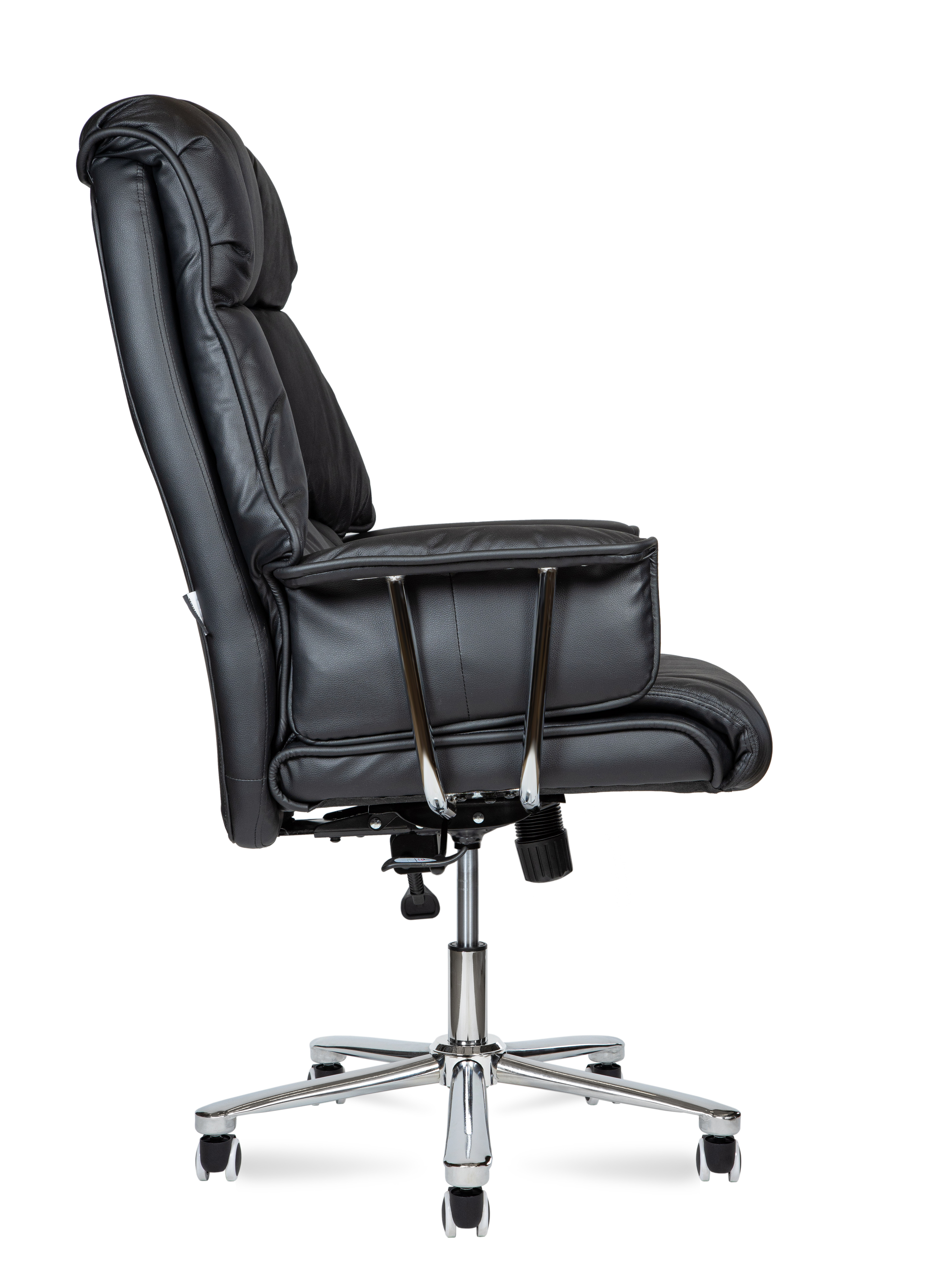 Кресло офисное Норден / Президент / сталь + хром / черная экокожа