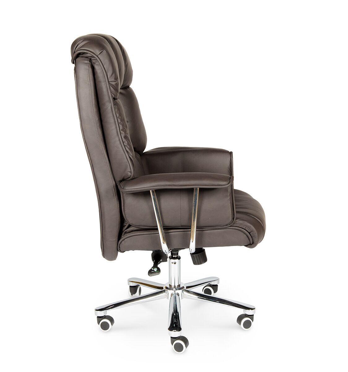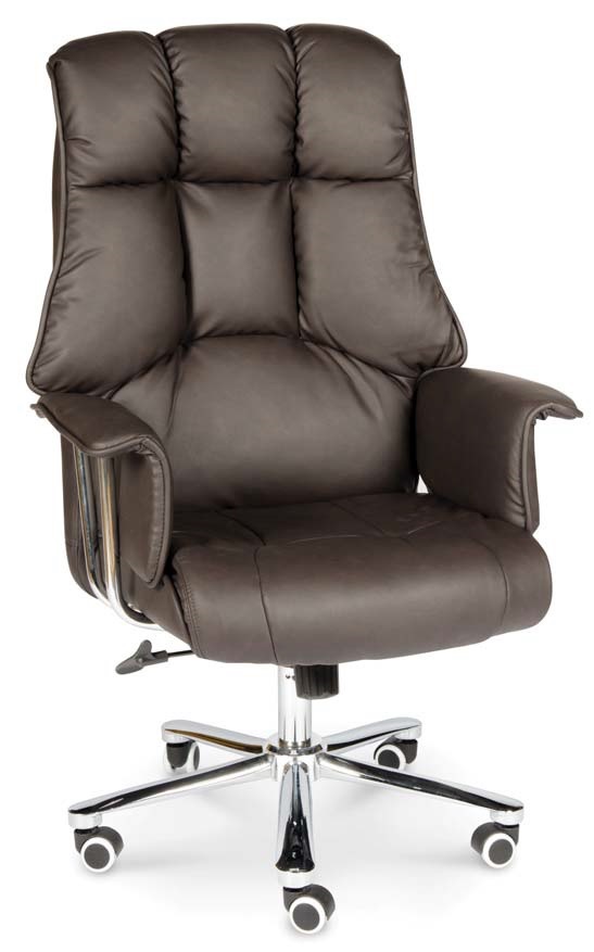 Кресло офисное Норден / Президент / сталь + хром / темно-коричневая экокожа