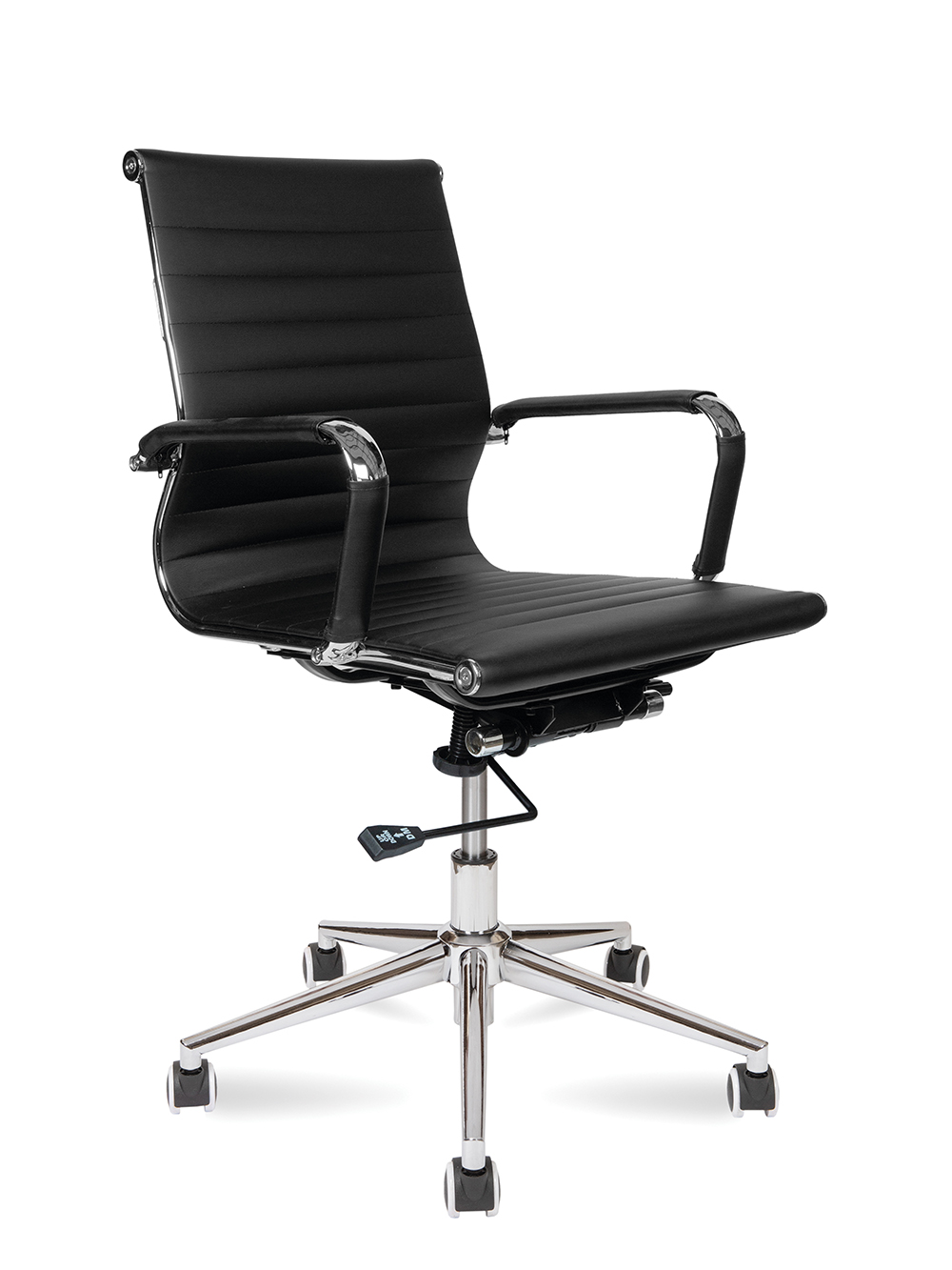 Кресло офисное Норден / Техно LB / хром / черная кожа