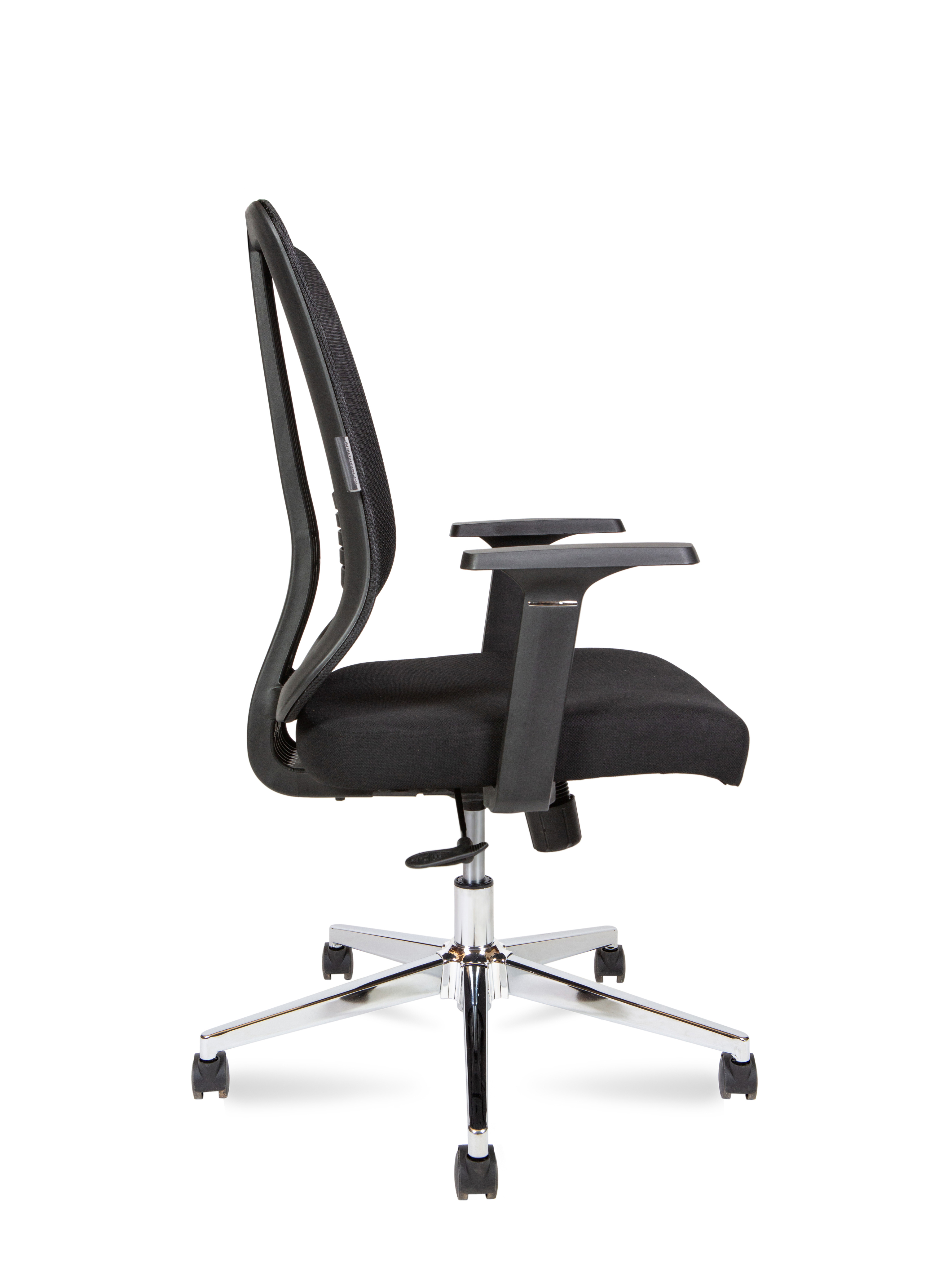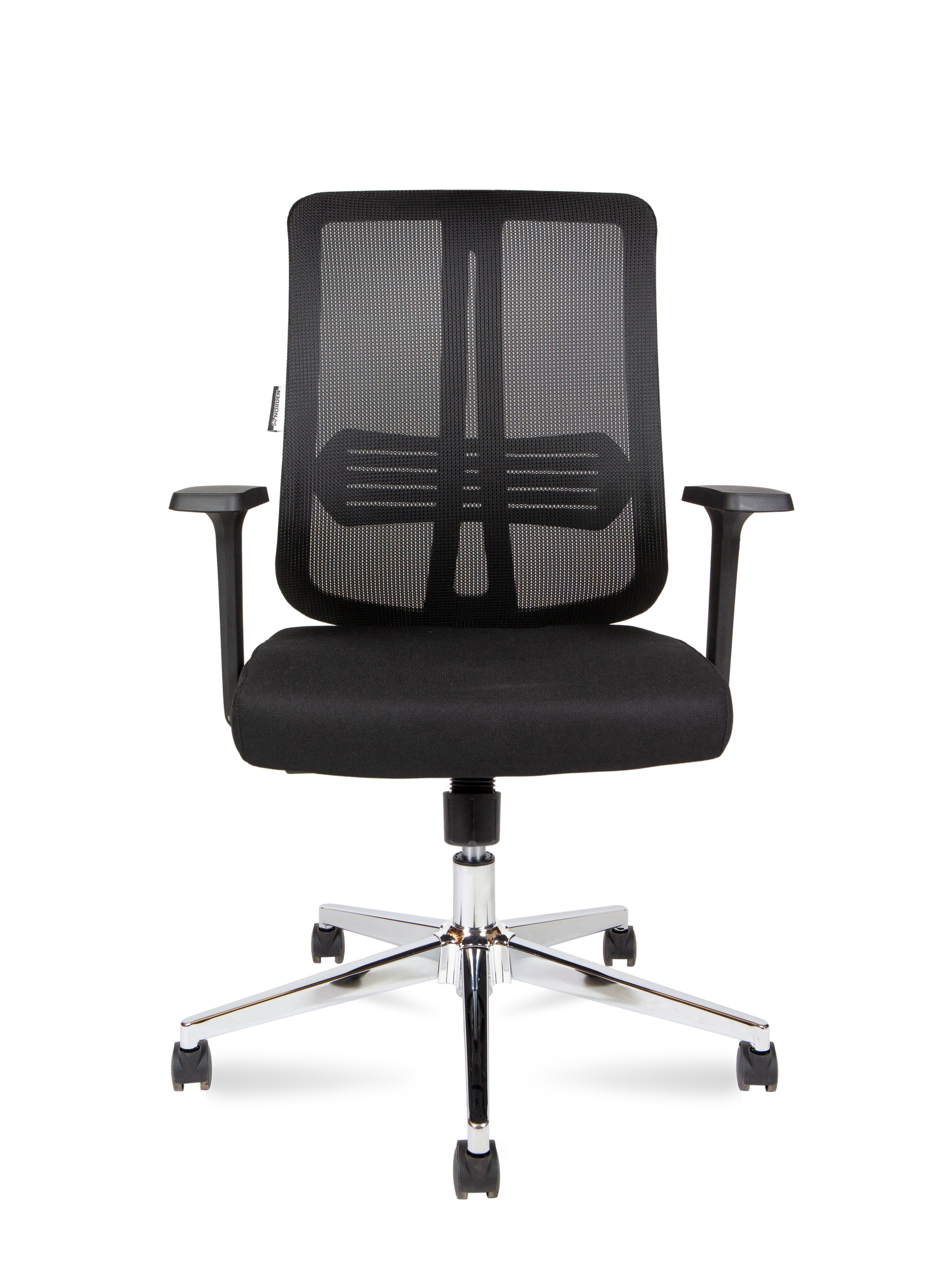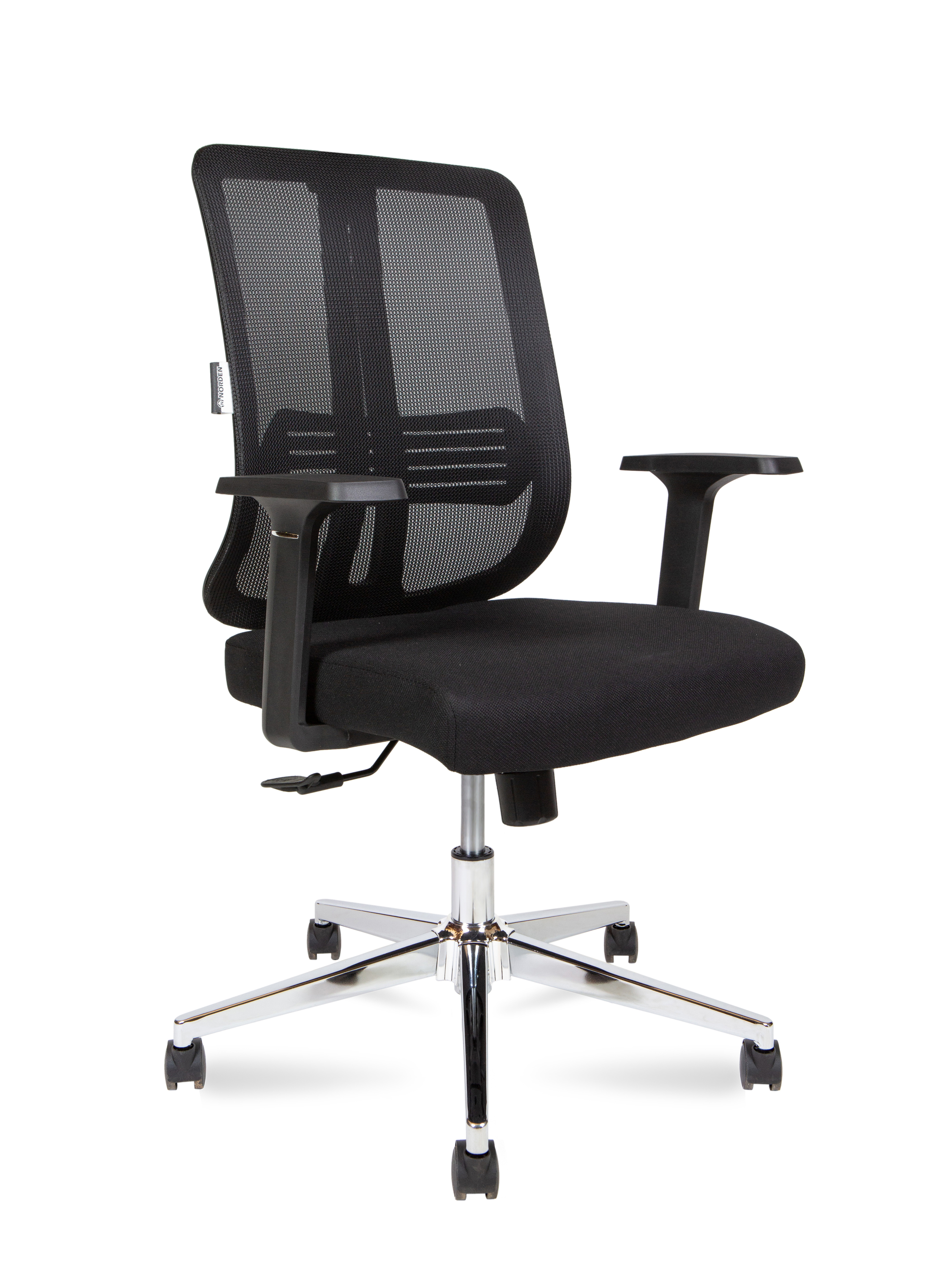Кресло офисное Норден / Тема Хром 2D LB / Tema Chrome 2D LB / база хром / черный пластик / черная сетка / черная ткань