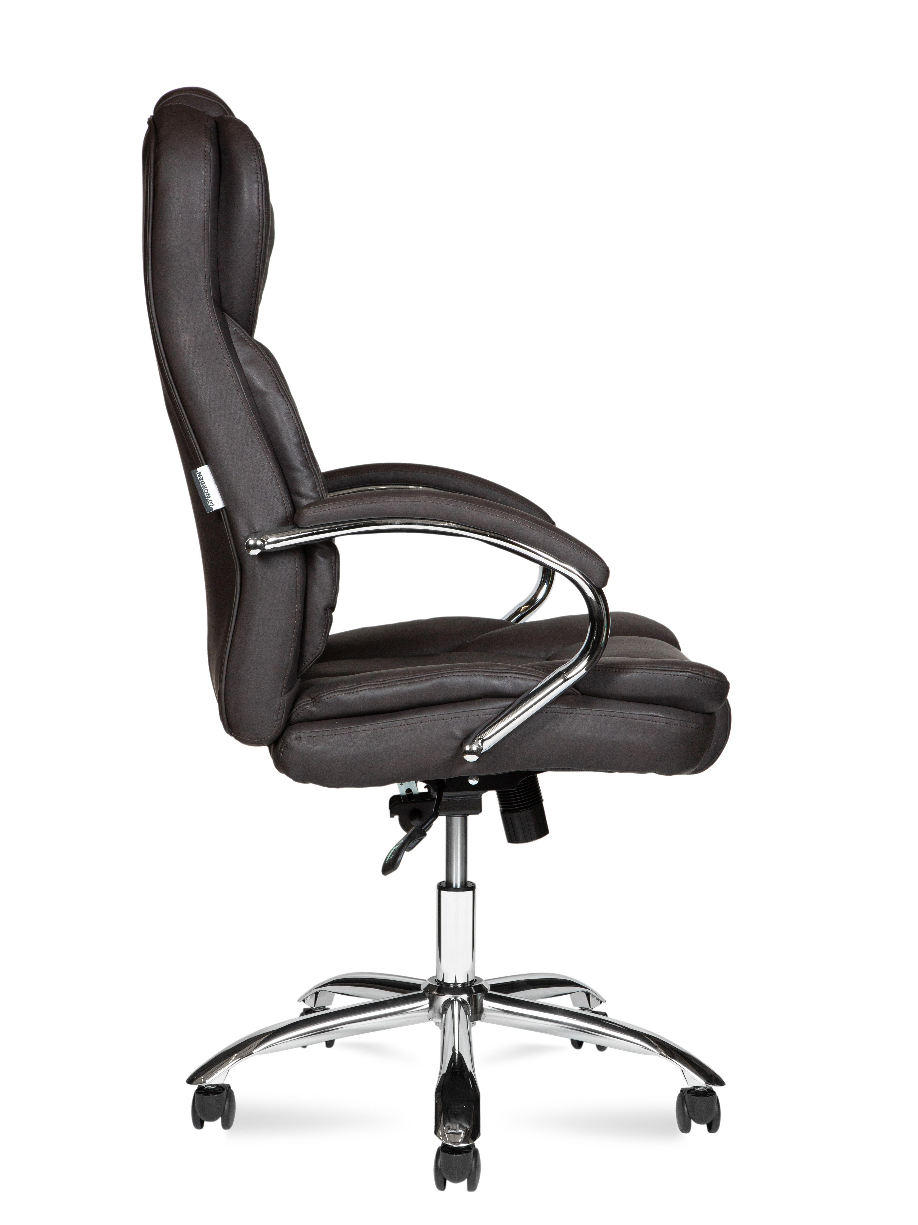 Кресло офисное Норден / Верса / (brown) сталь + хром / темно-коричневая экокожа