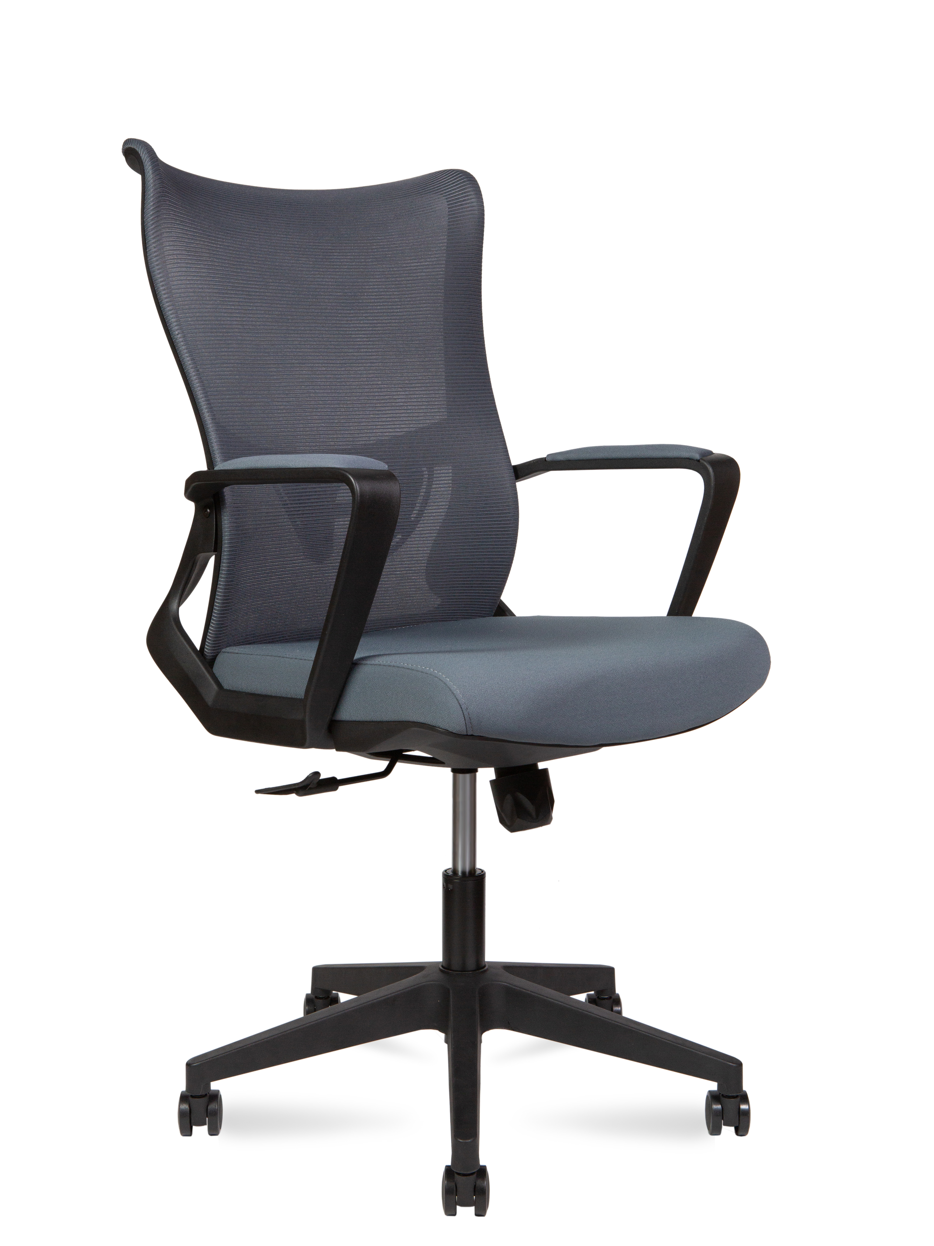 Кресло офисное Норден / Вэйв LB / Wave LB / черный пластик / серая сетка / серая ткань