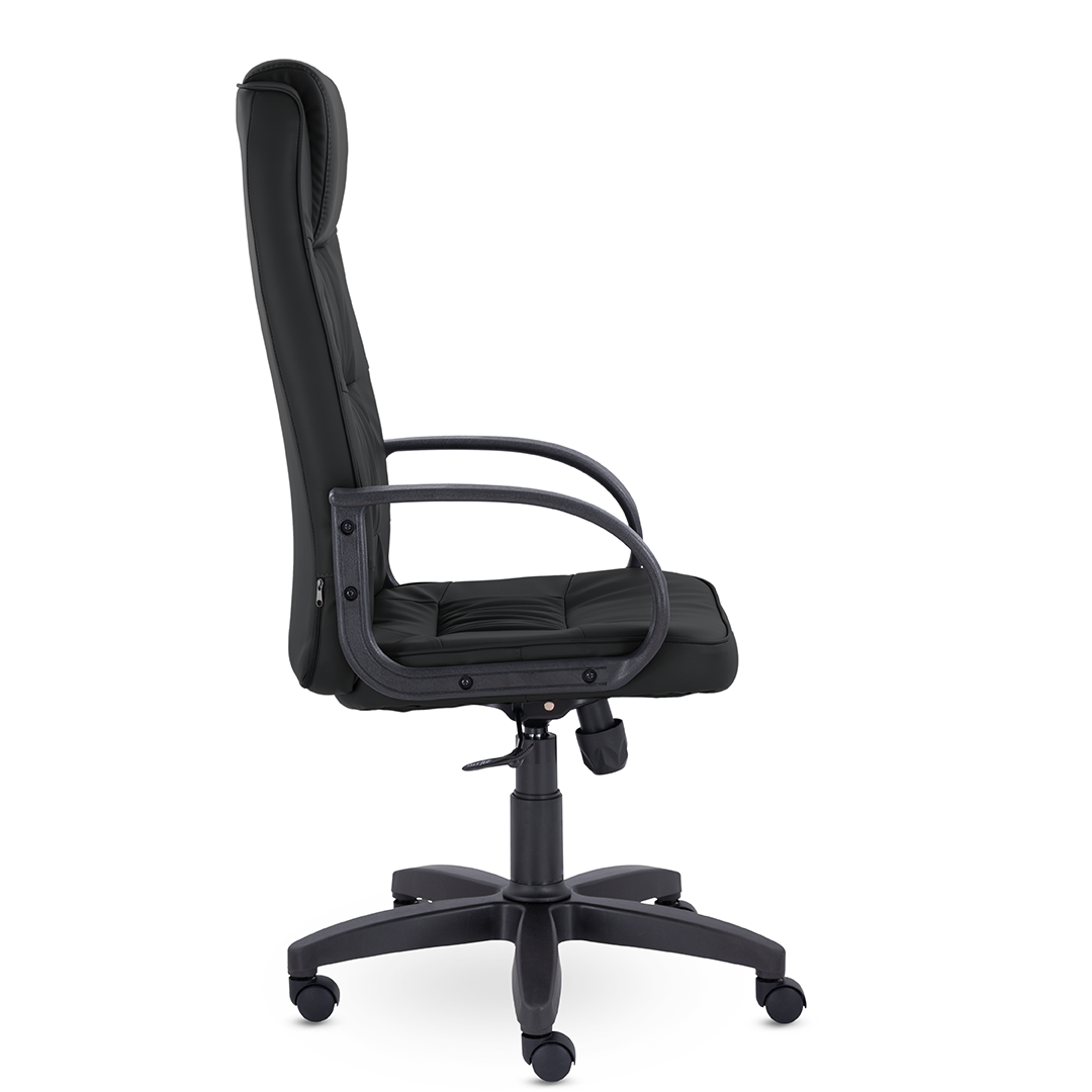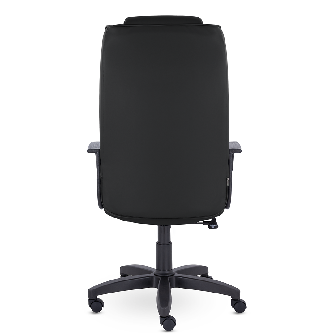 Спинка кресла украшена декоративными прострочками, которые разделяют подголовник и зону поясничной поддержки. Это солидное кресло станет отличным дополнением кабинета руководителя. Максимальная нагрузка до 150 кг.
