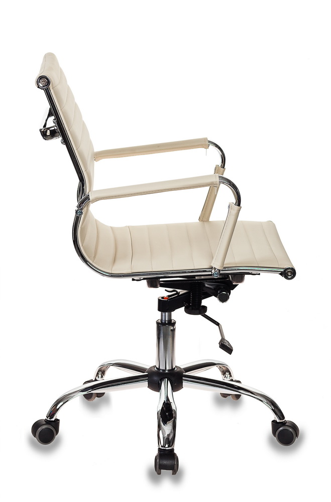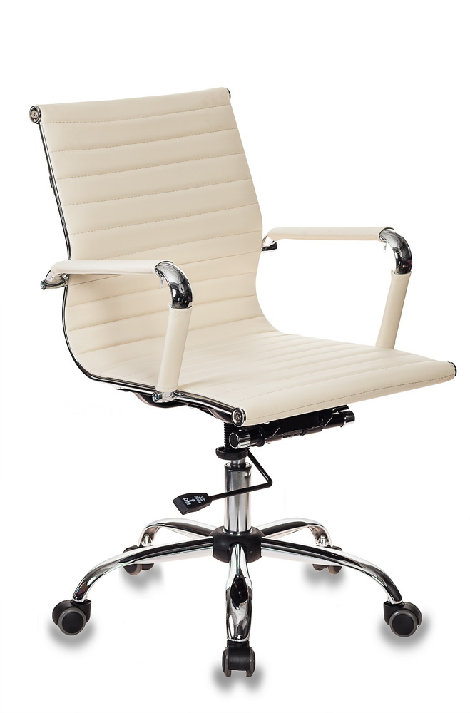 Кресло руководителя Бюрократ CH-883-LOW слоновая кость эко.кожа низк.спин. крестов. металл хром