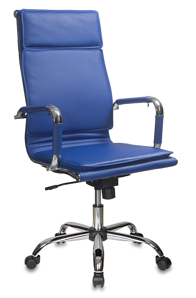 Кресло руководителя Бюрократ CH-993 синий эко.кожа крестов. металл хром