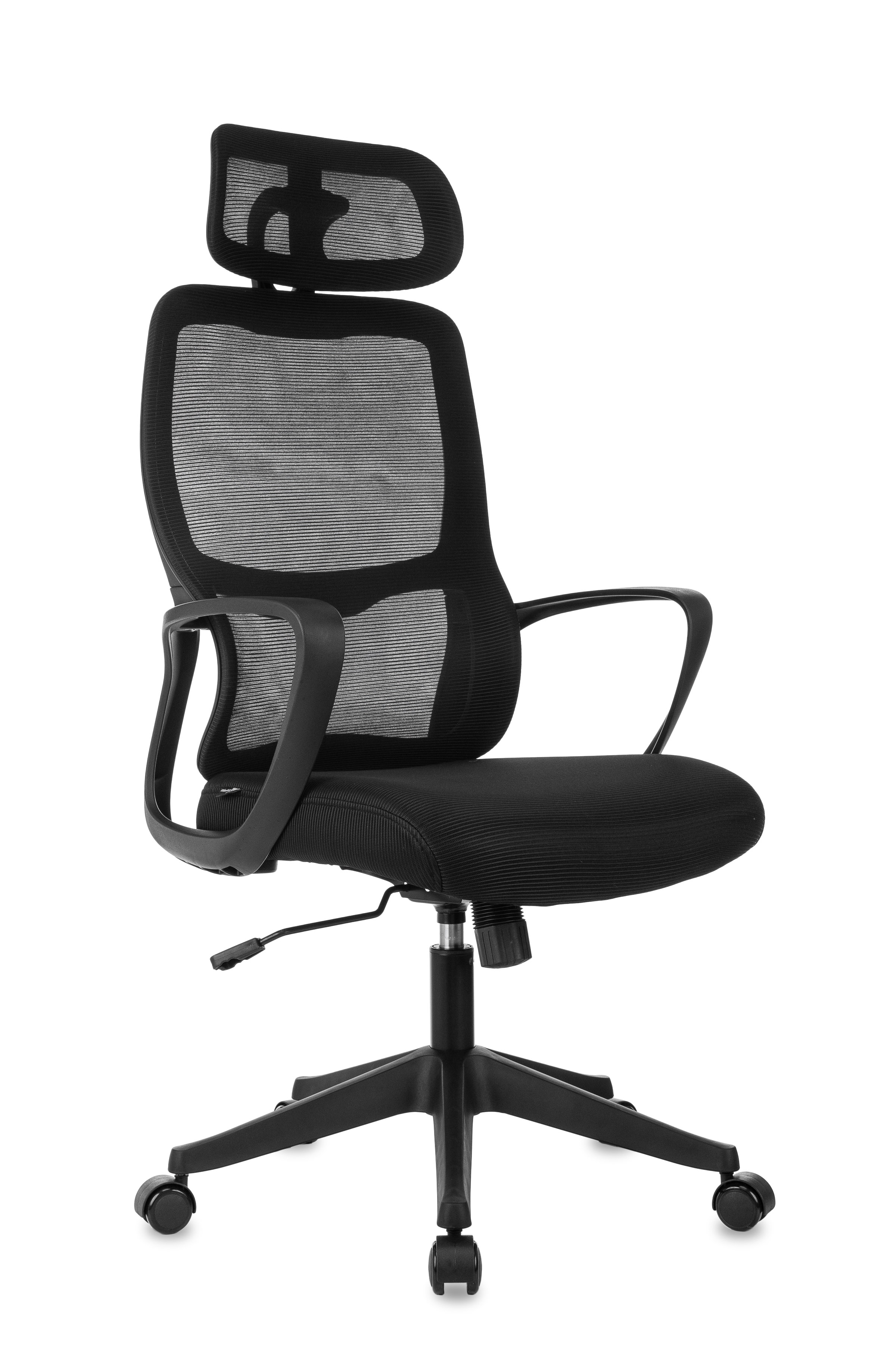 Кресло руководителя Бюрократ Wise черный сетка/ткань с подголов. крестов. пластик