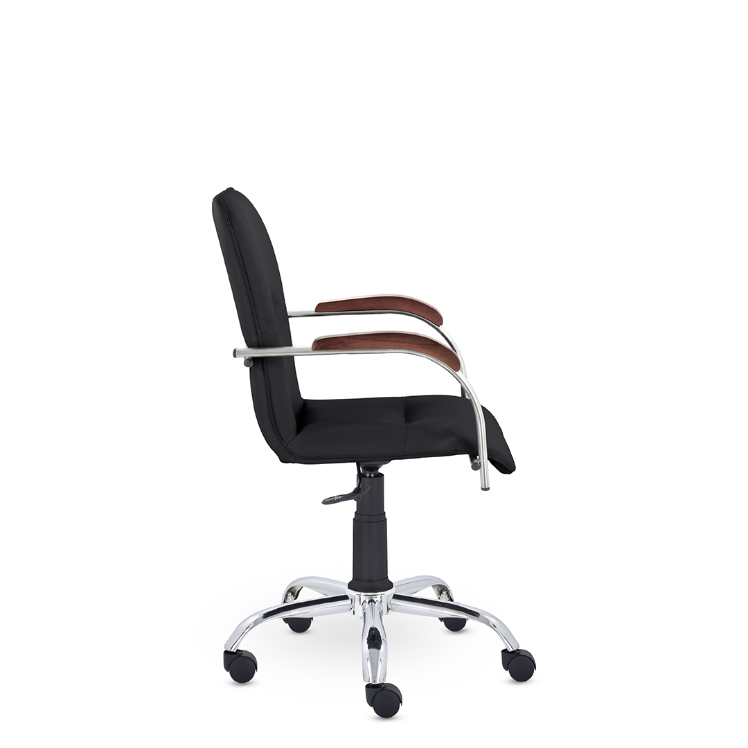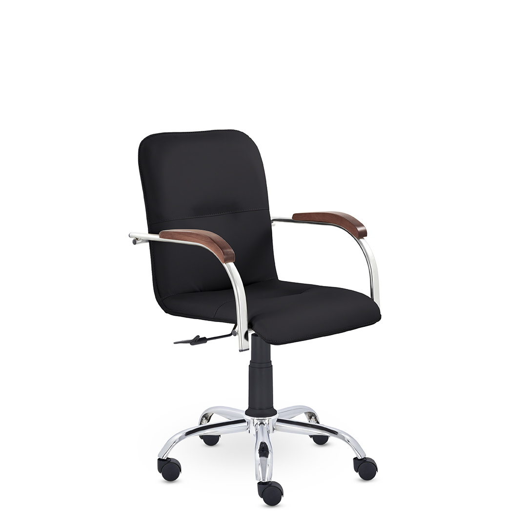 Улучшенная комплектация стула Самба включает горизонтальные прострочки, соединяющие спинку и сиденье, что придает креслу элегантный вид. Удобные накладки обеспечивают комфортную поддержку рук и способствуют их расслаблению.