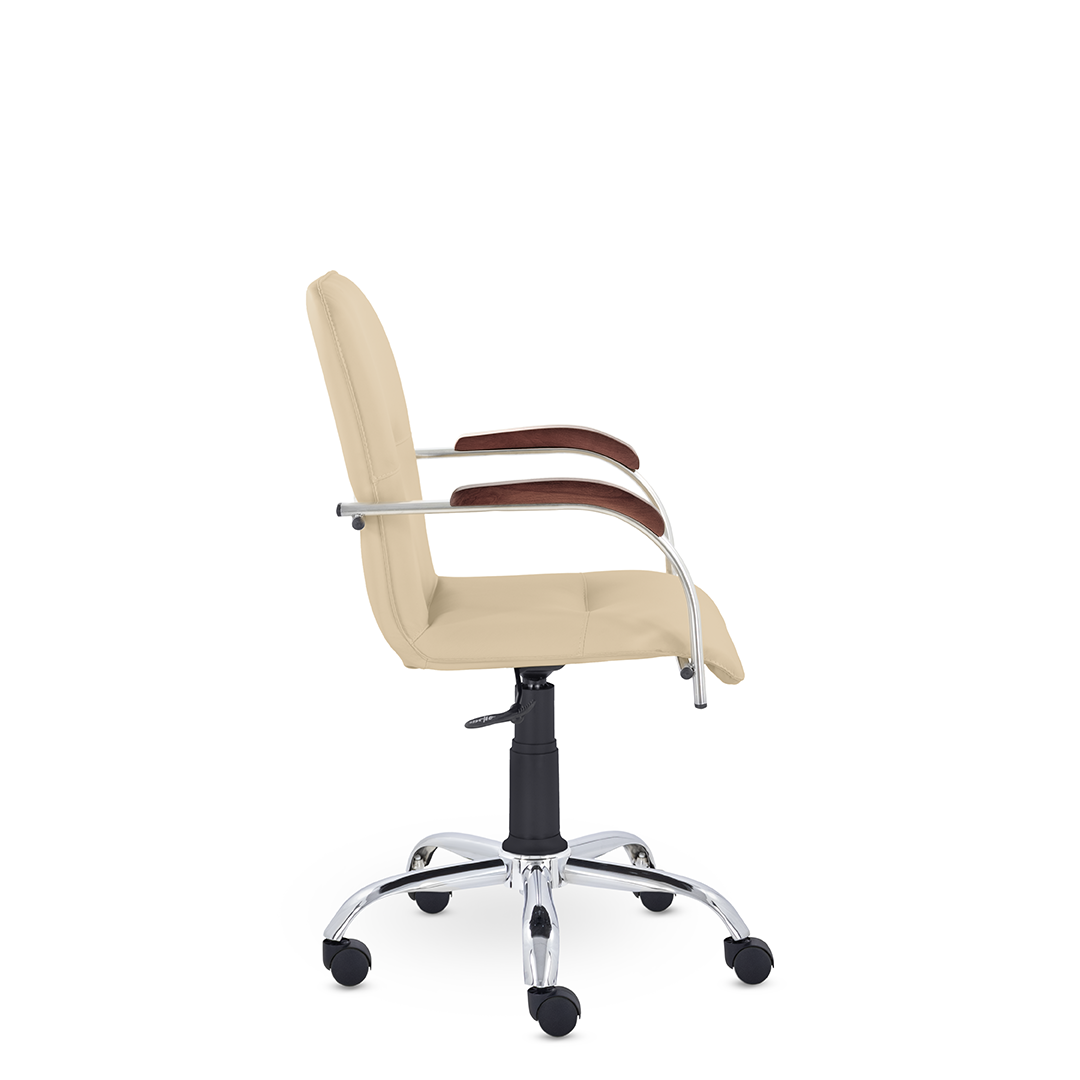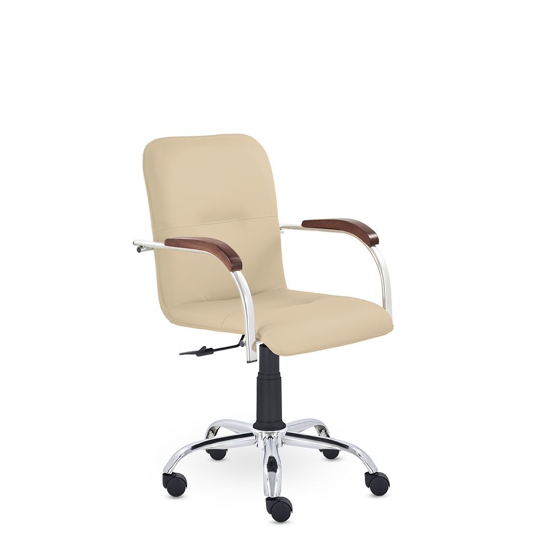 Улучшенная комплектация стула Самба включает горизонтальные прострочки, соединяющие спинку и сиденье, что придает креслу элегантный вид. Удобные накладки обеспечивают комфортную поддержку рук и способствуют их расслаблению.