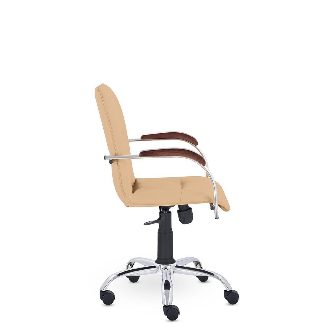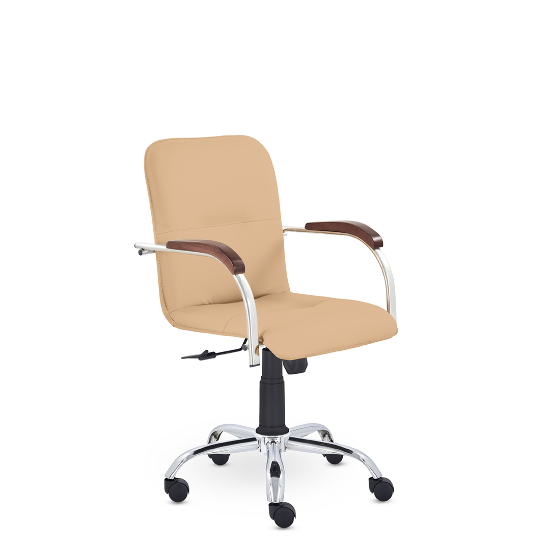 Улучшенная комплектация стула Самба включает горизонтальные прострочки, соединяющие спинку и сиденье, что придает креслу элегантный вид. Удобные накладки подлокотников обеспечивают комфортную поддержку рук и способствуют их расслаблению.