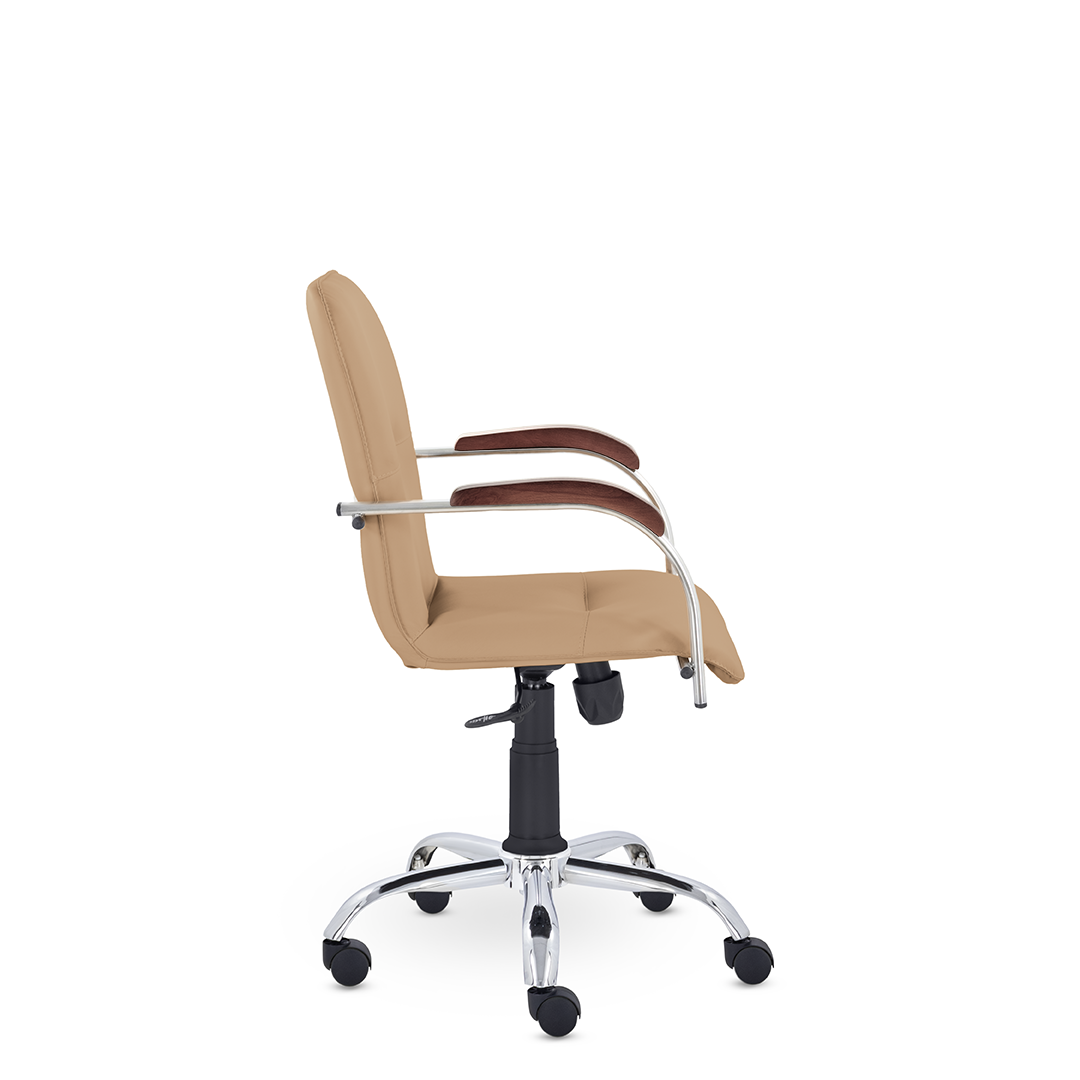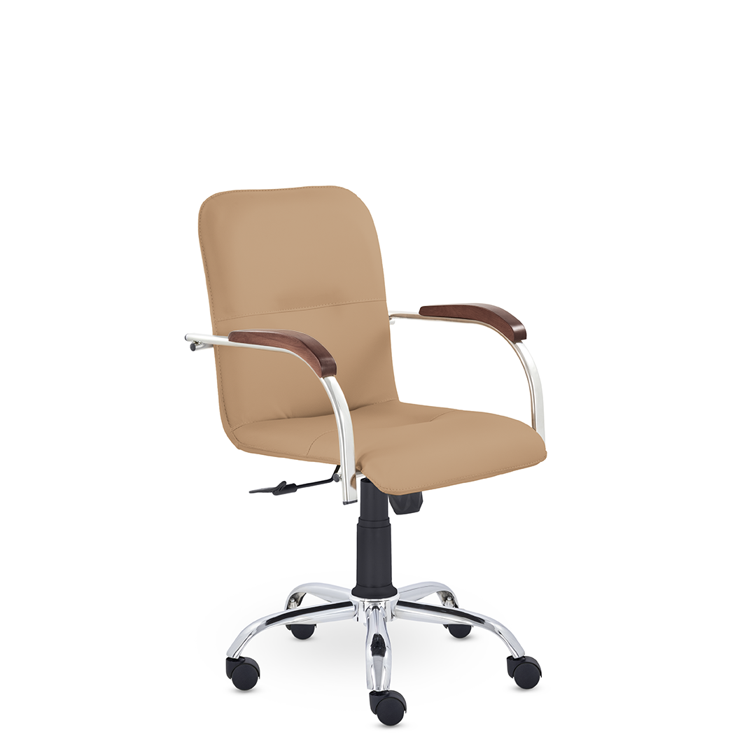 Улучшенная комплектация стула Самба включает горизонтальные прострочки, соединяющие спинку и сиденье, что придает креслу элегантный вид. Удобные накладки подлокотников обеспечивают комфортную поддержку рук и способствуют их расслаблению.