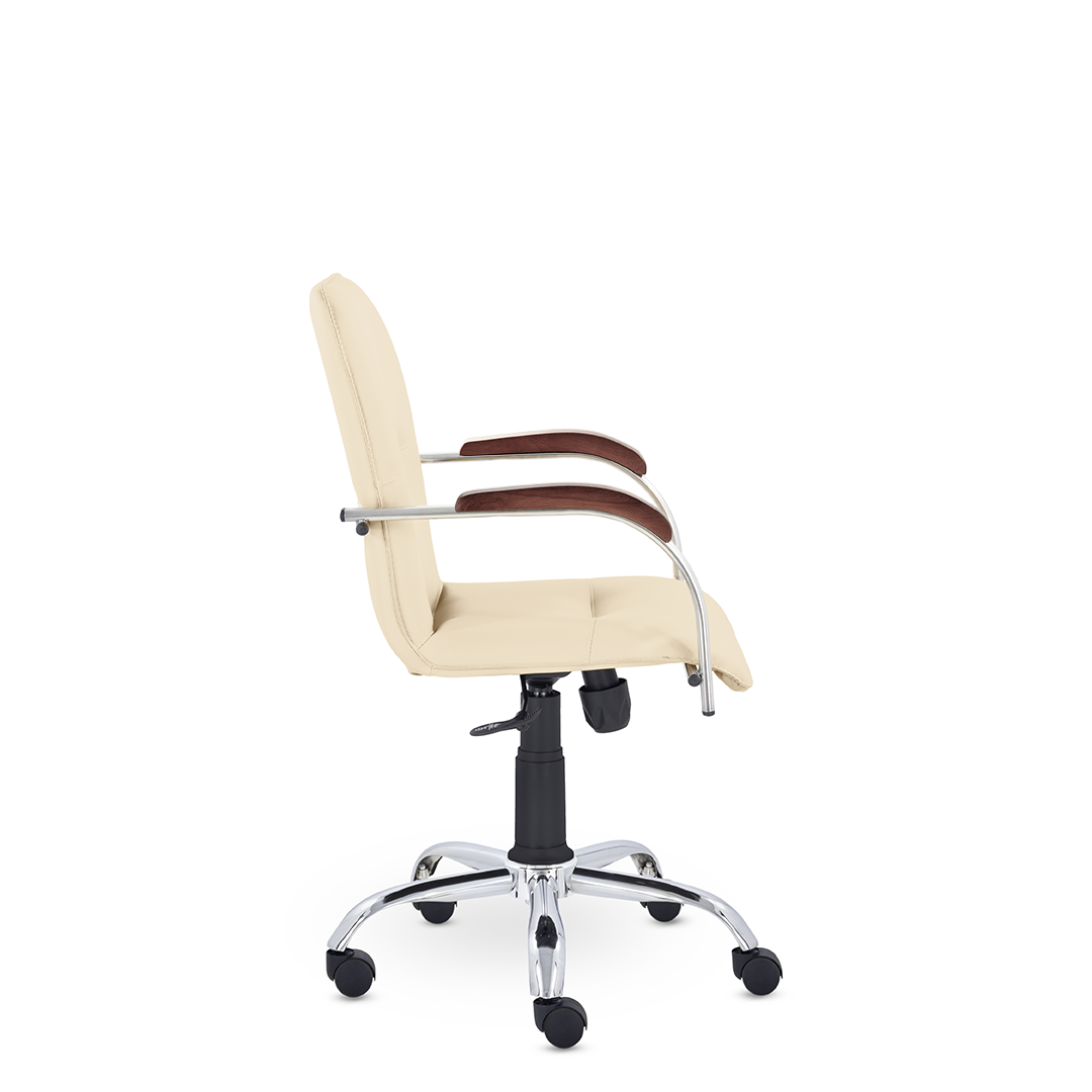 Улучшенная комплектация стула Самба включает горизонтальные прострочки, соединяющие спинку и сиденье, что придает креслу элегантный вид. Удобные накладки подлокотников обеспечивают комфортную поддержку рук и способствуют их расслаблению.