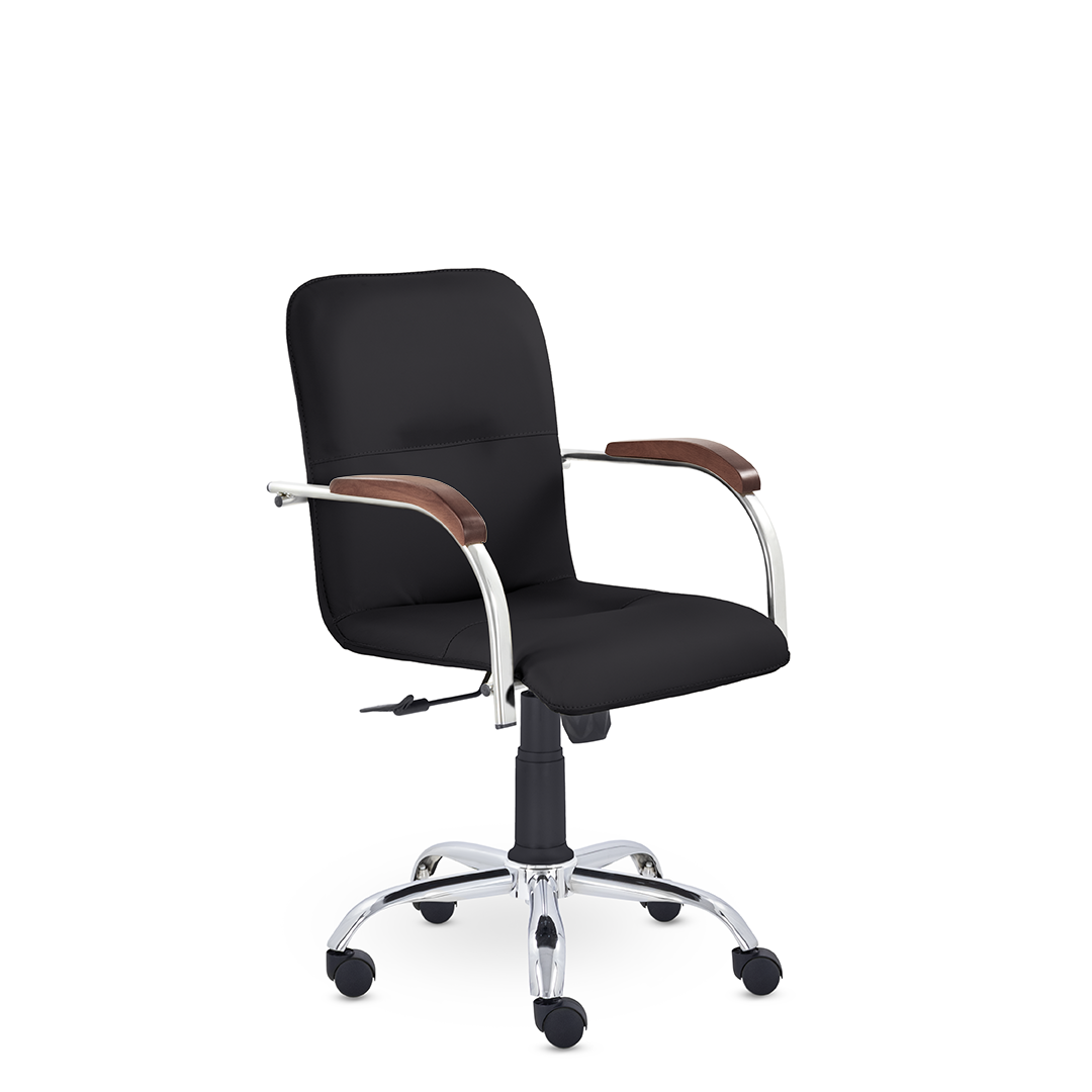 Улучшенная комплектация стула Самба включает горизонтальные прострочки, соединяющие спинку и сиденье, что придает креслу элегантный вид. Удобные накладки подлокотников обеспечивают комфортную поддержку рук и способствуют их расслаблению.